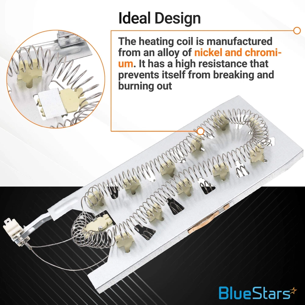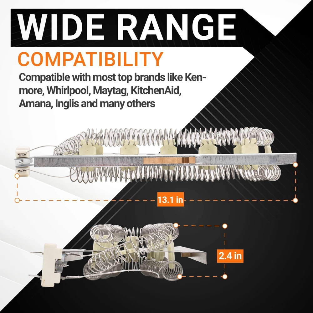 FULL KIT SET: Include 1 x 3387747 Dryer Heating Element, 1 x 279973 Dryer High Limit Thermostat and Thermal Cut-Off Kit. PREMIUM QUALITY: The heating element chamber is made of high quality METAL and contains heating wire coils which have the Nickel-chromium content reaches 85% for generating heat effectively in electric dryer, non OEM parts but meets OEM manufacturing requirements - Ensure long-lasting and effective operation - Replaces your old and broken dryer parts to help generate the heat for drying clothes again. The 3387747 dryer heating element is rated at 5200 Watts 240 Volts WIDE COMPATIBILITY: It is made exactly fit for most top name brands (Whirlpool, Maytag, Kenmore, KitchenAid, Amana, Inglis, Crosley). This kit works with the following models: 11066952690, 11068932790, 11096583810, 11096583820, 11096584100, 11096584110, 11096584120, 11096584800, 11096584820, 11096592210, 11096592410, MED5500FC2, MED5500FW2, WED92HEFBD2, WED92HEFC2, WED92HEFU2, WED92HEFW2, YWED8000DW4, YWED85HEFC2, YWED85HEFW2, etc. REPLACEMENT PART NUMBERS: ▶ 3387747 replaces part numbers: WP3387747, 80003, W11045584, WP3387747VP, AP2947033, 525502, AH344597, EA344597, PS344597. ▶ 279973 replaces part numbers: 279973VP, 3391913, 3404151, 3404152, 3977395, 8318314, 897710, AP3094323, PS334387. 100% LIFETIME PROTECTION: Enjoy reliable performance with our lifetime protection, ensuring that your product will always be covered for any defects or issues that may arise.
