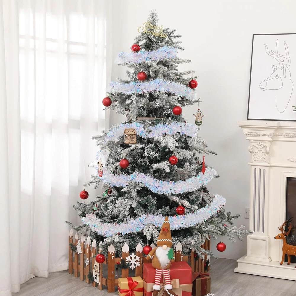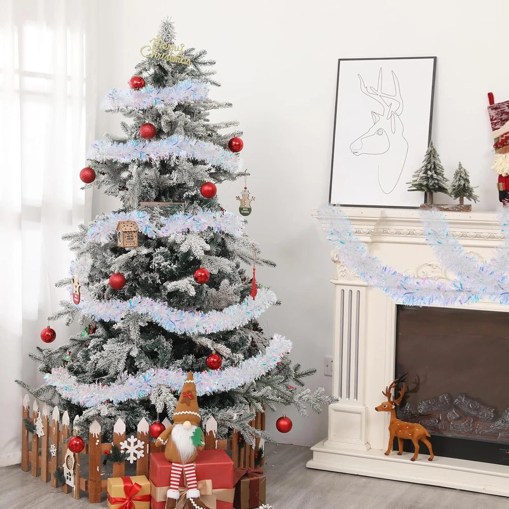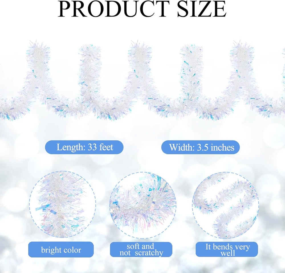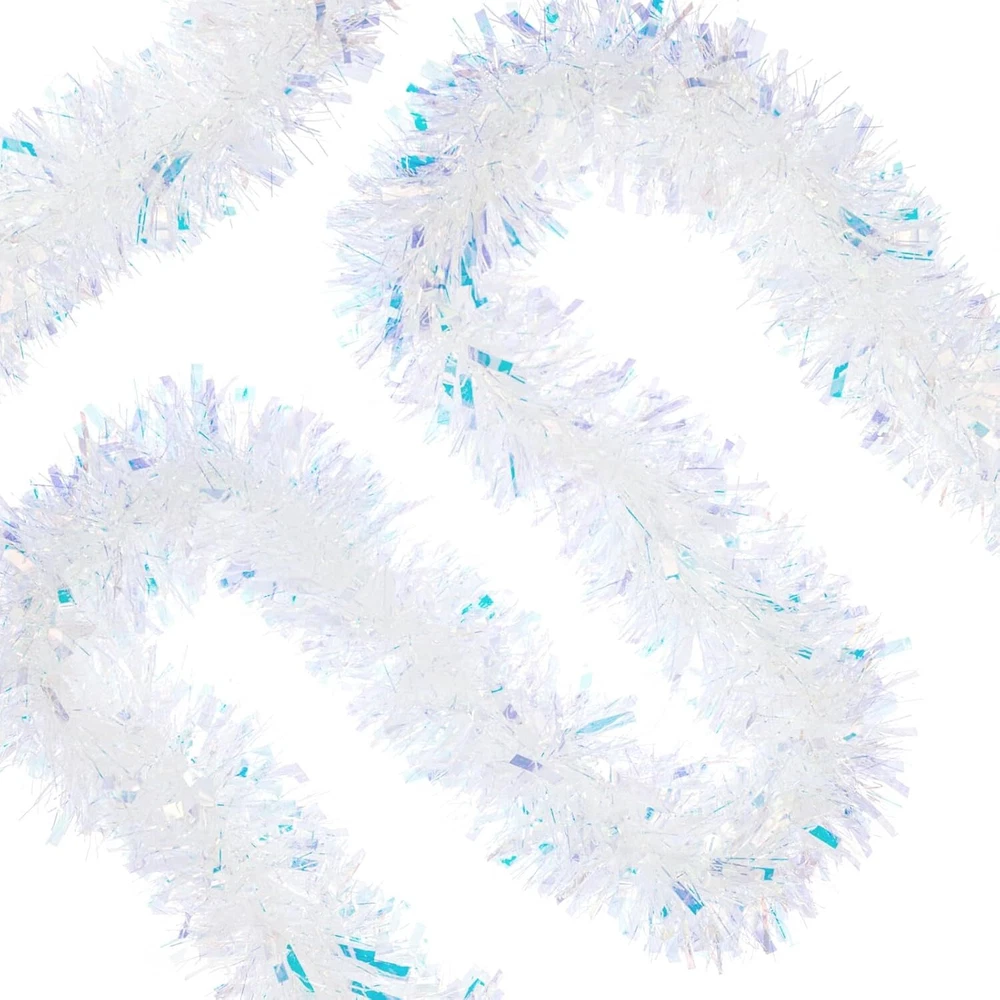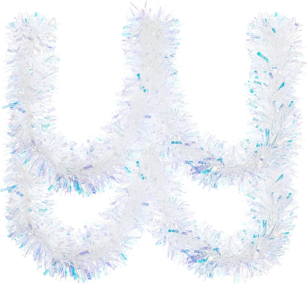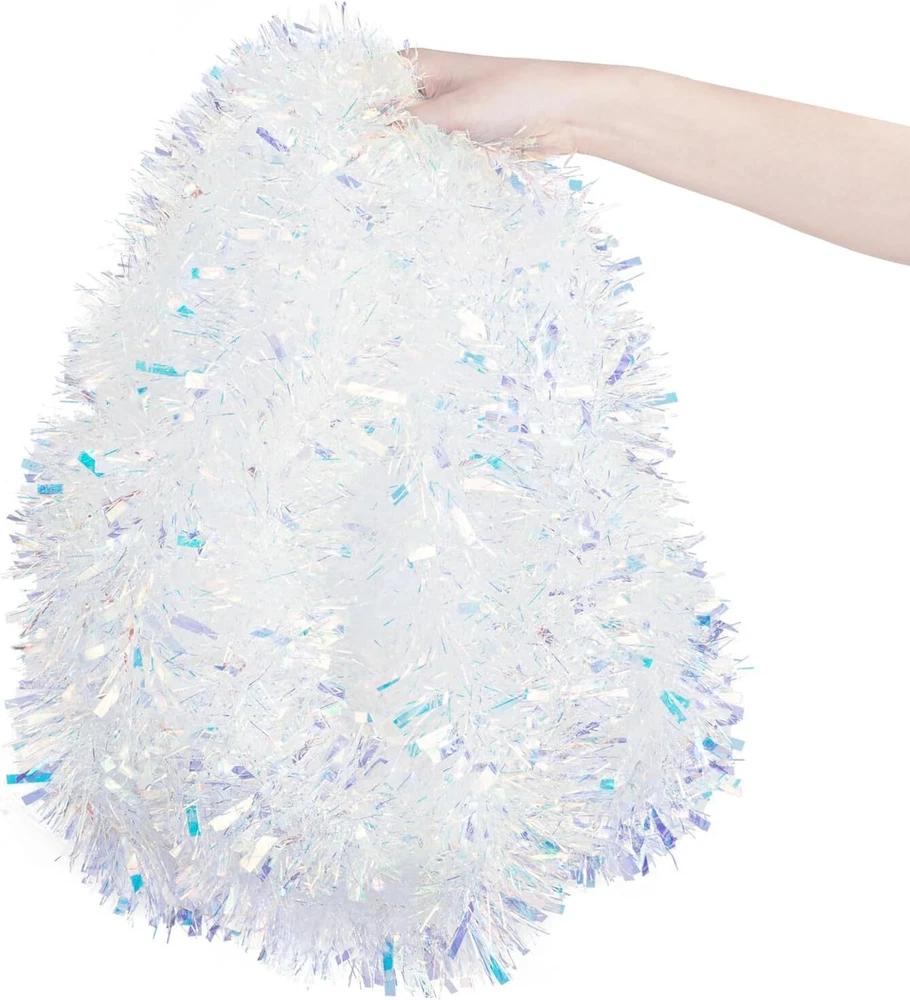 33FT Christmas Tinsel Garland Iridescent Metallic White, White