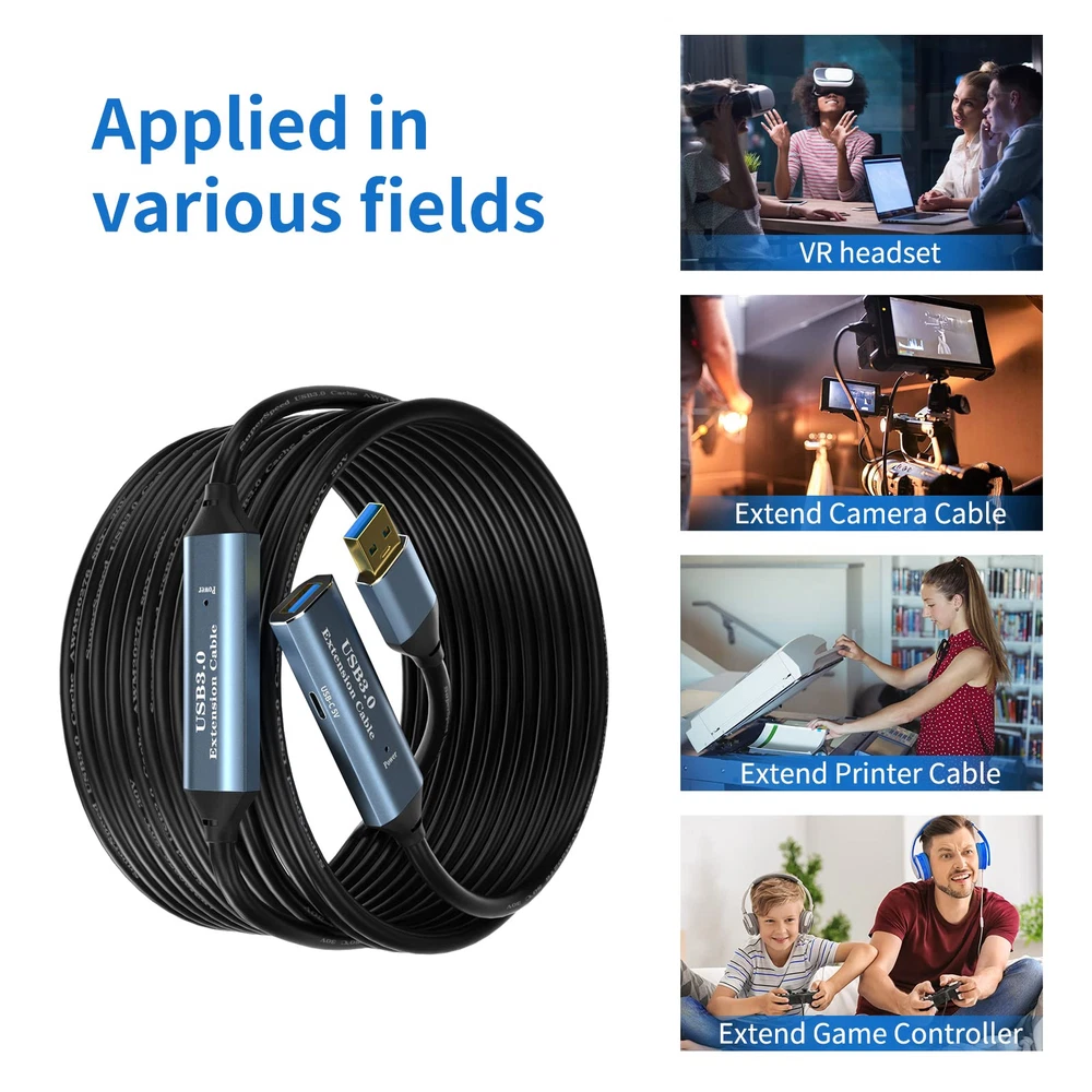 This USB 3.0 extension cable is a game-changer! The 33ft length gives me plenty of reach without losing speed—charging stays fast at 2A, and data transfers hit 5Gbps smoothly. The sturdy build feels durable, and it works flawlessly for syncing devices or extending my setup. No lag, no drop in performance—just reliable connectivity. Perfect for home offices or entertainment systems where extra length is needed. Highly recommend for anyone needing a long, high-speed USB extension!