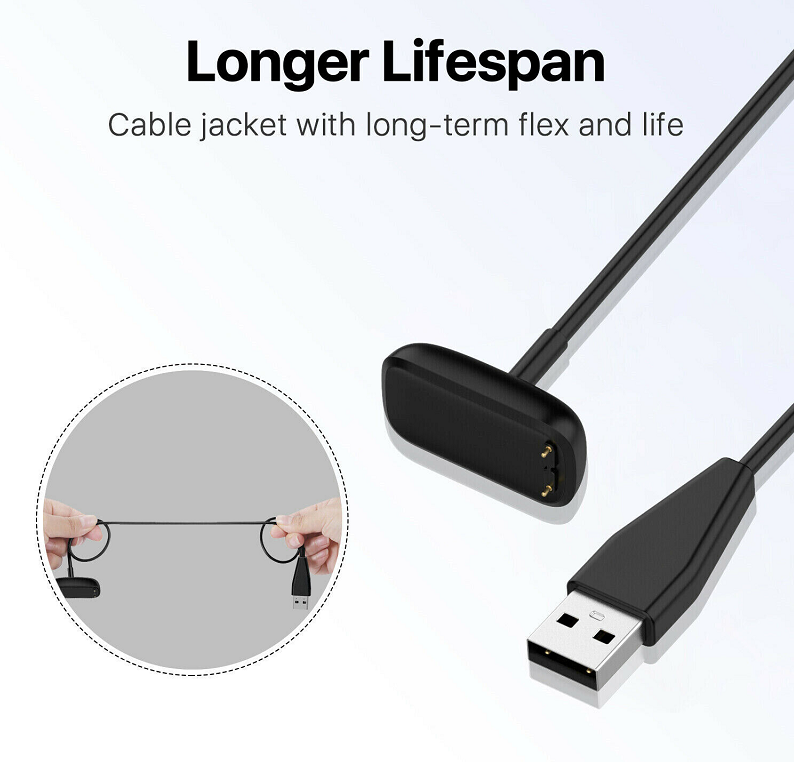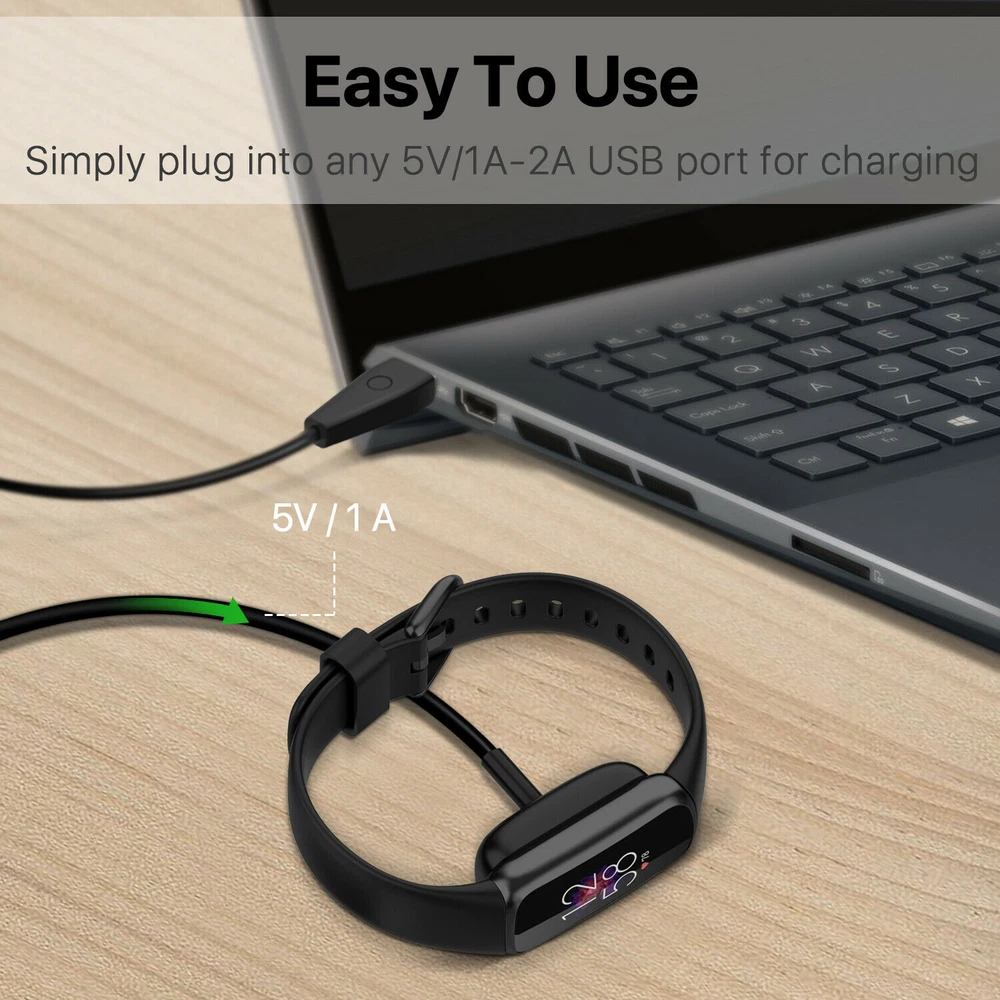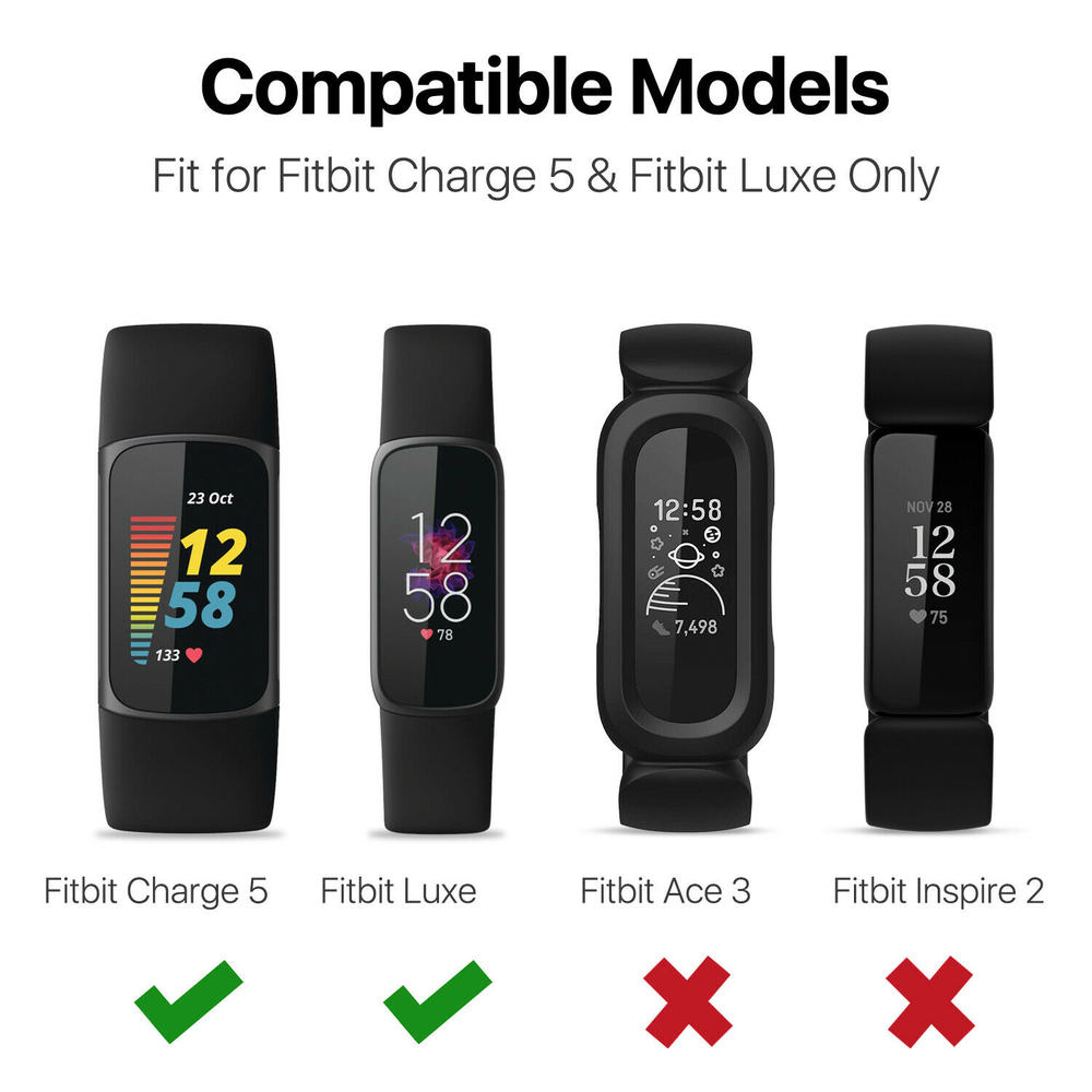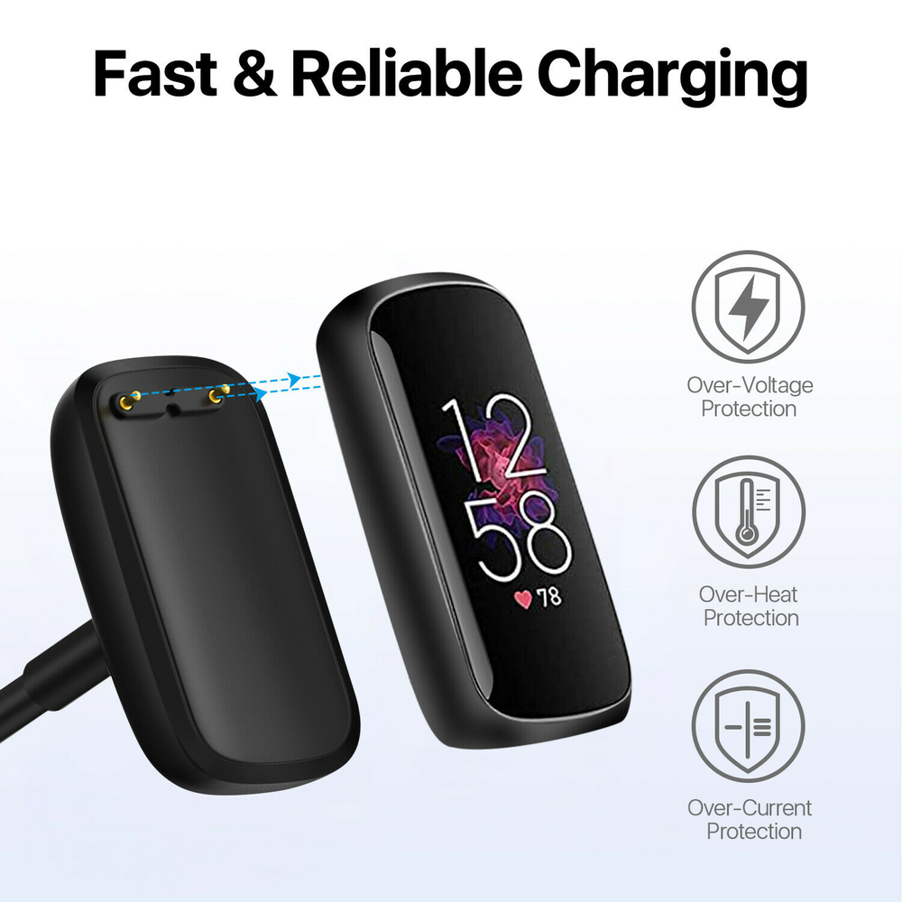 3.3FT Charger Cable for Fitbit Luxe/Fitbit Charge 5 USB Charging Power Adapter Description: Fitness means being active, sleeping well, and eating smarter and the Charge 5/Luxe helps you do all three. During the day, it tracks your steps, distance, calories burned and stairs climbed. Come nightfall, it measures your sleep cycle to help you see how to sleep better and it can even wake you in the morning without waking your partner. This cable is designed for use as a spare or replacement compatible with Fitbit Luxe and Charge 5 cable. Feature: Extra slim charging cable - Specially designed for Fitbit Luxe and Fitbit Charge 5 fitness tracker released in 2021, not compatible with other previous models Fast Charging Speed - The thick gauge wiring and reduced cable resistance enable our cable to provide the fast charge via any USB charger; Simply plug it into the USB port on your PC, Mac, laptop, notebook, portable power bank, wall outlet, car or travel charger for convenient and quick charging. Max input: 5V / 2A. Max Output: 5V / 1A With Reset Button - The usage method is the same as the original cable. While your device is unresponsive, please follow the instructions below: 1. Connect your device to the charging cable. 2. Press the button located on the flat end of the charger 3 times, pausing for 1 second between presses. 3. Wait 10 seconds or until the Fit-bit logo appears Voltage Regulator (PTC) Inside - Prevent your Charge 5/Luxe from being damaged by overcurrent when connected to the USB power source. Keep your smartwatch charged up safely and ready to go High-Quality Copper Wire Material - Maximizes charge speed and increases durability; High-resistance insulation protects each set of wires; Outer jacket made of solid PVC helps to protect the cables from damage and fraying Specification: Replacement charging cable compatible with Fitbit Luxe Fitness and Wellness Tracker / Fitbit Charge 5 Advanced Fitness & Health Tracker Length: 3.3 Feet / 100cm Max Input: 5V / 2A Max Output: 5V / 1A Color: Black Package Content: 1x Charger Cable for Fitbit Charge 5 - 3.3 FT USB Power Adapter Wire Cord Supply Replacement Spare Clip Dock Accessories for Fitbit Charge 5 Heart Rate Fitness Wristband
