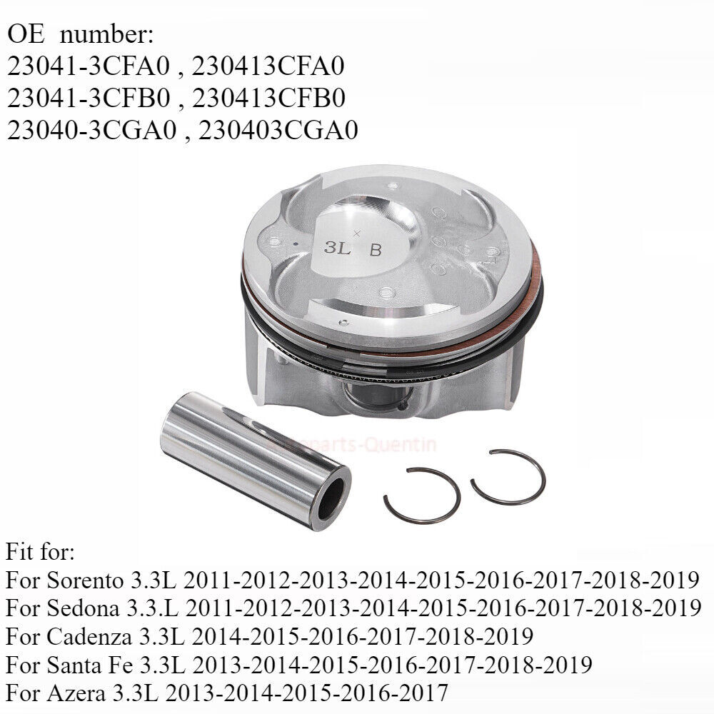Store Categories Store Categories Hyundai G6DH 3.3L G4KJ 2.4L G4KH 2.0L G4NA/G4NC 2.0L G4KD 2.0L G4FD 1.6L G4FJ 1.6L G4KF Jeep Audi BMW N20 2.0L N55 3.0L other Toyota 2AZ-FE 2.4L other Land Rover Maserati Mercedes-Benz Ford Body Mount Bushing Head Gasket Set Hood Hinge Camshaft Kit Crankshaft Kit Carburetor Cadillac Chevrolet Other 3.3L Engine Connecting Rod & STD Piston & Ring Set & Bearing Kit For Kia Hyundai Product Description Feature: 1. 100% brand new 2. 100% factory inspection and re-inspection before shipment 3. According to the original factory specifications 4. This product can be directly replaced 5.US Warehouse,Fast Delivery! 6. US Fast Free Shipping 7. One day shipment 8. Support 2 years warranty 9. REPLY WITHIN 24 HOURS Part Number: Piston & Rings Set: 23041-3CFA0 , 230413CFA0 23041-3CFB0 , 230413CFB0 23040-3CGA0 , 230403CGA0 Connecting Rods: 23510-3L100 , 235103L100 23510-3CFA0 , 235103CFA0 23510-3CFA1 , 235103CFA1 23510-3CHA0 , 235103CHA0 23510-3CHA1 , 235103CHA1 Main Bearings: 21020-3C300 , 210203C300 21020-3C310 , 210203C310 21020-3C320 , 210203C320 21020-3C330 , 210203C330 21020-3C340 , 210203C340 Rod Bearings: 23060-3C704 , 230603C704 23060-3C714 , 230603C714 23060-3C724 , 230603C724 23060-3C734 , 230603C734 23060-3C744 , 230603C744 Fitment: Piston & Rings Set: For Sorento 3.3L 2011-2012-2013-2014-2015-2016-2017-2018-2019 For Sedona 3.3.L 2011-2012-2013-2014-2015-2016-2017-2018-2019 For Cadenza 3.3L 2014-2015-2016-2017-2018-2019 For Santa Fe 3.3L 2013-2014-2015-2016-2017-2018-2019 For Azera 3.3L 2013-2014-2015-2016-2017 Connecting Rods: For Sorento 3.3L 2011-2012-2013-2014-2015-2016-2017-2018-2019 For Sedona 3.3.L 2011-2012-2013-2014-2015-2016-2017-2018-2019 For Cadenza 3.3L 2014-2015-2016-2017-2018-2019 For Santa Fe 3.5L 2010-2011-2012 For Santa Fe XL 3.3L 2013-2014-2015-2016-2017-2018-2019 For Azera 3.3L 2013-2014-2015-2016-2017 For Veracruz 3.5L 2011-2012 Bearings: Fits 06-16 Hyundai Kia Amanti Azera 3.3L-3.8L V6 DOHC 24v Compatibility is just for reference. Please compare with your one before purchasing Package Included: 1 Set x Piston & Rings 1 Set x Main & Rod Bearings 6 Pcs x Connecting Rods ( as shown in the picture) Please Note: 1. Please make sure the part number matches the part .Please check the photos carefully,make sure the photos showed is the same as you wanted. 2. Installation guide NOT included, professional skills required during the installation, we highly recommend asking repair shop for help. 3. Due to different displays and light variations, all pictures shown may not reflect the actual color or condition of the item. 4. Kindly contact us if any problems happen, we're committed to offer you 100% shopping satisfaction and solve the problem with you. About us: Durable, ready to handle tough environments Factory direct pricing without middleman mark-ups In stock in the USA and Ship From KY or CA or TX FAQ: Where is my item? All items are shipped out within same business days after full payment has been cleared. An automated email will be sent containing the tracking number. The tracking number does not update The automated email from Ebay system means your order has been processed but does not mean it has been shipped out. It may take up to 24 hours for the system to update. I purchased by mistake, how do I cancel the order? Please contact us ASAP. If the item has not been shipped out we can cancel the order for you. If the item was shipped out you can refuse the package and wait for the item to return to us. I received your item but it does not fit or is defective Please contact us so we can assist you on the matter. I tried to contact you, but cannot reach anyone. Our officer hours are 9:30AM - 5:30PM PST Monday - Friday. Emails are the best way to contact us and should receive a response within 24 hours. Why Us: We are a manufacture who specialize in ignition systems and have been in auto parts industry for over 5 years, offering HIGH QUALITY ignition system Brand that 100% factory tested with competitive price. Certificates of our Product: Payment Policy Shipping Policy Returns Policy Warranty Payment Policy Payment:We accept Credit card, Debit card, Apple Pay, Google Pay and PayPal. A dditi onal shipping fee may be charged for buyers from Puerto Rico, Hawaii, Alaska, Guam, and the U.S. military address of the United States or other remote area (zone 8-10). Most of the items come with a 30-day w arranty covering Shipping Policy Some orders may require extra information such as year/make/model/VIN or sizing of parts. Please be sure to provide this information with your order or by separate message. --Orders placed by 12pm PST with required information, if applicable, will ship same day via UPS Ground or competitive equivalent. Orders should arrive within 5 business days of purchase in the Continental United States (Lower 48). Our free shipping offer is to the Ebay hub. Important notice: * Please update your phone number for delivery contact when checking out. * P.O box address is not available for delivery. * Changing shipping address is not available after the shipment. Returns Policy - You can return the products in 30 days aftre receiving the products. Please contact us for the authoried return number before sending back. - To speed up the process, please let us know the reason why you want to return. If the reason is our side, please take some picture or video for evidence. -If the return is not caused by the seller, the seller will charge the corresponding return shipping fee. Warranty - We provide 2 years warranty (some products may vary based on the category. Check the item specifics for confirmation). - The warranty only covers manufacturing defect. Unproper usage or physical damage is not valid. - It only covers the value of the products; the manual cost or other relevant cost is not valid. Copyright © 2023 Dianxiaomi