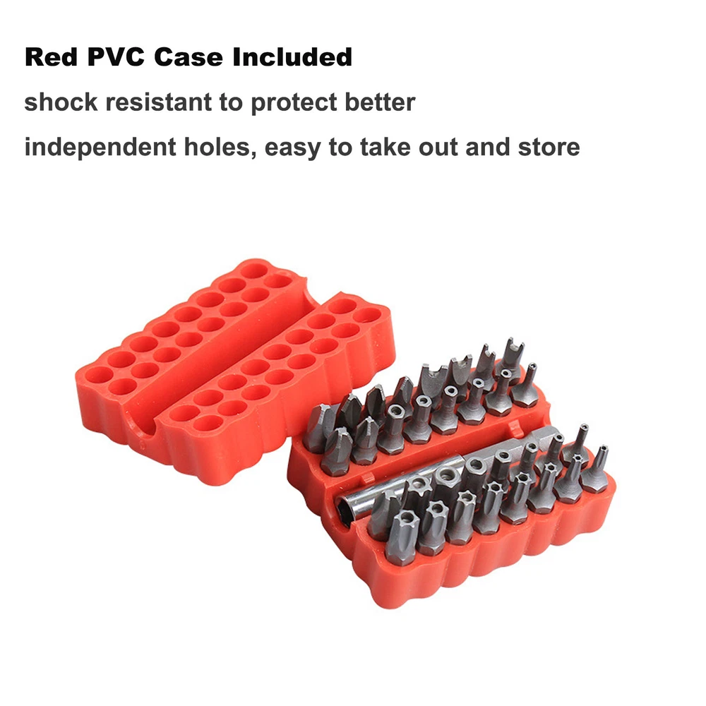 product Shipping Payment Warranty and Guarantee Other Policies Item Description Specification ✅ Features: 1. 100% Brand New 2. 33PCS Torx Bit Hex Spanner Tri-Wing Multi function Screw Driver Bits 3. Most essential bits are included 4. Soft Protective PVC Case included 5. Magnetic Extension bit included ✅ Specification: - Bits material: CR-V Steel - Bits Length: 25MM - Tri-Wing Bits #1, #2, #3, #4 - Torque Bits 6, 8, 10mm - Spanner Bits 4, 6, 8, 10 - Hex Bits (Metric) 2, 2.5,3,4,5,6mm - Hex Bits (SAE) 5/32, 9/64, 1/8,7/64, 3/32, 5/64 - Torx Star Drive Bits SD-8,10,15,20,25,27,30,35,40 - 6.35MM Magnetic Extension Bit Holder ✅ Package includes: 1X 33 Torq Bit Set with case6 ✅ Notes: 1.We Provide Clear Pictures, Measurements Where Possible. Please Check As Much As Possible To Make Sure The Item Is The One That You Need. 2.There Are No Instructions Included In This Kit. 3.The Color Of The Actual Items May Slightly Different From The Listing Images Due To Different Computer Screen, Thanks For Your Understanding. 4.Please make sure our product fits your model before placing an order and don't hesitate to contact us if you have any issue. 5.If you are unsure if it is suitable, sending the model, year, model, and physical image for confirmation is the safest option. If installation is not possible, product defects, packaging damage, logistics updates are not timely, etc., please contact us in a timely manner, and we will handle it within 24 hours after receiving the information. Please do not leave malicious negative comments or returns. Item Pictures More Shipping 1.We ship to worldwide,except Hong Kong,Taiwan,Macao,China,Guemsey and we do not ship to APO/FPO, etc. 2.Item will be shipped within 3 business day on payment received. 3.Items are shipped from China using Airmail,reach most of countries within 10-20 business days. 4.sDelivery time depends on destination and other factors,it may takes up to 20 business days. Payment 1.We accept Paypal only. 2.All major credit cards are accepted through secure payment processor PayPal. 3.Payment must be received with 7 days of auction closing 4.If you have bought multiple items from us,you can send us one payment for all the items instead of paying for them individually. When you click the Pay Now button,eBay will automatically determine if there are other items you have won of purchased from us and will combine them for your review. Warranty and Guarantee 1.One year warranty!30 days money back!Buy with confidence! 2.If you are not satisfied when you receive your item,please return it within 30 days for a replacement or money back.Please contact us before you return the item. 3.If item is defective in 3 months,we will send you a replacement without extra charger,or offer refund after we receive the defective item. 4.If item is defective after 3 months,you can still send it back to us.We will send you a new one after after receiving the defective item,but you have to pay the extra shipping fee. Other Policies 1.We are not responsible for any custom duty or import tax. 2.We will leave Positive Feedback after receiving the payment.Please contact us if you are not satisfied with the item after receiving it. 3.All emails will be answered within 1 business day.If you do not receive our reply,please kindly re-sent your email and we will reply you as soon as possible. 4.Serious Buyer Only!Please place bid only if you agree with all the terms.