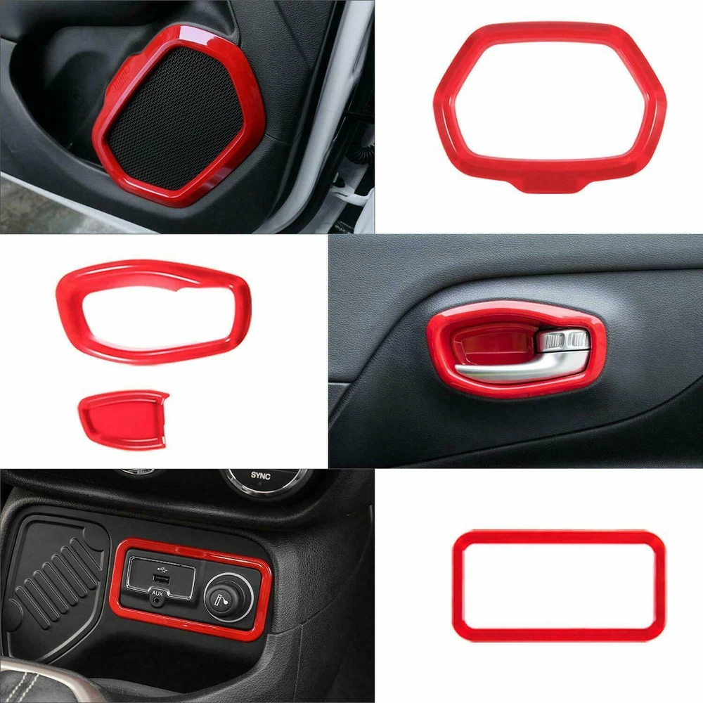 33PCS Red Interior Accessories Decoration Cover Trim kit For Jeep Renegade 2016+ ❈Free Returns&Fast Shipping❈3Ys Warranty❈Lowest price❈ Condition:100% Brand new Factory-Quality, Made in an ISO9001 Factory Easy installation, Decorate your car charming luxury vivids 33x Red Inner Accessories Decoration Cover Trim kit For Jeep Renegade 2016+ABS Product description About CheroCar Company: --Our CheroCar Company Ideas ☀Always adhere to the customer first, quality first, service first. --Production Control ☀All products are produced after repeated proofing, test and small batch production, in order to let the products received by all customers are the most perfect and most suitable. ☀CheroCar all products have the QC in each process for inspection, the quality can be guaranteed accordingly. Fitment Fit For Jeep Renegade 2016+ Features - Material: Made of High Quality ABS - Paint Baking and UV Treated on surface - Easy installation with double-sided tape - Color: Red - it was not the replacement part. - Please confirm your car model is as same as the picture before submitting your order - NOTE- In case it fall off for some car models, just add some tape and put the cover back on,then they will work perfectly Package include: 33PCS/set Inner Decoration Cover Trim Installation Guide: Step1: Please clean the installation place and keep it dry and no dust on. Step2: Tear off the self-adhesive on the back. Step3: If the weather is below 15 degrees,you may need to heat the Self-adhesive with a hair dryer for better adhesion. Step4: Do not wash the car within 48 hours after installation. Attention: If you do not want,you can remove it easily.No glue left or you can erase it.