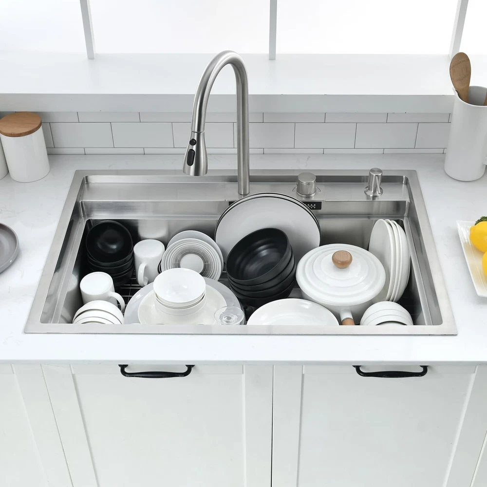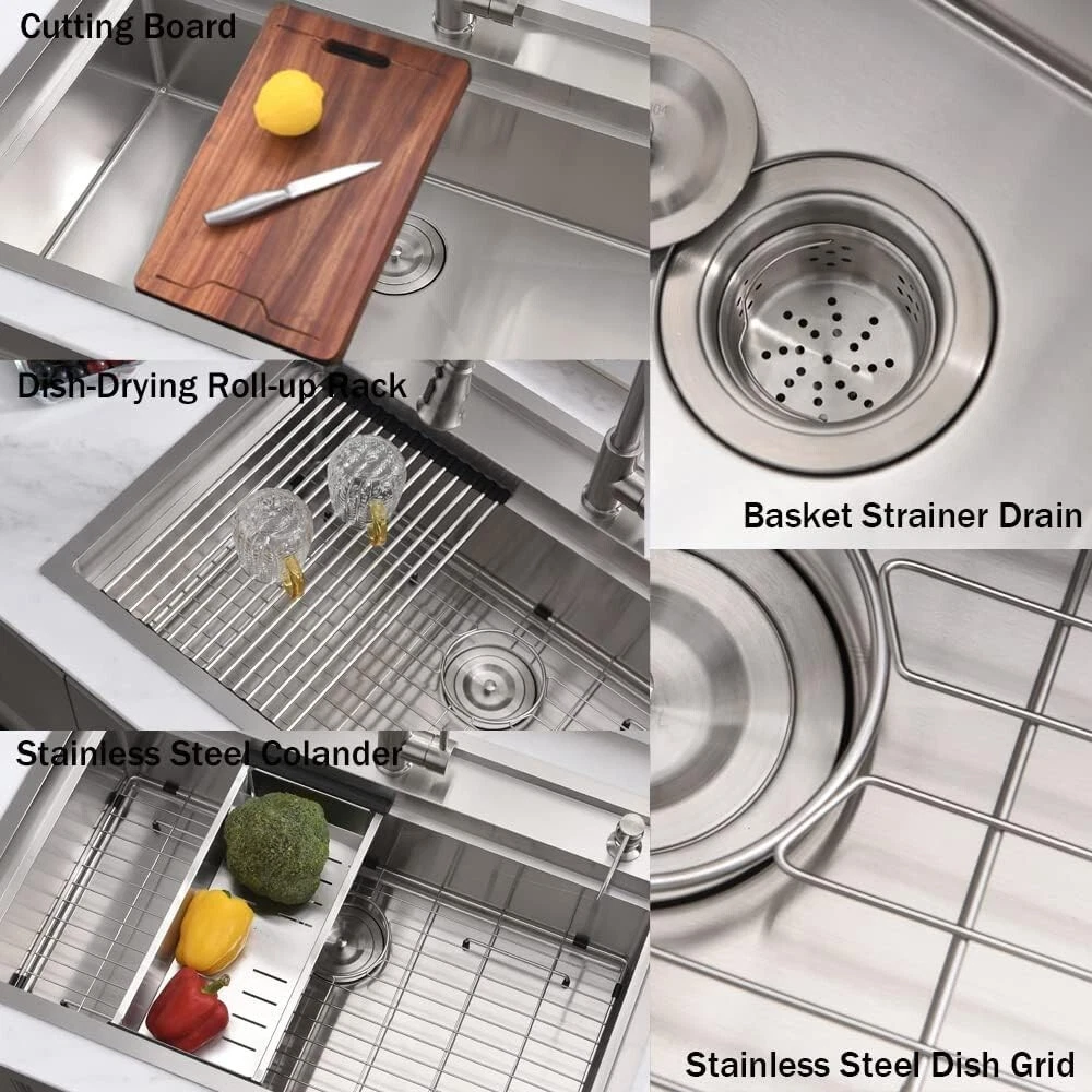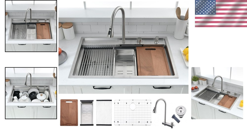 33x22-Inch Multifunctional Drop-In Kitchen Sink - Noise Reduction & Fast Drain ‹ › ‹ › ‹ › ‹ › ‹ › ‹ › ‹ › ‹ › ‹ › 33x22-Inch Multifunctional Drop-In Kitchen Sink Upgrade your kitchen with this exquisite, multifunctional drop-in kitchen sink! Features: Splash Guard Workstation: Innovative tracks on the front and back of the sink allow you to slide accessories such as cutting boards and colanders for enhanced meal prep without sacrificing counter space. Noise Reduction: Designed with 3mm sound guard undercoating and thick rubber padding for ultra-quiet operation. The anti-condensation coating prevents moisture accumulation and condensation in cabinetry. Quality Construction: Made with heavy 16-gauge T-304 grade stainless steel for durability and elegance. Finished with a brushed nickel look for easy cleaning and long-lasting use. Fast Drainage: Engineered with a unique bottom slope design and X grooves water guide line ensuring fast and efficient drainage while minimizing the risk of clogs. Dimensions: Exterior dimensions: 33" x 22" x 10" | Interior dimensions: 30" x 17" x 10" | Equipped with 3.5" standard drain openings suitable for any garbage disposal unit. Benefits: Streamlined work area for enhanced culinary experiences and efficient cleanup. Enhances the aesthetic of any modern kitchen with its sleek design. Stability and durability ensure that this sink will withstand the rigors of daily use. Pre-drilled holes for easy installation of faucet and soap dispenser. Why choose our Multifunctional Drop-In Sink? If you crave a stylish, functional, and noise-free kitchen experience, this 33x22-Inch Multifunctional Drop-In Kitchen Sink is your ideal choice. With its remarkable noise reduction features, moisture barrier, and sleek design, it transforms meal prep and cleanup into effortless tasks. This sink is more than just a place to wash dishes – it’s a workstation that elevates your culinary experience. Experience the perfect blend of elegance and efficiency – elevate your kitchen with our drop-in sink today! Shipping Free & Fast Shipping - We offer free shipping to most of the USA with a normal delivery time of 3-7 days. However, due to the current situation, additional delivery time (up to 3 weeks) may be required for some items. Alternative Carriers - We may use alternative carriers (e.g. USPS, FedEx, UPS, etc.) to ensure your package arrives safely and on time. Due to the use of multiple carriers, we are unable to provide a tracking number automatically. Handling Time - Orders are processed and shipped within 1-2 business days of receiving cleared payment. Shipping Restrictions - Shipping to Alaska, Hawaii, Puerto Rico, Guam, and other US territories may incur shipping charges or delivery restrictions. Please contact us before ordering, or your order can be refunded/cancelled. State Restrictions - There may be restrictions based on your state of purchase. For example, certain items may not be shipped to California due to state regulations. Contact for Tracking Updates - If you require tracking updates or have any concerns about the delivery of your order, please feel free to contact us, and we will be happy to assist you. Return Please see our eBay Return Policy. Thank you. Payment We accept all major credit cards, PayPal, and Apple Pay for your convenience. Your payment information is secure and encrypted to ensure a safe and seamless transaction. Please complete your payment within 3 days of purchase to avoid any delays in shipping. Feedback Your feedback is extremely important to us. We strive to provide the best products and customer service possible. If you are satisfied with your purchase, please take a moment to leave us a positive review. If you have any concerns or issues with your order, please contact us before leaving negative feedback. We are committed to resolving any problems and ensuring your satisfaction. Contact Us If you have any questions or concerns, please feel free to reach out to our customer support team. You can contact us through the eBay messaging system. We are available Monday to Friday, 9:00 am to 5:00 pm EST, and we will do our best to respond to your inquiry within 24 hours. Thank you for supporting our small family business! UPC: Not Set Item Weight: 20 Model: Not Set Unit Quantity: kg Material: Stainless Steel Suitable For: Kitchen Sink Features: Noise Cessation,Drop in,Waterfall,Splash Guard,Workstation,Moisture Barrier,Fast Drainage Labels & Certifications: Not Set Room: Kitchen Items Included: Not Set Brand: Unbranded Type: Kitchen Sink Finish: Brushed Number of Faucet Holes: 2 Color: Stainless Steel Number of Faucet Handles: 0 (Touchless) Handle Type: Not Set Faucet Mounting Type: Not Set Shape: Rectangular Installation: Drop In Faucet Hole Spacing: 3.5 in Item Height: Not Set Item Width: Not Set Item Length: 22 in Spout Height: Not Set Manufacturer Warranty: Not Set MPN: Not Set Manufacturer: Not Set Product Line: Not Set Style: Modern Country/Region of Manufacture: Not Set Unit Type: Not Set Assembly Required: Not Set