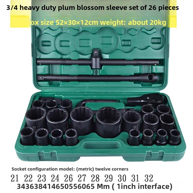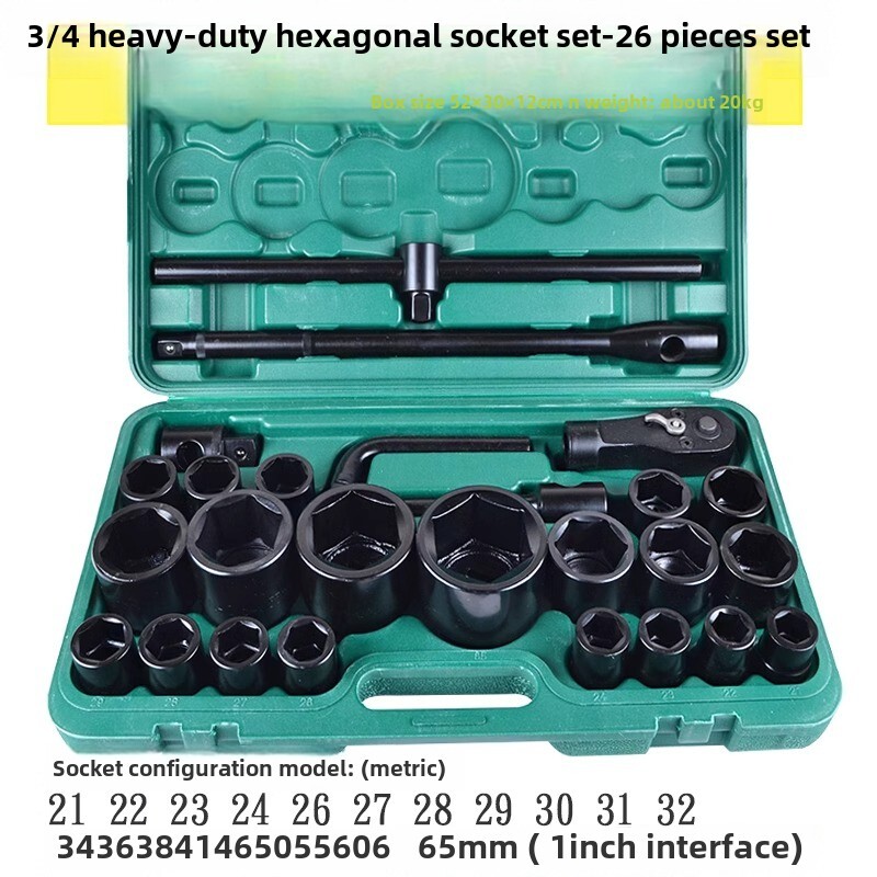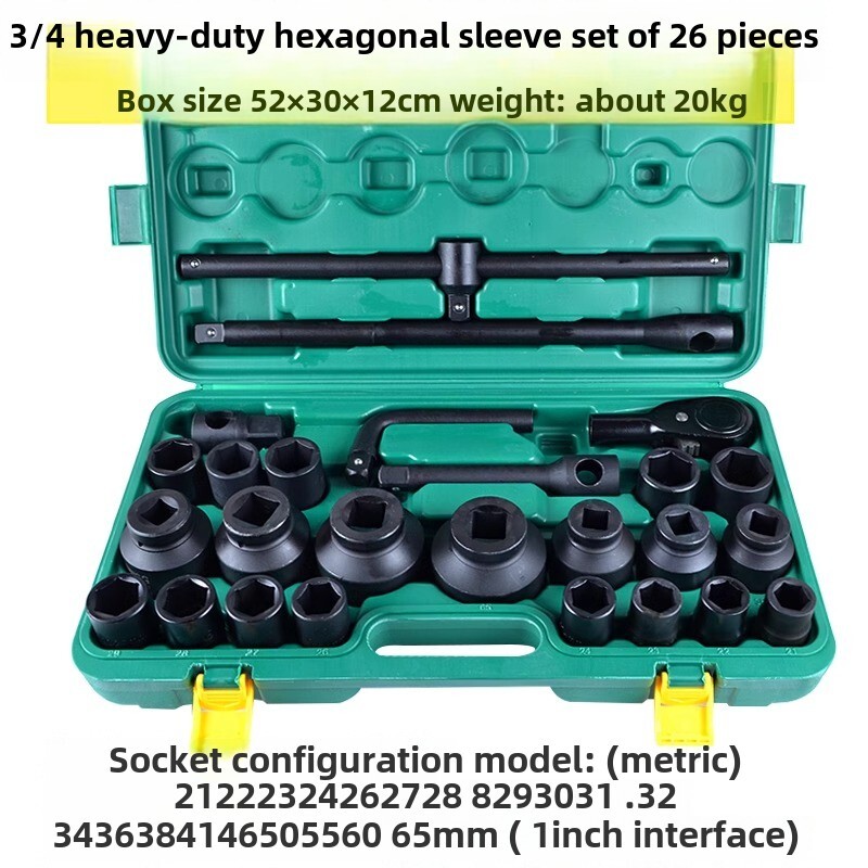 3/4 Heavy Duty 26 Piece Socket Tool Set Medium Wind Cannon Socket Wrench