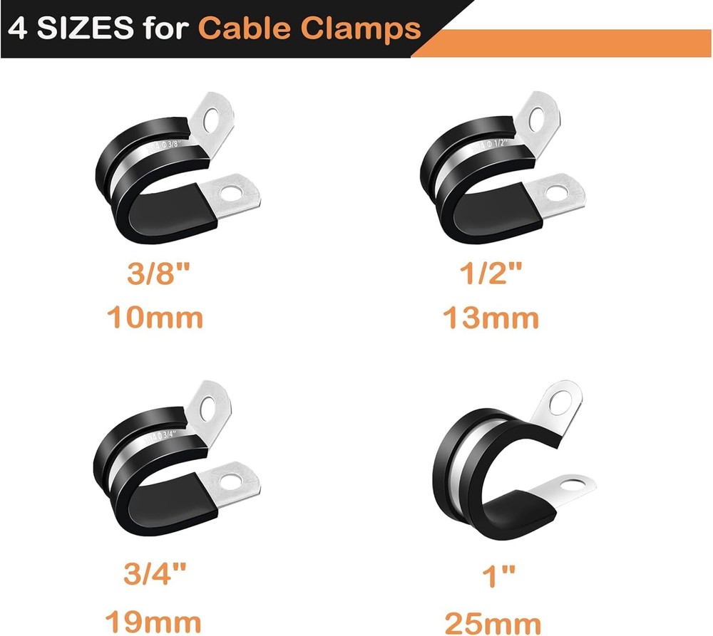 3/4 Inch Cable Clamp 50 Pack Rubber Cushioned Insulated Clamp Stainless Steel... Premium Material: Corrosion-resistant 304 stainless steel with bonded rubber cushions for vibration protection in harsh environments. Industrial-Grade Capacity: Holds wires, hoses, or tubing – ideal for automotive frames, machinery, and electrical panels. Ergonomic Installation: P-shaped torsion-flex design enables tool-free adjustments without compromising grip security. Multi-Scenario Adaptability: Secure M6 screw fastening adapts to engine bays, plumbing systems, or DIY projects requiring repositionable clamps. Bulk Value Pack: 50-piece set with uniform sizing for streamlined organization of complex routing tasks. Shipping We offer FREE shipping on all orders! We ship within Three business days of payment, usually sooner. We use a selection of shipping services such as UPS, FedEx, USPS etc. We only ship to the lower 48 states, no APO/FPO addresses or PO Boxes allowed. Local pickups and combined shipping options are not provided at this time. Return You can return a product for up to 30 days from the date you purchased it. Any product you return must be in the same condition you received it and in the original packaging. Please keep the receipt. Customer satisfaction is very important to us. If you have any problem with your order, please contact us and we will do our best to make you satisfied. Contact Us If you have any queries, please contact us via ebay. We usually respond within 24 hours on weekdays. Please visit our eBay store to check out other items for sale! Thank you for shopping at our store.
