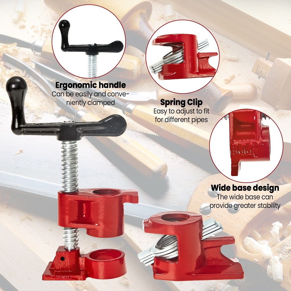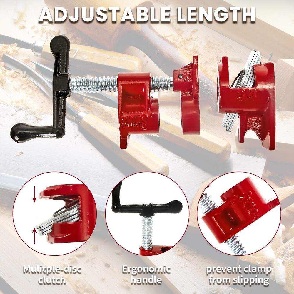 Designed for use with any length of 3/4 inch pipe, these pipe clamps for woodworking are versatile for various woodworking projects.