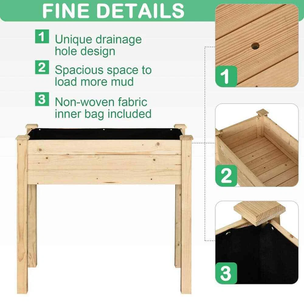 Natural, rustic design; perfect for small spaces Durable construction and water-resistant paint for indoor/outdoor Protects plants, reduces strain, and has ample growing space Brand Outsunny Type Elevated Garden Beds UPC 842525142977 Model 845-239V01 Richguysbrh7 Your dream home is here 34 in. L x 18 in. W x 30 in. H Wood Outdoor Raised Garden Bed for Vegetables, Herbs and Flowers Natural, rustic design; perfect for small spaces Durable construction and water-resistant paint for indoor/outdoor Protects plants, reduces strain, and has ample growing space Bringing rustic charm and function to your garden, our outdoor garden bed with legs is an easy solution. Raised up and away from weeds and wild animals, it offers a safer space for plants. Ergonomic and comfortable, it eases back strain by letting you plant with no bending required. Constructed of outdoor-ready fir wood and featuring rain-draining holes on the bottom, it's made to help plants withstand the weather. Whether it's flowers, fruits, vegetables, or herbs, get growing with Outsunny. Elevated Garden Bed with Legs: Allow your flowers and vegetables breathing room, and roots room to grow. Our raised garden bed with legs has a big trough-shaped planter box capable of holding two cubic feet of soil. Self-Draining Planter Box: Our elevated garden planters feature draining slats to keep soil fresh and protect plants from both waterlogging and mineral buildup. Fabric Filter Bag: Inside the trough-shaped planter box is a barrier of nonwoven fabric. This filter keeps your elevated garden bed tidy, makes the box breathable, and prevents soil erosion after watering. A Comfy Height: The raised garden bed with legs is great for those with less mobility. A raised planter box can reduce back and knee strain while raising plants up and away from weeds and wild animals. Raised Garden Box Info: Overall Dimensions: 33.75" L x 18" W x 30" H. Planter Bed Size: 31.5" L x 15.75" W x 7.25" H. Weight Capacity: 176 lbs. Easy assembly is required. Click here to shop all Outsunny products Color Family:Oak|Color Family:Oak|Color/Finish:Natural|Color/Finish:Natural|Container Depth (in.):18 in|Container Depth (in.):18 in|Material:Wood|Material:Wood|Number of Tiers:1 Tier|Number of Tiers:1 Tier|Pots & Planters Type:Raised Beds|Pots & Planters Type:Raised Beds|Product Weight (lb.):19.8 lb|Product Weight (lb.):19.8 lb|Raised Bed Features:No Addional Features|Raised Bed Features:No Addional Features|Returnable:90-Day|Returnable:90-Day|Shape:Rectangular|Shape:Rectangular|Container Height (in.):30|Container Height (in.):30|Container Length (in.):33.75|Container Length (in.):33.75|Container Width (in.):18|Container Width (in.):18 Item Specifics Brand Outsunny Type Elevated Garden Beds UPC 842525142977 Model 845-239V01 Payment Returns Richguysbrh7 Your dream home is here DESCRIPTION PAYMENT SHIPPING RETURN POLICY CONTACT US 34 in. L x 18 in. W x 30 in. H Wood Outdoor Raised Garden Bed for Vegetables, Herbs and Flowers Natural, rustic design; perfect for small spaces Durable construction and water-resistant paint for indoor/outdoor Protects plants, reduces strain, and has ample growing space Bringing rustic charm and function to your garden, our outdoor garden bed with legs is an easy solution. Raised up and away from weeds and wild animals, it offers a safer space for plants. Ergonomic and comfortable, it eases back strain by letting you plant with no bending required. Constructed of outdoor-ready fir wood and featuring rain-draining holes on the bottom, it's made to help plants withstand the weather. Whether it's flowers, fruits, vegetables, or herbs, get growing with Outsunny. Elevated Garden Bed with Legs: Allow your flowers and vegetables breathing room, and roots room to grow. Our raised garden bed with legs has a big trough-shaped planter box capable of holding two cubic feet of soil. Self-Draining Planter Box: Our elevated garden planters feature draining slats to keep soil fresh and protect plants from both waterlogging and mineral buildup. Fabric Filter Bag: Inside the trough-shaped planter box is a barrier of nonwoven fabric. This filter keeps your elevated garden bed tidy, makes the box breathable, and prevents soil erosion after watering. A Comfy Height: The raised garden bed with legs is great for those with less mobility. A raised planter box can reduce back and knee strain while raising plants up and away from weeds and wild animals. Raised Garden Box Info: Overall Dimensions: 33.75" L x 18" W x 30" H. Planter Bed Size: 31.5" L x 15.75" W x 7.25" H. Weight Capacity: 176 lbs. Easy assembly is required. Click here to shop all Outsunny products Color Family:Oak|Color Family:Oak|Color/Finish:Natural|Color/Finish:Natural|Container Depth (in.):18 in|Container Depth (in.):18 in|Material:Wood|Material:Wood|Number of Tiers:1 Tier|Number of Tiers:1 Tier|Pots & Planters Type:Raised Beds|Pots & Planters Type:Raised Beds|Product Weight (lb.):19.8 lb|Product Weight (lb.):19.8 lb|Raised Bed Features:No Addional Features|Raised Bed Features:No Addional Features|Returnable:90-Day|Returnable:90-Day|Shape:Rectangular|Shape:Rectangular|Container Height (in.):30|Container Height (in.):30|Container Length (in.):33.75|Container Length (in.):33.75|Container Width (in.):18|Container Width (in.):18 Item Specifics Brand : Outsunny Type : Elevated Garden Beds UPC : 842525142977 Model : 845-239V01 Payment Returns All rights reserved. Hot Item New List Item Help & Info Payment Policy Shipping Policy Return Policy FAQ About Us
