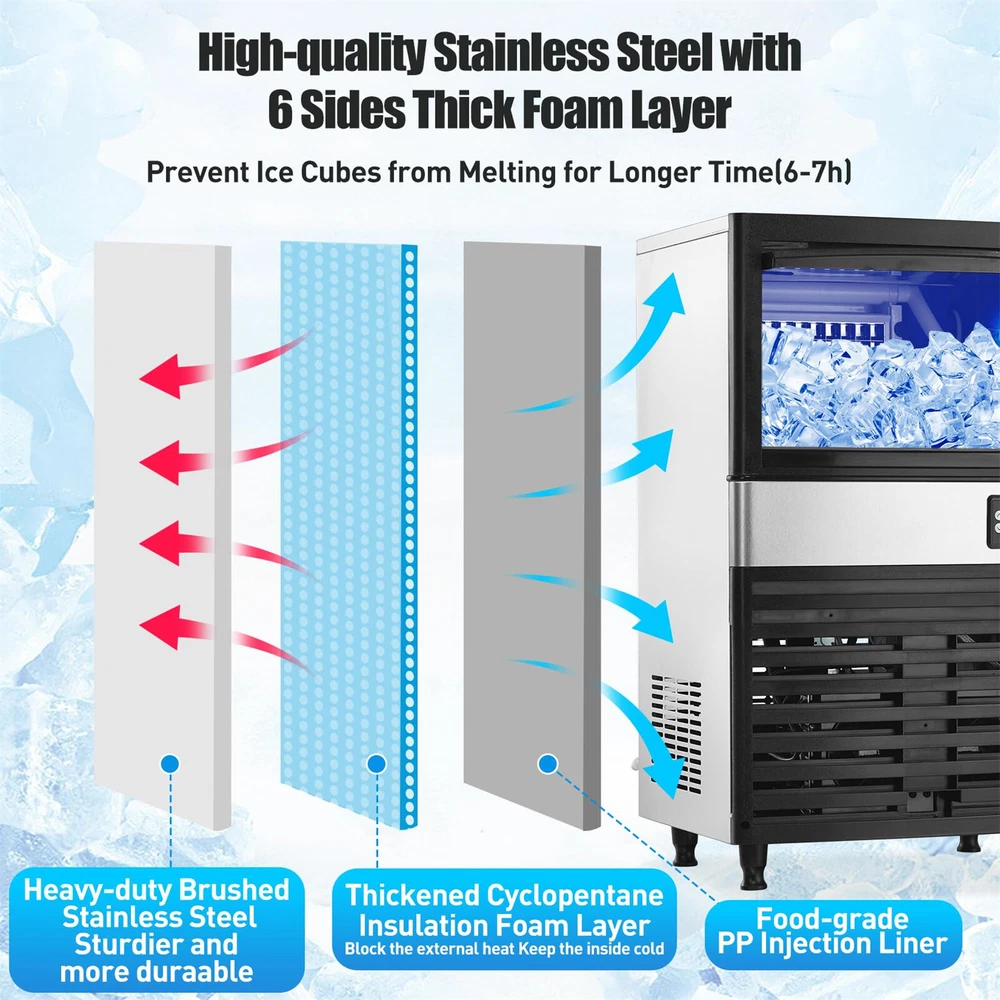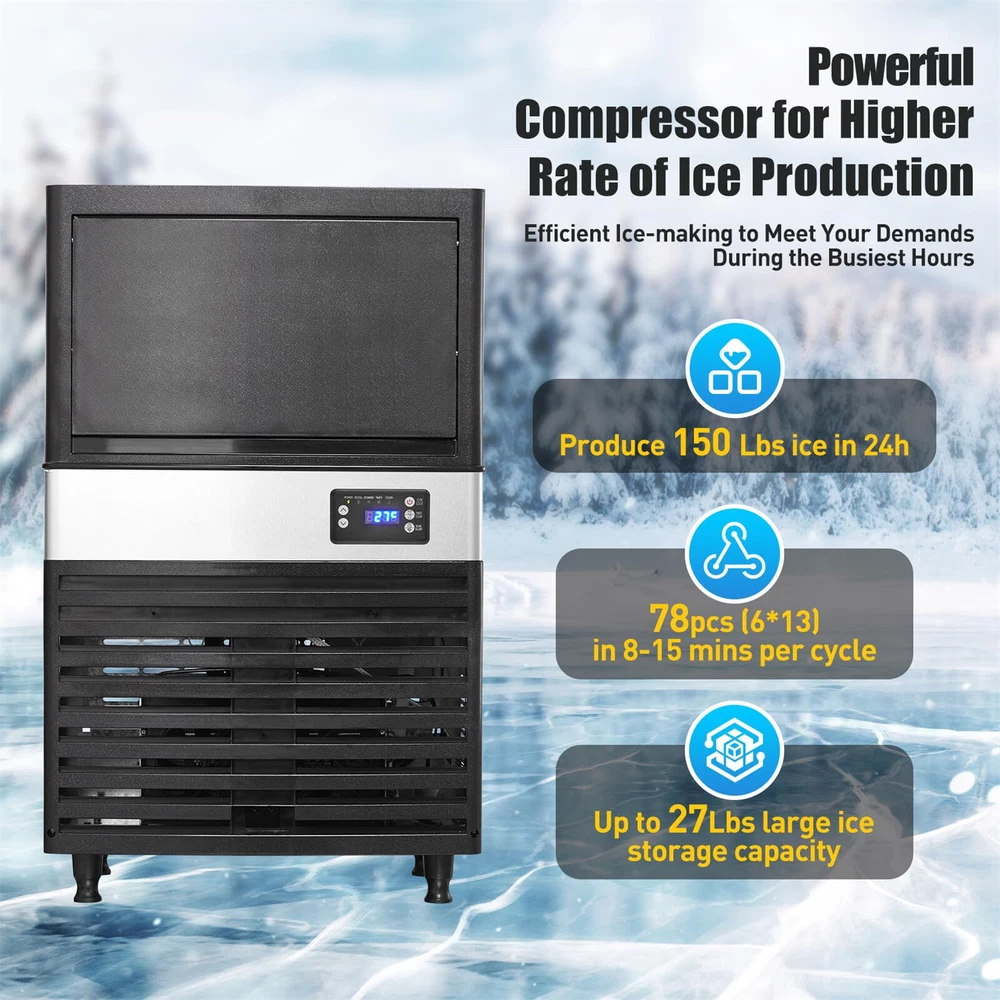 About this item ❄️Fast Ice Making - The nugget ice maker is made from a large capacity storage bin of up to 27 pounds, designed with 150 ice cubes per cycle (only 8-10 minutes). The ice nugget maker can produce 150 pounds of ice within 24 hours, making it perfect for your home, coffee shop, bar, or restaurant. If you run out of ice, don't worry, don't go to the store to buy ice again. ❄️ Intelligent & Simple - The PioneerWorks ice maker nugget equipment is equipped with an intelligent LCD control panel, allowing you to operate it easily, quickly, and conveniently. This includes various functions such as ice treatment mode, one click automatic cleaning, adjust ice thickness, reservation function, water addition indicator, full ice indicator, and water shortage protection function. The ice maker crushed ice can provide you with a simple panel adjustment for ice customization and provide you with timely feedback in case of errors. ❄️ Excellent Structure - Our commercial ice maker uses full stainless steel as the shell protection, and uses food grade PP injection liner and hexahedral cyclopentane foam layer, which can effectively isolate external heat and provide better insulation effect. Polyethylene foam layer has low thermal conductivity to effectively prevent ice melting for 7-9 hours. ❄️ Energy Saving - The home ice maker adopts advanced energy-saving technology, reducing power consumption, allowing you to save energy costs while operating efficiently; Equipped with eco-friendly refrigerants, not only can the pellet ice maker reduce energy consumption, but it can also minimize greenhouse gas emissions, making it your business' environmental choice. ❄️ After-sales Service - The crushed ice maker can provide a 30-days replacement service for quality issues or damaged goods. 3-year quality assurance and lifelong technical service and troubleshooting support. If you have any questions, please feel free to contact us within 24 hours. Product Description 22" x 35" x 20" Commercial Ice Maker Machine Undercounter Nugget Ice Maker Tap Water Source with Water Purifier Connected with water purifier, this ice machine under counter can provide ice cubes 24 hours continuously . 26 LBS Ice Storage Cabinet This ice maker machine commercial have large capacity to storage ice with a compact size. Intelligent LCD Panel Many functions could be set up by the control panel, such as ice thickness adjustment and self cleaning. And there is a status display to users. Water Circulation Besides being stored for a long time, the machine will cycle when producing faster ice cubes. And discharge excess wastewater. Payment Delivery details Terms of sales About us Contact us Payment We accept payment either via PayPal or any of the following credit cards; Visa, MasterCard, Discover, and American Express. Wishing you a happy life! Delivery details We will provide you with the tracking number on the same day or the next day, and transport your package through UPS, DHL, FedEx and other courier methods. If you have any questions, please feel free to contact me and I will do my best to help you solve the problem. Wishing you a happy life! Terms of sales We offer a one month free return and exchange service, and you don't have to bear any losses. We will provide multiple solutions for you to choose from. If you have any questions, please feel free to contact me and I will do my best to help you solve them. We offer a two-year warranty period. If you have any quality issues with the product you purchased within two years, please feel free to contact me. I will provide you with a free replacement service. If you have any questions, please feel free to contact me. I will do my best to help you solve the problem. Wishing you a happy life! About us We are committed to becoming the best eBay seller, with high-quality suppliers, providing the most sincere service, including pre-sales and after-sales service, to give you a satisfactory shopping experience. If you have any questions, please feel free to contact me, and I will do my best to help you solve the problem. Wishing you a happy life! Contact us If you encounter any problems, please contact me by email at the first time, I will provide you with a solution as fast as possible so that I can give you a satisfactory shopping experience, wish you a happy life! Brand TROPOW MPN ice maker Ice Type Cubes Country/Region of Manufacture China Product Dimensions 22"D x 20"W x 35"H Capacity 27 Pounds
