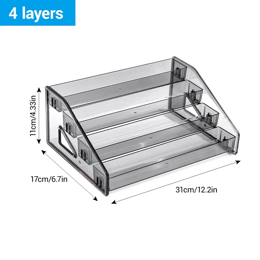 Product Description 3/4/5/6/7 Layers Sport Cards Display Shelf Holder Storage Acrylic Display Stand Features: -Stepped Design: It can easily organize your items, whether they are trading cards or cosmetics, allowing you to clearly see the layers in which they are stored. -Premium Material: made of premium and durable acrylic, this durable stylish crystal clear organizer embodies the beautifully understated elements of minimalist design with modern feature, complementing almost any decor; rounded edges without burrs. -Easy Assembly: snap-on design for easy installation; simply align the holes and installation can be completed without additional screws; will not change shape or color after being washed. Specification : Material : Acrylic Color : Gray Tier: 3/4/5/6/7 layers Package included: 1 x Acrylic Shelves