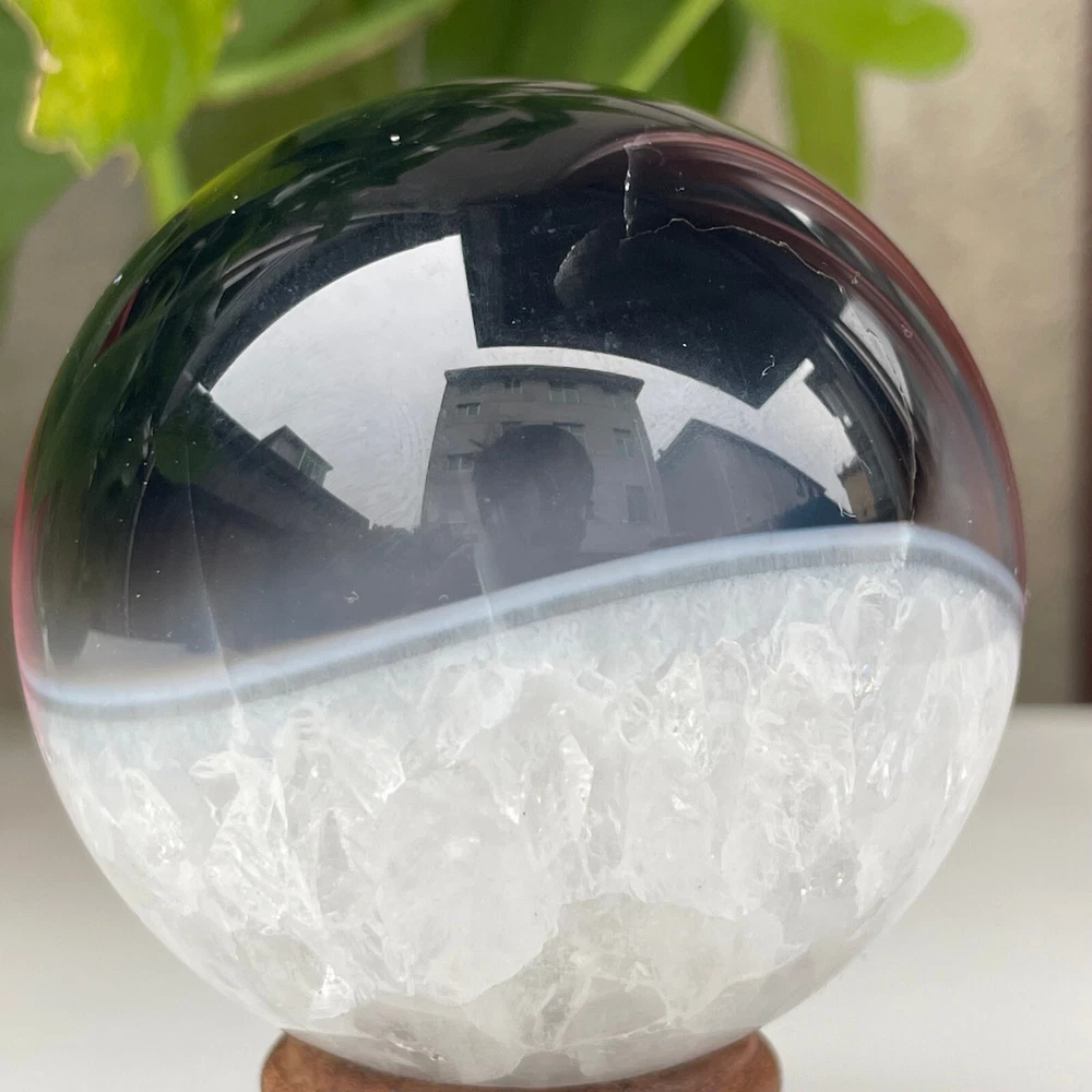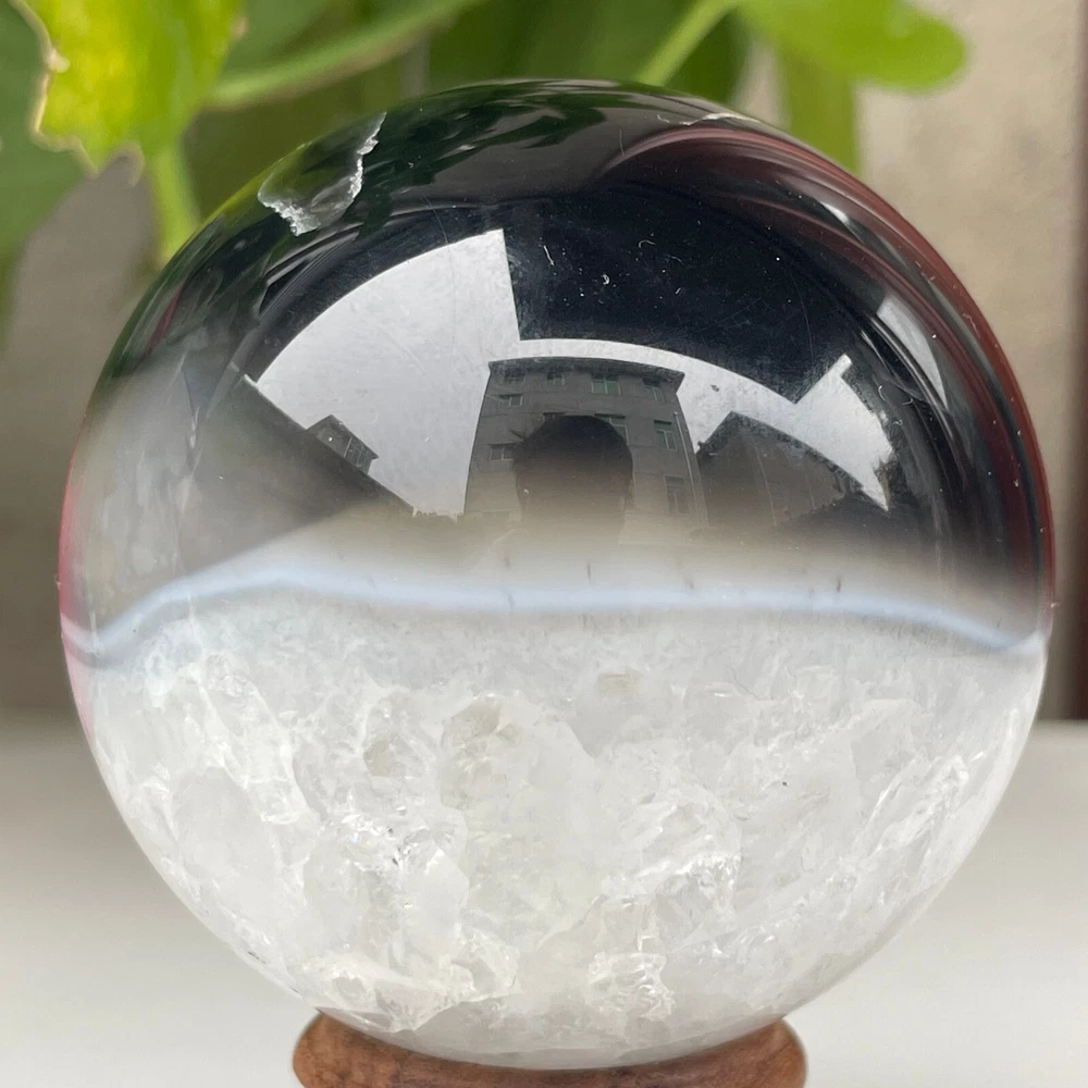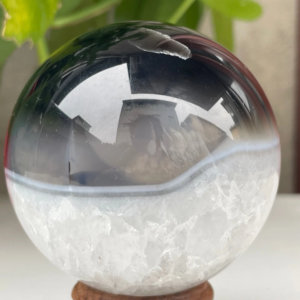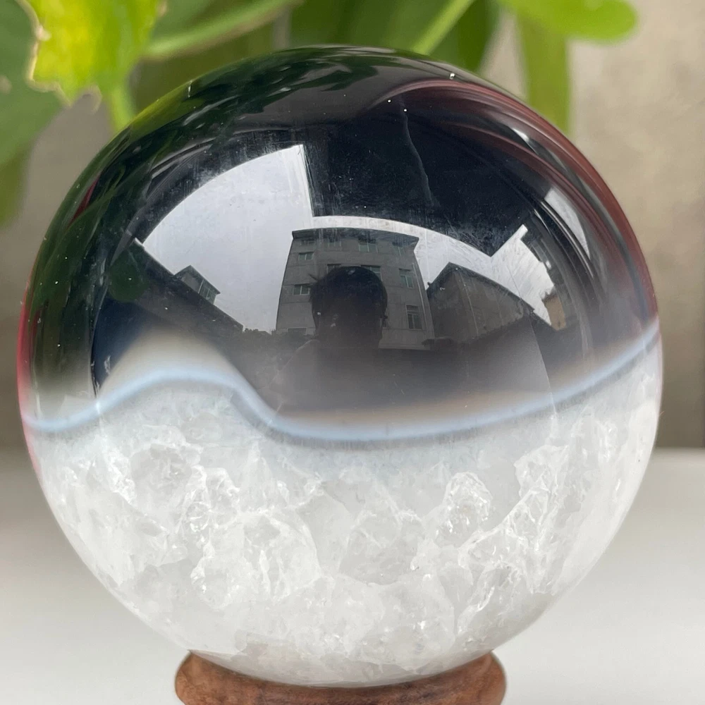 345g Natural Black Agate Ball Quartz Crysta Energy Sphere Reiki healing