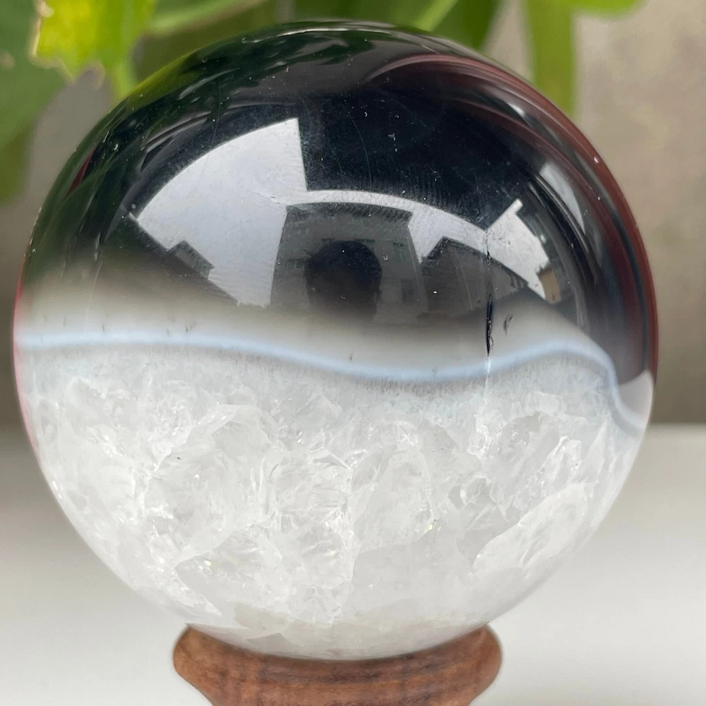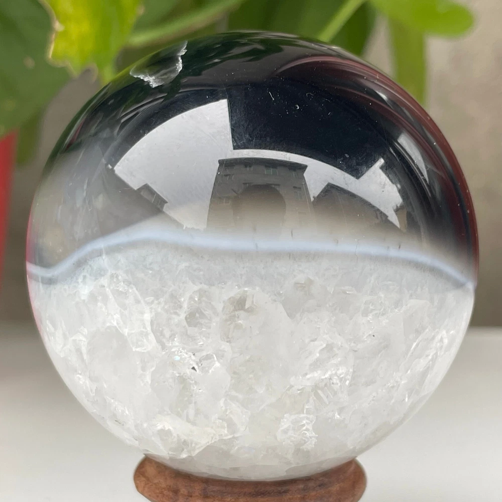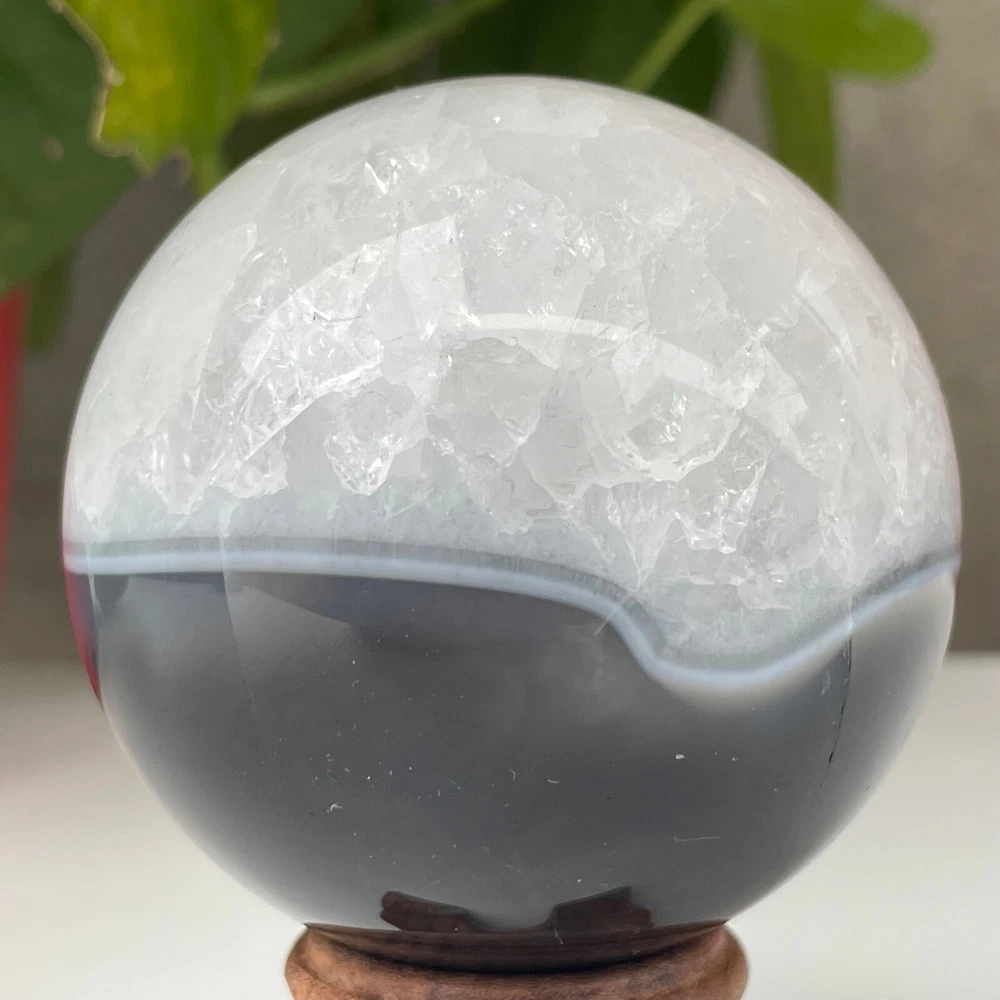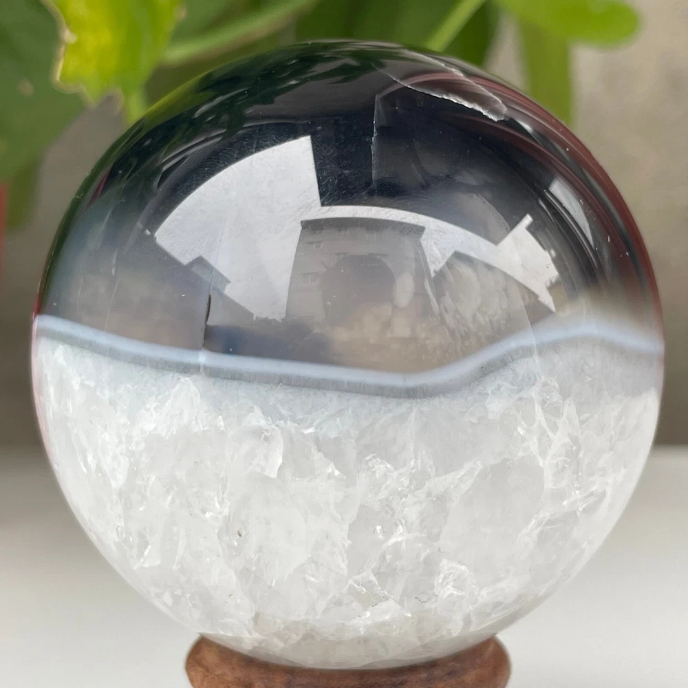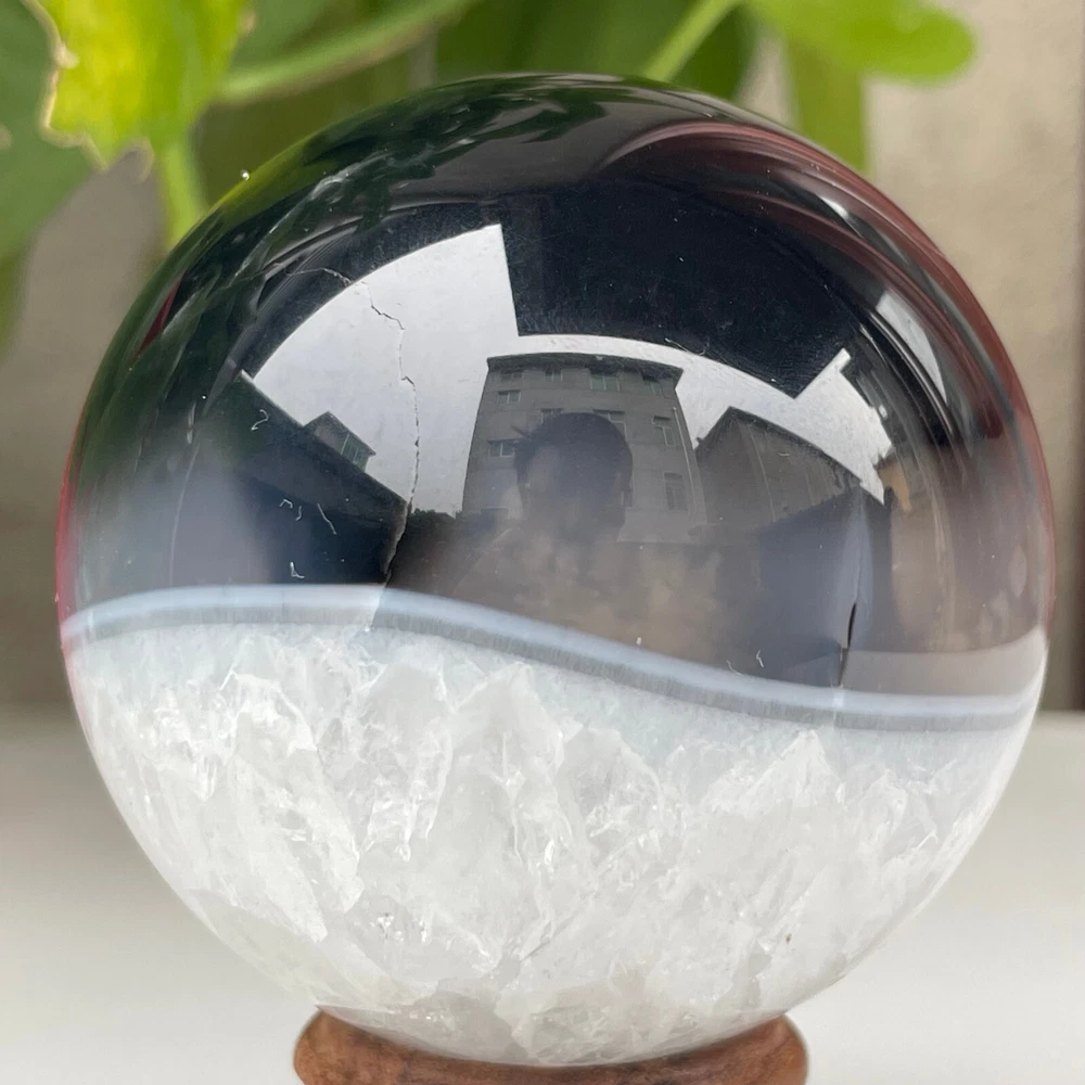 345g Natural Black Agate Ball Quartz Crysta Energy Sphere Reiki healing