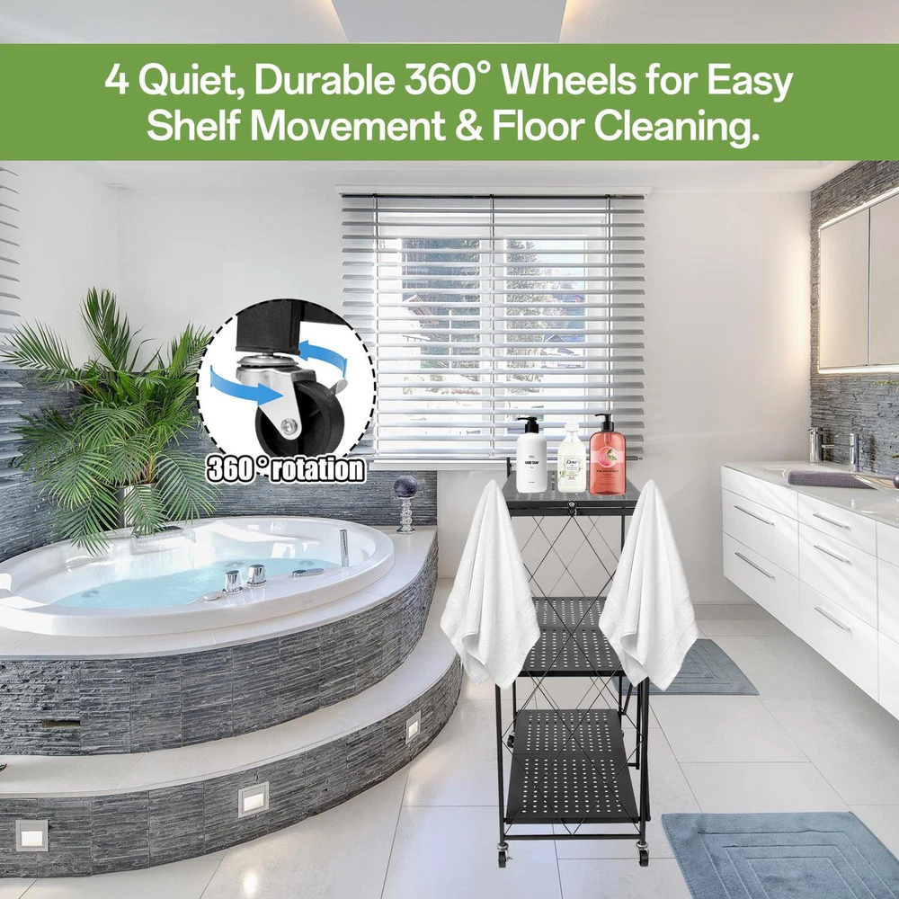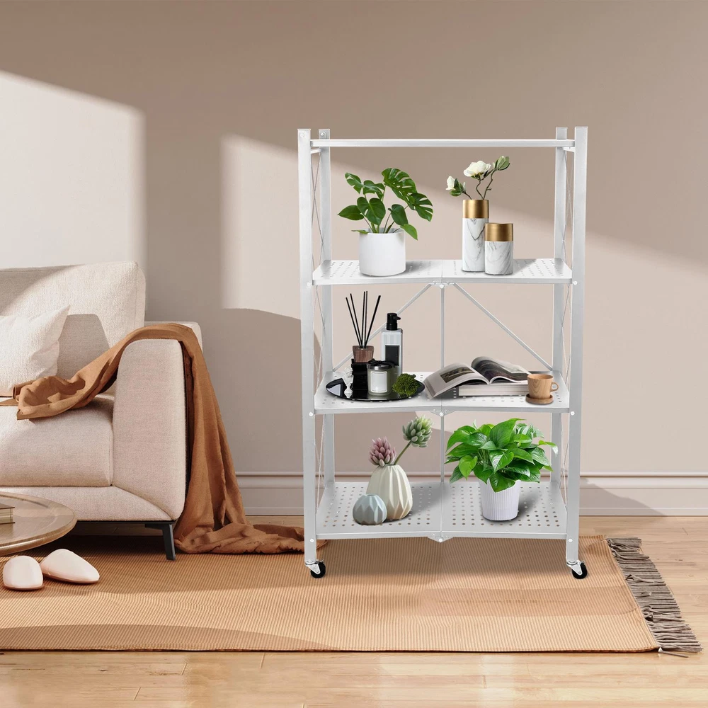 Store category Sign Up Now ! You may also like Product Description Bullet Points: Heavy Duty and Stable: Manufactured with quality materials and reinforced with sturdy joints, our foldable storage shelves can withstand heavy weights without shaking or wobbling Maximize Space Efficiency: Optimize storage space and turn narrow areas into spacious places with foldable storage shelves. Enjoy the charm of instantly doubling your storage space and make the most of every inch to keep your belongings organized Excellent Craftsmanship: Built with thickened material and a special baking process that produces scratch and rust-resistant panels, our foldable storage shelves showcase exquisite craftsmanship that won't easily peel off. Enjoy long-lasting durability and excellent quality Designed with Wheels: Equipped with alloy swivel wheels, the Rolling Shelf can be easily moved and firmly fixed in place with its built-in braking function, ensuring its 360 rotated without damaging the floor or causing slips Extensive Application: Our foldable storage shelves are ideal for organizing all sorts of spaces, from cramped laundry rooms to cluttered garages and pantries. With sturdy metal construction, they're ideal for storing tools and large appliances, so you can clear out more room and get more done. Transform your small space into a storage haven with our portable shelf. Made of high-quality materials and coated with a special baking process for durability, this shelf features alloy swivel wheels for easy maneuverability. Perfect for pantries, turn any narrow area into a spacious place for belongings. Specifications: White folding model Number of layers: 4 layers Material: Carbon steel Total length including wheels: about 71cm/27.95 inches Total width including wheels: about 36cm/14.17 inches Total height including wheels: about 125cm/49.21 inches Shelf: about 69.5x31cm/27.36x12.2 inches Features: Can be folded at any time Packing List: 1* Rolling Utility Shelf Notes: 1. Due to different lighting and screen settings, the item color may be slightly different from the picture. 2. Due to different manual measurements, please allow a 1-2cm difference in size. Payment Delivery details Terms of sales About us Feedback & DSRs Payment Before you palce an order, please kindly make sure that you have a paypal account. We accept PAYPAL payment only. Payment should be completed within 2 days after auction closed, or unpaid dispute will be filed for an closing auction. An unpaid case will be filled after 4 days. Delivery details We ship to your eBay address. Each package will be shipped to US by UPS Regular Parcel with tracking number. Please check your shipping address carefully before checkout, it can't be changed if order completed. All items will be shipped within 1-2 business day upon receipt of payment.Orders placed on weekend will be shipped within 3 days. If you do not receive your item in 7-10 business days.please contact us immediately for further assistance. We will be responsible for any damages or losses incurred in the shipping process. About us We maintain high standards of excellence FIVE STAR and strive for 100% customer satisfaction! Positive Feedback is very important to us. We hope that you contact us immediately Before you give us neutral or negative feedback, so that we can satisfactorily address your concerns. We promise to offer the lowest price and high quality produce. Our working time: From Monday to Friday(9:30 am to 18:00pm), we don't working on holidays ,hope you can understand and know that , thank you. Please always talk to us via ebay Message. We appreciate your business and look forward to growing our e-Bay sales with satisfied customers. Feedback Contact us If you have any questions, please feel free to contact with us by ebay Message during our business hours ( 9:30a.m. to 5:30 p.m.), or email us through eBay, we will try our best to help you to resolve it. For any presale or after-sale questions,please do feel free to email us! Due to the time difference, each email will be replied within 1 working day,and weekend will be delayed a bit. Feedback