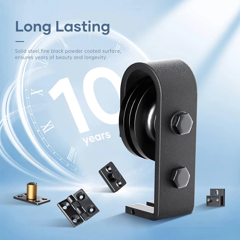 Store category Sign Up Now ! You may also like Product Description Bullet Points: Wide Range of Applications: This Rail Sliding Barn Door provides versatile elegance to your living room, dining room, or study, goodly saving space in various life situations. Its design concept enhances the ambiance of your space, making it perfect for different applications. Effortless Glide & Seal: Equipped with 2x scroll wheels and 3x hinges, our Rail Sliding Barn Door ensures a smooth operation, while the 1x sealing strip provides a warm fit, meeting your needs with sufficient quantity. Reliable Endurance: Crafted from high-quality carbon steel, this sliding barn door rail ensures a wear-resistant, solid, and enduring addition to your space. Install with Ease: Our Rail Sliding Barn Door kit includes detailed instructions and clear pictures to guide you intuitively through the streamlined setup process. Upgrade your space effortlessly with a quick and easy installation. Good Smoothness: Glide with ease on a 6mm thick track with the reliable bearing and nylon wheel combo of this Rail Sliding Barn Door rating for a high carrying capacity. Practical and durable, perfect for all your heavy-duty sliding needs. With 2*roller swivel stands, it slides smoothly on a solid, 6mm thick track. Pictures and text provide a detailed view of this durable, stylish door. Specifications: Colour: Black Material: carbon steel Track size: about 34 inches/86CM Track splicing method: 3 pieces Scope of application: Door panel thickness 0.5-50MM Packing List: 3*track 2*scroll wheel 2*roller swivel stand 1*roller holder 3*spacers 3*hinge 1*floor rail 1*sealing strip 1*screw pack 1*instruction manual 4*pipe clamp 35mm 4* wood screws Payment Delivery details Terms of sales About us Feedback & DSRs Shipping 1. We only ship to United States 2. Delivery Time: Ship from US via FedEx Ground or FedEx Home Delivery 1-5 business days with tracking number. 3. We ship the item out in 24-72 hours after received the payment.(Mon-Fri) 4. If you want to chose another address, please leave us a message on ebay.Please check your shipping address carefully before checkout,it can't be changed if order completed. Seriously promise:Refund or resend will be offered if item still not arrive in 7-10 business days. Just send us an email,we will give you a satisfied solution as soon as possible. Payment 1. We accept PayPal only. 2. After you have won the auction, an email will be sent to your eBay registered email address. 3. If you are paying through Paypal using eCheck, note that your item can be shipped only after eCheck has cleared. 4. All payments are expected within 7 days after the last winning auction is closed. A non-payment dispute will be opened if full payment is not received. 5. We only ship the item to your Paypal address for fast and accurate shipment. If you want to change the address, please add a note when you make the payment. after you have paid. Return & Warranty 1. For your best shopping experience in our store and saving your time .Please Do Not click "Return this item" except that you just don't need it any more.Because no return request is our company's Service. Please click "Contact seller" via Ebay Message(protected by Ebay),that is the fastest way to solve any problem for you.You will get the replacement or refund through the communication between us. 2. We fully guarantee Customers benefit within 14 business days if item DOA (damage on arrival), and please contact us within 30 days from the delivery date to exchange or refund.No need return just contact us. Refunds will be given via paypal only. 3. For malfunction products under warranty period, please contact our customer service via EBay Message. Replacements will be sent once after we have a fully communication.No need return the original one after we have fully communication. 4. The buyer has an obligation to cooperate with seller to verify defective item. If you want return, please double check if the item does not work or you just don't need it any more. If the item defective or no work, no need return. 5. All NON-Seller Mistake returns for refund are subject to 20% re-stocking fee and buyer should pay for the return shipping fee and handle fee.(For example,you brought wrong item or cancelled order after item was shipped). 6. A Merchandise Authorization Number (RMA#) is required for all need returned packages(After we have a fully communication). Please contact us to get an "RMA" number before you ship your items back to us. Items returned without an "RMA" number would be ignored or delayed in processing.Returns/Exchanges will not be accepted unless authorization has been issued by our customer service. 7. All return products should be in original package with all accessories included. Contact US Dear buyers, Welcome to our store! Your satisfaction is our top goal,we appreciate your business. 1. If you have any questions, please feel free to contact with us by ebay Message during our business hours ( 9:30a.m. to 5:30 p.m.), or email us through eBay, we will try our best to help you to resolve it. 2. If you are satisfied with our service, please rate the details of the transaction (Detailed Seller Ratings) on eBay and We will do the same for you. 3. If you are not satisfied with the product or service ,please contact us before leave negative or natural feedback, we will try our best to solve the issue to your satisfaction, thanks. Thanks for your patronizing, good luck !!