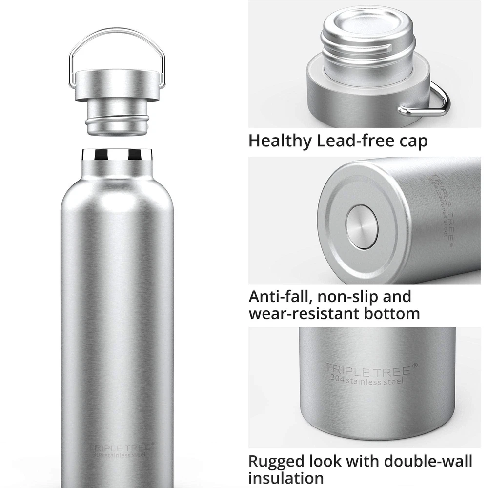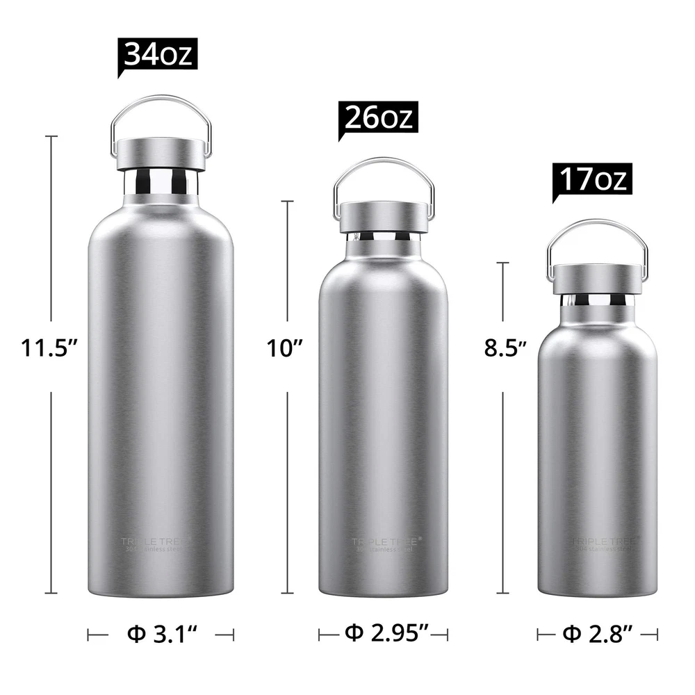 Triple Tree 34OZ Vacuum Insulated Stainless Steel Water Bottle, Double Wall Wide Mouth Lids Keeps beverage Hot or Cold Sweat Proof Premium BPA free Material: TRIPLE TREE stainless steel water bottle is manufactured using durable premium stainless steel BPA free ,Food-grade material.Superior coating is both stylish and tough! Extra protection from scratches and bumps. Vacuum Insulated: Premium double walled vacuum insulated stainless steel water bottle Keep water COLD and HOT for up to 24 hours, Does not "sweat" at all ! Leak Proof - Airtight silicone lid gasket guarantees your bottle will never leak, even in the most rugged situations. Keeping your drink free of odor and unwanted taste. Easy to Carry on : TRIPLE TREE stainless steel water bottle with large handle easy to carry on . It is ergonomically shaped to make one-handed use a breeze,Very stylish and convenient. Perfect for the gym, office and outdoor activities-Hiking, Mountain Climbing, Camping. Easy Ice Filling: Large mouth opening water bottle provides easy ICE FILLING, drinking and carrying Double Walled Vacuum Insulation Say goodbye to hot summers and cold winters, enjoy your drinks at an ideal temperature. Innovative double walled vacuum insulation allows drinks stay cold and hot for up to 24 hours. Even filled with ice or boiling water, this bottle will never sweat or get hot to the touch! Triple Tree sports water bottle is made of 18/8(304) high quality stainless steel. Food-grade stainless steel is used in the food, brewing and wine-making industries so it does not rust, corrode, retain or impart a taste. No matter how many times you refill it, and no matter what you put into it, this bottle will keep your drink fresh, crisp and clean tasting. Designed with a carrying handle for convenient transport. Perfect size to hold and fit most cup holders in car or bike. SHIPPING - We offer FREE shipping on all orders! - We ship within 3 business days of payment, usually sooner - We use a selection of shipping services such as UPS, FedEx, USPS etc - We only ship to the lower 48 states, no APO/FPO addresses or PO Boxes allowed International buyers – please note: Import duties, taxes, and charges aren't included in the item price or postage cost. These charges are the buyer's responsibility. - Please check with your country's customs office to determine what these additional costs will be prior to bidding or buying. - We have confidence in our products, but if you are not fully satisfied please contact us within 30 days of purchase and you will get full refund. * Order Cancellation Policy ** You can return a product for up to 30 days from the date you purchased it. 1. The seller reserves the right to cancel the special case only due to eBay cancellation fee. 2. The decision of seller is the final. 3. The seller will respond to the cancellation request within 2 business days. Please wait for the result of cancellation. 4. In case the cancellation is not completed by some reasons, the buyer can follow the options below to get the refund. 4.1 The buyer can reject the item when it arrives. 4.2 The buyer can send the item back to the seller within 30 days If the buyer receives item (USA Shipment ONLY). The seller will provide the FREE return label to the buyer when the buyer opens " Return Item" case on eBay by using the reason as "Change my mind" ONLY. 5. When buyer has placed the order. The order will be processed and completed by automatic warehouse system within 5 minutes. In case that buyer sends the cancellation request after 5 minutes of placing the order, the request will be rejected. **Sending direct message to cancel the order is not allowed for every case.* Return Policy For the return case - If buyer would like to return the items for refund or replacement, please CONTACT SELLER to receive the free return label from seller. The refund or replacement will be processed with the tracking number of return label which is provided by seller only. The other ways of return which are not approved by seller will not be processed for the refund or replacement. CUSTOMER SERVICE - We try our best to make sure every customer is completely satisfied. - If there's a problem, feel free to message us! - We're happy to help.
