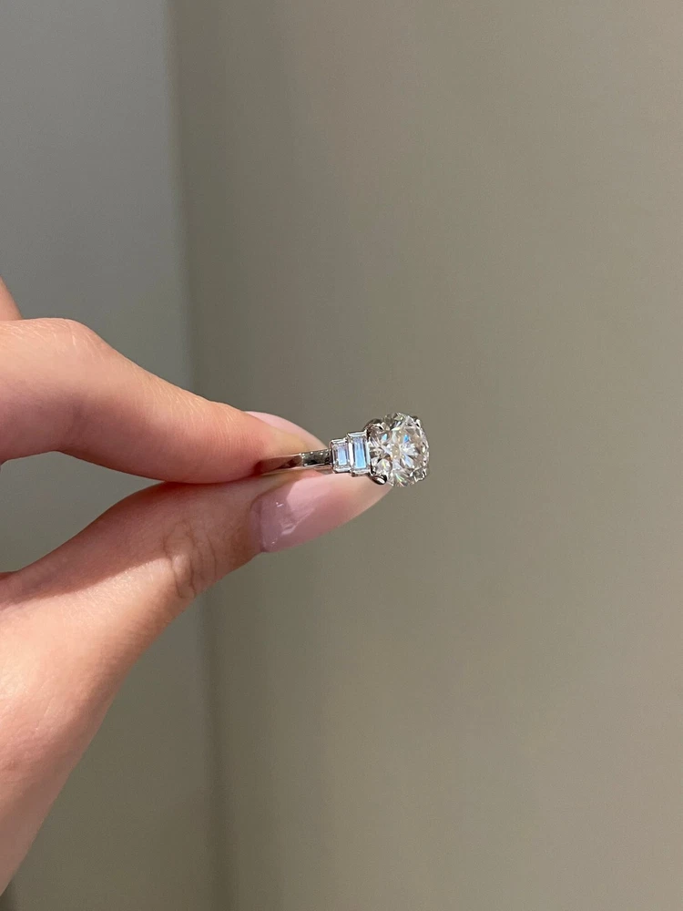 This stunning moissanite ring is absolutely breathtaking! The 3.5 carat round and baguette stones sparkle brilliantly, and the sterling silver setting adds a luxurious touch. The craftsmanship is top-notch, and it comes beautifully packaged in a gift boxβperfect for a special someone. The moissanite diamonds shine with incredible clarity, making it look even more expensive than it is. Fast shipping and free delivery are a huge plus. A gorgeous piece that feels high-end without the hefty price tagβdefinitely a winner!