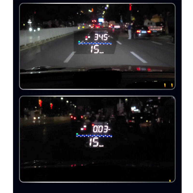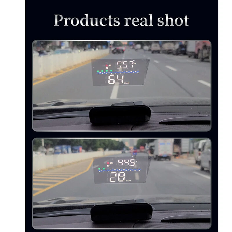 Description HUD Specifications: working voltage DC5V Working current 40mA sleeping current 15mA Speed range 0-400KM Real time precision The same as satellite Satellite positioning time Cold start: 30s, hot start: 1s HUD size 90*55*30mm 12V car charger 1000mA HUD weight 160g HUD Main Functions&Features: Available for any car, easy to install, plug and play Screen 3.5 inch HD display Multi-color design makes the screen more abundant and easier to read Nano-technology to eliminate double reflections,more clear. Rich Contents: speed,compass, speed alarm,free switch between km and miles Auto power on/off: HUD start and off with vehicle started and shutdown, effective protection of the car battery;retaining the manual switch mode,more easy to control HUD. Automatic and manual brightness adjustment mode,driving without glare. Methods of pasting the film: Spray some water on the place that the film will be pasted on,and then use a dry cloth to clean it; Take off the back side(marked 1) of reflection film,then paste it to the window glass. After you have adjusted the location, you can use a scratch board or something else flat to slick the film and squeeze the water inside out until there is no bubble or water in it. Take off the protection film (marked 2) of the reflection film. If the film cannot display the whole information, please adjust the non-slip mat to move the position. Solution for Common Problems Feature: HUD screen without any display,and no power Check the car charger cable if it is tight, pull down repeatedly inserted multiple times, check the HUD switch if it powers on. If there still no display please try another car to test and analyze whether the car cigarette lighter interface is bad, if it is a bad cigarette lighter, please try to connect the cable line to the car battery. No speed ,auto powers off after 5 minutes. The default auto powers off time is 5 minutes, if there is no speed, HUD will power off after 5 minutes,it built-in vibration switch, as long as there is a slight vibration it will powers on. Inaccurate Speed When HUD is power on,vertical press the wave button 5 seconds to enter into the menu options, here menu options shows 0,parameter shows 107,up or down the wave button to increase or decrease the value according to the difference until it shows correct one.After adjustment, vertical press in 5 seconds to save it. HUD see not clearly under the sunlight. Check whether the HUD host protective film is torn,and please stick the reflection film on the windscreen. wrong operation lead to crashes. Or inaccurate datas Do a reset setting. Package Included: 1 x HUD host 1 x charger 1 x non-slip pad 1 x reflective film 1 x manual