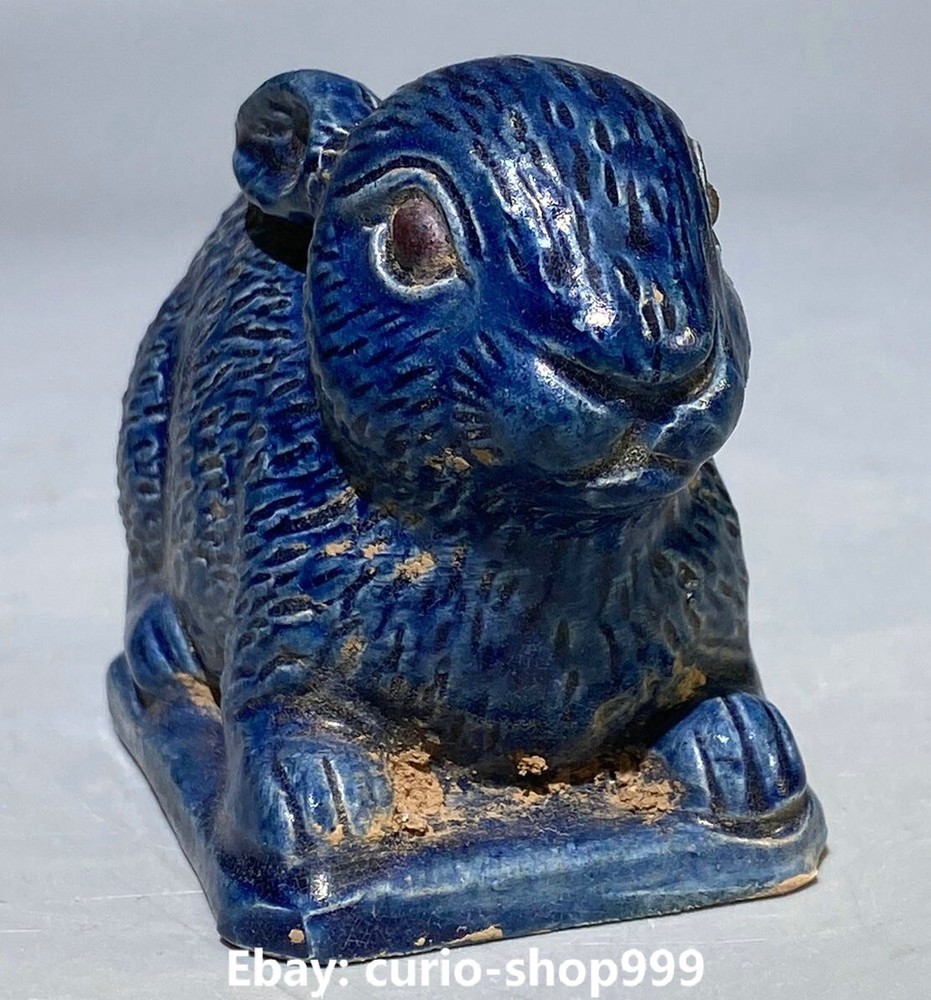 Seller Notes: “3.5" Old Blue Glaze Porcelain Fengshui Zodiac Year Rabbit Hare Animal Statue” Primary Material: Blue Glaze Porcelain Region of Origin: China