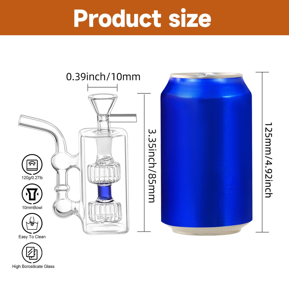4-Inch Double Portable Glass Bong with 10mm Bowl for Smoking