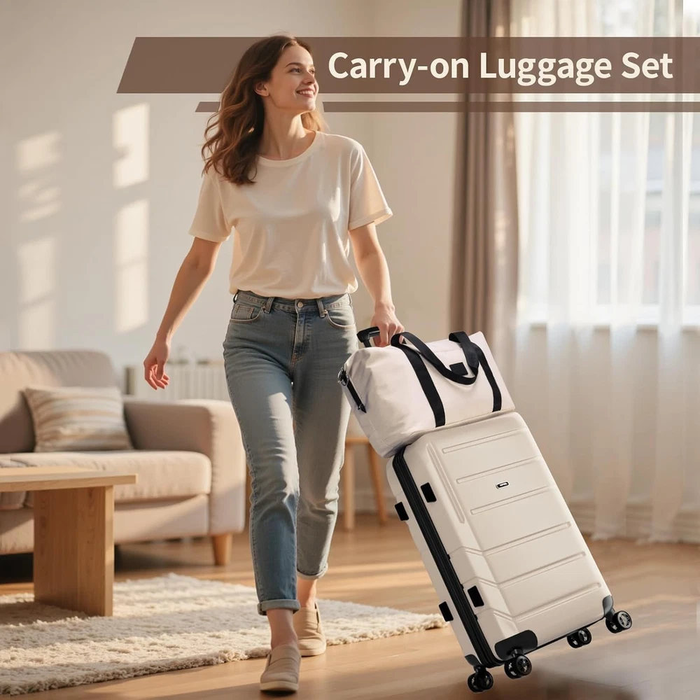 3/5 Piece Luggage Set ABS+PC Hardshell Carry on Suitcase w/Spinner Wheels & TSA]