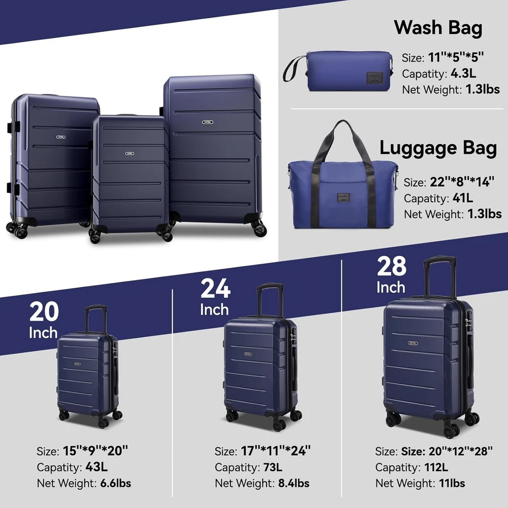 Description Unisex Adult All-Iron Trolley Case, Silent Universal Wheels, External Customs (TSA Lock) - Expandable 5 Piece(20/24/28/DB/TB) 🎁 Features [Multi-functional 5-Piece Travel Set] 5 piece luggage set features three expandable suitcases (20 inch carry-on, 24 inch and 28 inch checked luggage), each with 20% expansion capacity. Complete with a matching travel bag and toiletry bag, it's perfect for any journey. TSA-approved locks ensure secure travel and hassle-free security checks. [360° Spinner Wheels] Featuring multi-directional silent double wheels that rotate 360°, the spinner luggage set glides smoothly across various surfaces including slopes, cobblestones, and grass. The effortless maneuverability reduces physical strain, making it perfect for both business trips and leisure travel. [Adjustable Handle System] 3-step telescoping handle features a PC-reinforced grip for comfort and durability. Convenient handles on top and sides offer multiple carrying options, while four sturdy side feet keep thehard case suitcase stable when upright or sideways, protecting the shell from damage. The ergonomic design ensures easy handling throughout your journey. [Premium Materials] Crafted from durable ABS+PC material with a scratch-resistant textured surface, this hardcase luggage with spinner wheels maintains its elegant appearance over time. The spacious interior features partitions for efficient organization. Both the travel bag and toiletry bag are made of water-resistant, high-quality polyester fabric. [Quality Assurance] Our suitcase set has passed rigorous drop tests, ensuring excellent impact resistance. All components including the trolley handle, carrying handles, wheels, and straps are replaceable if damaged. Please don't hesitate to contact us with any questions or concerns about your product. 20/24/28" Hard Shell Luggage Set 1 . We accept PayPal only. 2 . Payment should be completed within 4 (Four) days of auction closing. Or unpaid dispute will be filed for closing auction. 3 . Sales Tax of 9% will be applied for orders shipped within the state of California 4 . We will leave a positive feedback immediately after payment is received. We appreciate a positive feedback as much as you do. If for some reason there is any issue with the purchase, please contact us prior to leaving feedback, and we will be glad to work with you to have it resolved. Shipping 1 . We Ship to United States ONLY. 2 . Ship from two warehouses and only to eBay ADDRESS. Package handling only takes 1 business day at our warehouse, so please make sure entering correct payment and shipping information before checking out. Once your payment is completed, pls leave ebay note if the changes are needed before we send the product. 3 . Truck company: 3-8 business days. | USPS: 2-6 business days. | UPS/FEDEX: 3-5 business days. 4 . Lccal pick up is available. Warranty and Guarantee 1 . All of our items come with a 30-day return policy. We ensure all our items are new and in excellent condition prior to shipping. In the event that you receive the item that is not to the standards above, please contact us via e-Bay messages. All returns must be in new original condition as received and should be shipped with delivery confirmation 2 . We ONLY accept the return for original package. Please make sure that item has NO man-made sabotage. Used items will not be accepted for return. 3 . We reserve the right to refuse any returns for objective reasons. 4 . All NON-seller mistake returns for refund are subject to 20% re-stocking fee and buyer should pay for the round-trip shipping fee. (E.g. you bought wrong model or wrong color). Feadback 1 .Any problem after receiving our goods,please contact us before leaving Neutral/Negative feedback.We promise to help you solve it asap,and make you feel satisfactory absolutely. 2 . Please DO NOT leave negative feedback without asking for help. Please do not leave negative or neutral feedback if you haven't received item in 30 days, because we have mentioned the shipping time repeatedly.