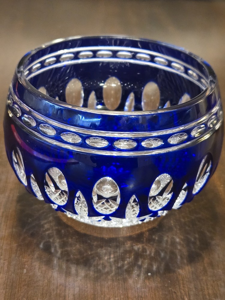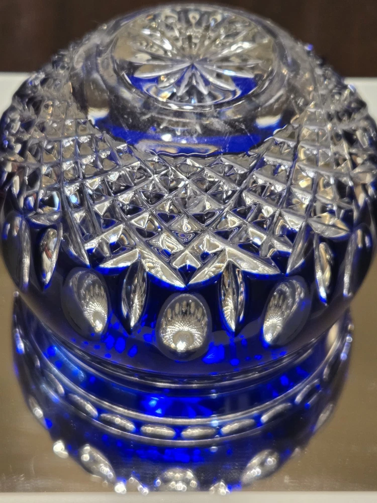 This Votive Bowl candleholder in Clarendon Cobalt Blue by Waterford Crystal is a beautiful and elegant piece. Made of cut crystal with a glossy finish, this votive features a geometric design and is perfect for adding a touch of artistry to your home decor. Its round shape and vibrant blue color make it a stunning addition to any table setting or as a centerpiece for special events. This exquisite Waterford Crystal piece will illuminate your home with elegance.