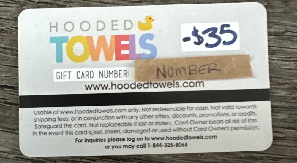 $35 gift card valid at hoodedtowels.com. Free shipping with tracking!