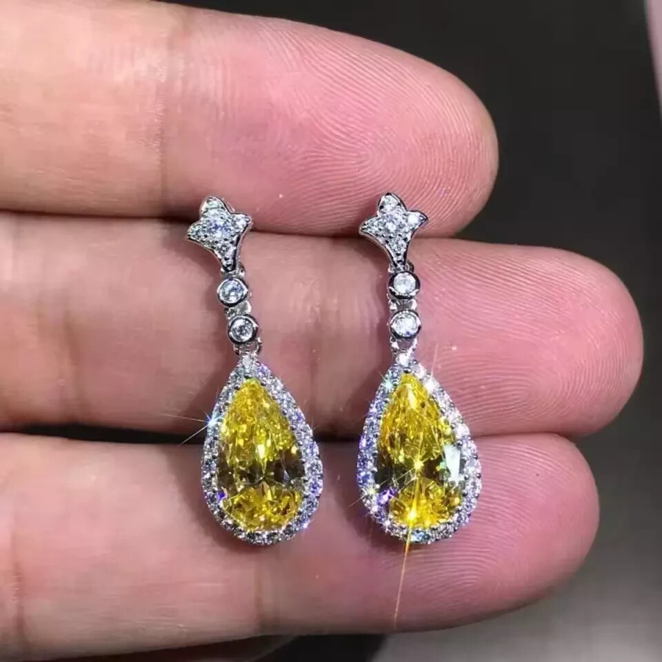 Metal Purity: 925 Secondary Stone: Moissanite Metal: Sterling Silver Material: Stone Number of Gemstones: As Per Image Cut Grade: Excellent Item Length: As Per Image Brand: Omsai Jewels Setting Style: Prong Vintage: No Theme: Beauty Diamond Color Grade: D Main Stone Color: Yellow Antique: No Main Stone: Citrine Handmade: Yes Wholesale: Yes Number of Diamonds: As Per Image Shape: Teardrop Country of Origin: Unknown Main Stone Treatment: Not Enhanced Certification: No Diamond Clarity Grade: Very, Very Slightly Included (VVS1) Type: Earrings Signed: No Personalize: Yes Color: White Occasion: Anniversary, Birthday, Christening, Christmas, Confirmation/Communion, Engagement, Father's Day, Graduation, Mother's Day, Valentine's Day, Wedding Main Stone Shape: Pear Country/Region of Manufacture: Unknown Gemstone Clarity Grade: Eye Clean Style: Dangle/Drop Seller Warranty: Yes 30 Days Ear Area: Lobe Customized: Yes Main Stone Creation: Lab-Created Base Metal: Sterling Silver Closure: Push Back Colored Diamond Intensity: Fancy Features: Adjustable, Engraved Total Carat Weight: 3.50Ct