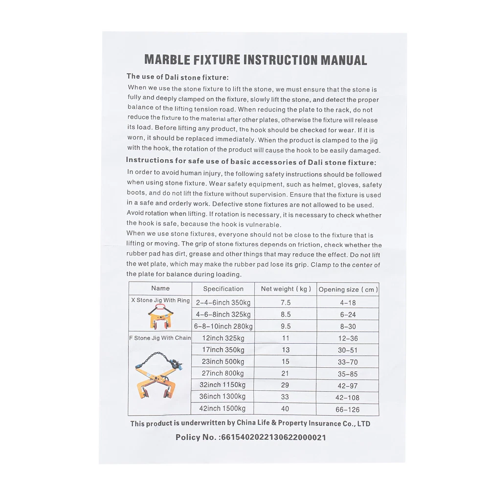 350KG Industrial Vertical Plate Lifting Clamp Steel Heavy Duty Lifting Pliers US DESCRIPTION: Lifting Clamps, Lifting Pliers Vertical Steel Plate Clamp of Glass Slabs/Metal Sheet/Granite Island, Roadside Stone Clamp Curb Specification Material: Alloy Steel, Manganese Steel, Polyurethane Rubber Color: Red Model: XYT-F Assembly Required: No Style: Modern Number of Pieces: 1 Max Pulling Capacity: 350kg/771.6 lbs Chuck Opening: 30-51cm/11.81-20.08inch Net Weight: 12kg/26.46 lbs Gross Weight: 13kg/28.66 lbs Package Size: 63*23*28cm/24.8*9.06*11.02in Description Our chain-type clamp is a special tool for heavy stone transportation. The chain structure makes it more stable and powerful, and the high-quality alloy steel makes it very strong and durable, so it will be a good assistant for your work if you are engaged in the construction industry. Key Features Sturdy and Durable: It is forged from high-quality alloy steel and manganese steel, which is corrosion resistant , rust-proof , maintains long-term brightness and performance, and has a long service life. High Efficiency: The scissor design increases the grip as the applied pulling force increases and allows a wider jaw opening, so this pallet puller clamp can complete the operation of clamping stone in a short time, which helps to improve your work efficiency. It is excellent for reaching the pallets pushed to the back where forks can’t get to. Adjustable Opening: Its opening can be adjusted at 11.81-20.08inch, so it can also adapt to different sizes of stone to meet your diversified needs. Stable and Reliable: Its solid chucks and chain structure cooperate with each other, making this item lift up to 771.6 lbs lbs of stone and bear high-strength stone clamping work. High Visibility: Its distinctive and bright yellow can be easily seen at a glance, whether in a factory or on a construction site so that it will not be confused with other machines. Easy to Clean: Because of its simple structure and smooth surface, you can clean it up easily with a wet rag and water. Protective Packaging: The bubble bag can better protect your product during transportation, thereby maximizing its complete delivery to you. Installation-free : Our product is already installed, so you don't have to do the additional installation when you get it, which is time-saving. The additional chain allows you to hang the product on an excavator or other machine. Customer Service: We aim to provide quality products and services. If you have problems, please feel free to contact us. We will reply and solve the problem for you as soon as possible. Details Anti-slip Chuck: The rubber chuck with textures prevents slipping and effectively protects the surface of the stone from scratches. Thickened Nuts: The thickened self-locking nuts play a role in stopping loosening, and can be casually changed and adjusted for easier use, which is more convenient and fast. Spring: The spring can play a buffering role when it clamps stones, increasing its stability. Application It can be widely used in electric power, ship, automobile, aviation, construction, highway, bridge, metallurgy, mine, slope tunnel, and other infrastructure construction projects for lifting timber, boards, wooden pallets, etc. Package Included 1* Pallet Puller Clamp 1* English Instruction Notes Due to the heavy weight of the product, please be careful not to pinch your fingers or hit your feet when you use it, and please wear gloves(not included) when working. Please allow the slight color difference caused by the shooting light and 1-3cm error due to manual measurement, and make sure you do not mind before ordering. ↓↓↓↓↓↓ Payment Delivery details Terms of sales About us Contact us Payment We accept ebay payment 。 Fees such as import duties, taxes are not included in the item price or shipping costs. These charges are the buyer's responsibility. Delivery details Shipping: 2-9 working days to: USA Terms of sales We maintain high standards of excellence and strive for hundred percent customer satisfaction. Feedback is very important to us. We hope that you contact us immediately before you give neutral or negative feedback, so that we can address your concerns. It is impossible to address issues if we do not know about them! About us Your satis faction is our ultimate goal. We work hard to earn your trust and future business. Our certified technicians have tested each item before shipping. The unit comes with 1 year limited warranty on all manufacturing defects. a) If you receive a defective item, you may return it or ask for a discount. Please contact us within 14 days after you receive the package. b) What you returned must be intact and in its original packaging as re? u. Customer is responsible for shipping costs of the returned item. c) We will cover the cost of shipping back t with the shipping rate indicated in the registration page. We will send you a new unit or refund the full payment you paid. Thank you. Contact us Business Hour Business Hour: Monday To Friday: 8:30 AM to 5:00 PM (Beijing China time) Due to time zones, our reply to your questions may not be immediately. But within above working time, we will reply your email within 24 hours. If it's non-workdays, please kindly be patient and wait till Monday. Please contact us with ebay message. Please feel free to contact us if you have any questions. Monday To Friday: 8:30 AM to 5:00 PM (Beijing China time) Due to time zones, our reply to your questions may not be immediately. But within above working time, we will reply your email within 24 hours. If it's non-workdays, please kindly be patient and wait till Monday. Please contact us with ebay message. Please feel free to contact us if you have any questions. Warranty 5 Years Manufacturer Warranty 10 Years Herstellergarantie 10 Jahre 🔥Feature🔥 🔥High Performance🔥Reliable Quality🔥Good Stability🔥 Country/Region of Manufacture Unknown --Service-- Any problem, please contact the 