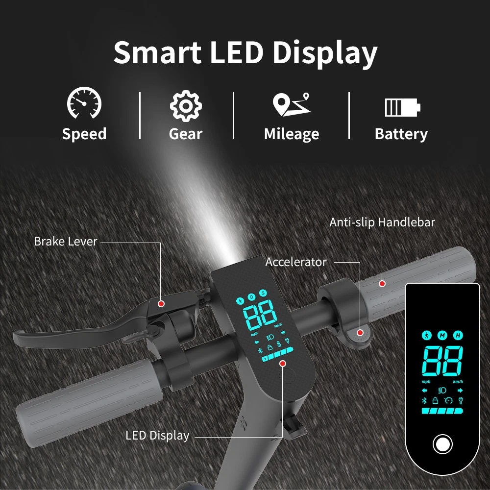This electric scooter is a game-changer for commuters! The 350W motor delivers smooth, powerful rides, while the 30KM range means no more range anxiety. The smart dashboard keeps everything clear—speed, battery, lights—so you're always in control. Love the waterproof feature for unexpected drizzles, and the folding design makes it super portable. Perfect for city travel—light, fast, and reliable!