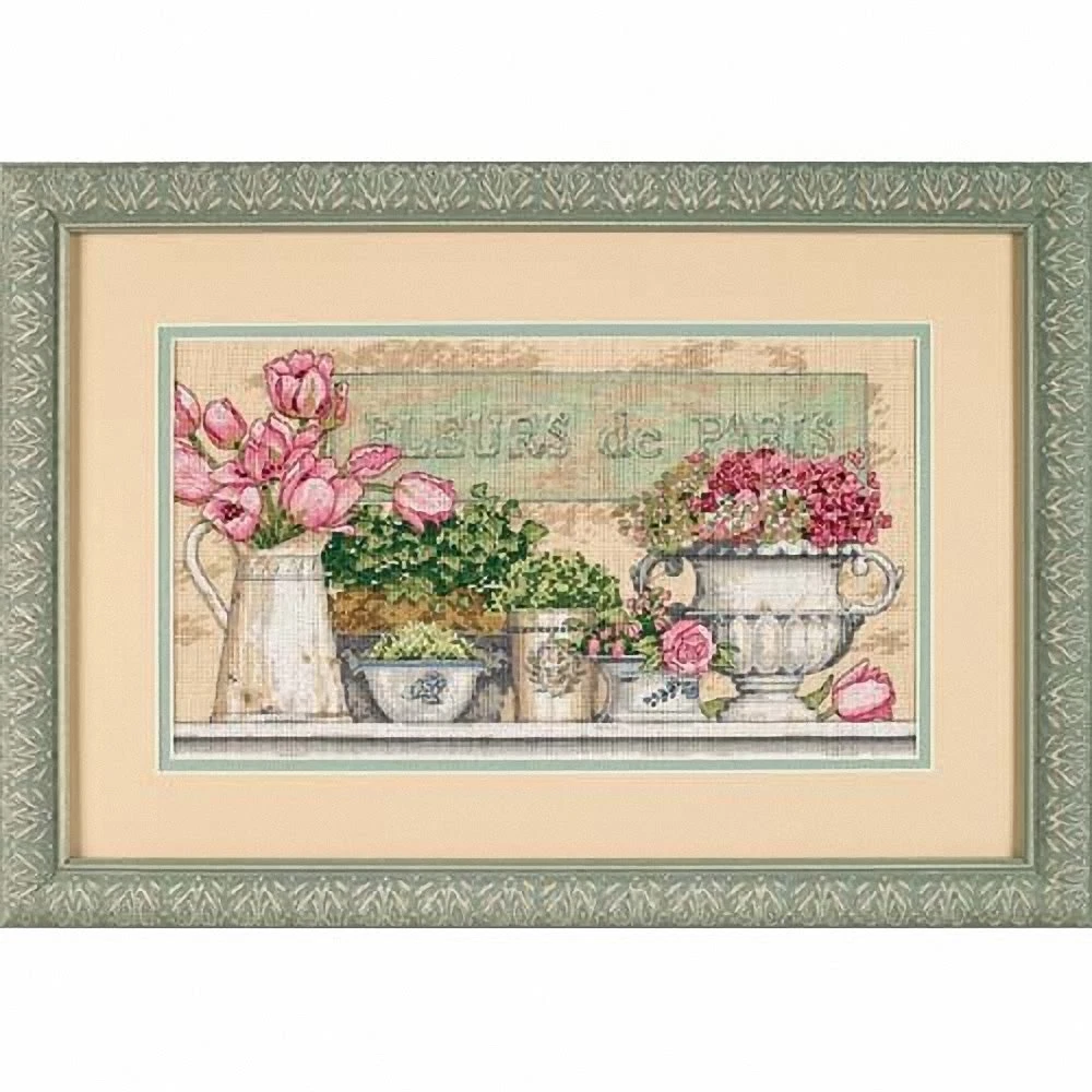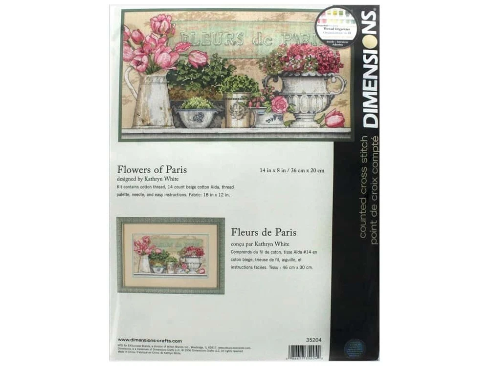 35204 'Flowers of Paris' Counted Cross Stitch Kit, Beige Aida, 14" x 8", By t...