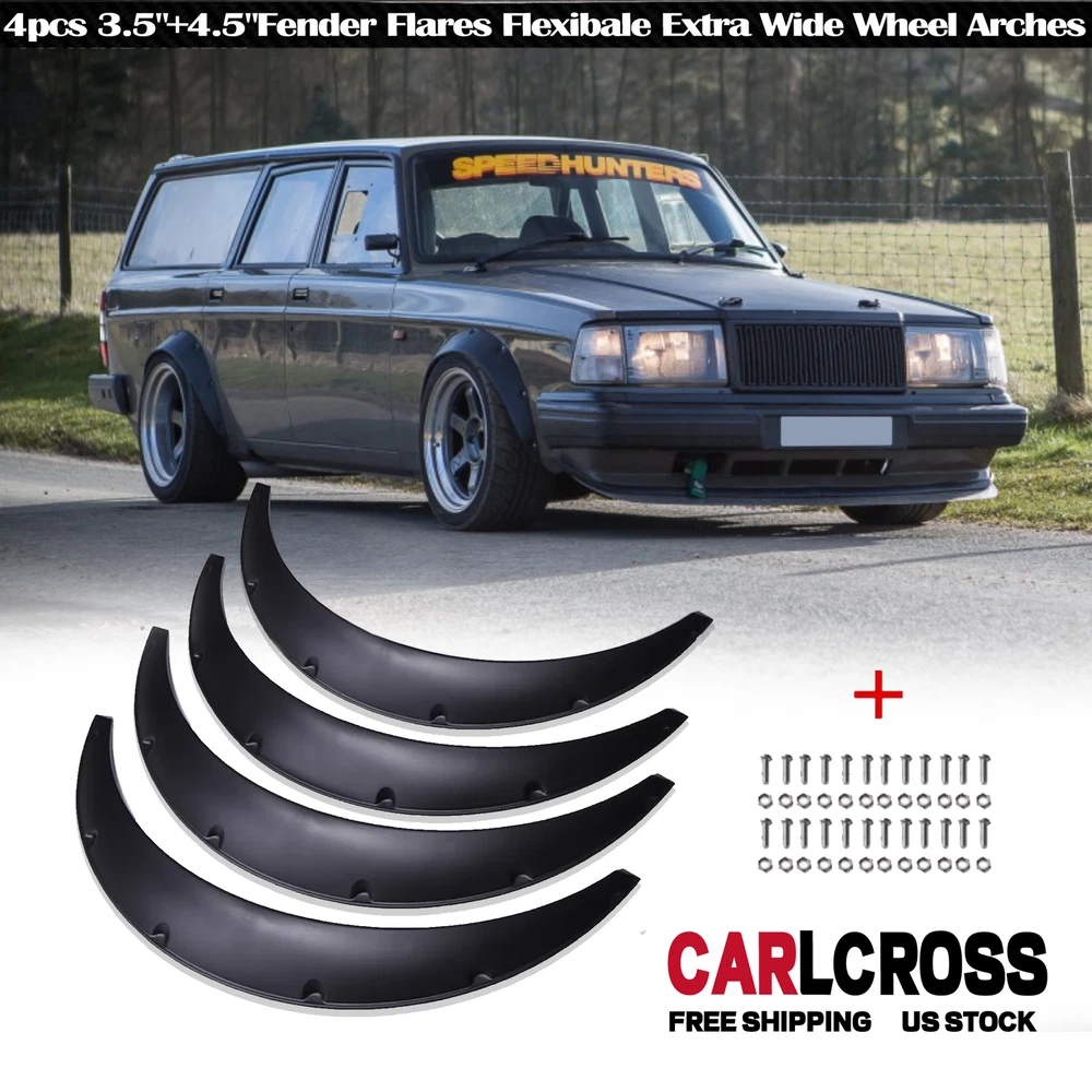 4pcs 3.5"+4.5"Fender Flares Flexibale Extra Wide Wheel Arches For Universal Car Description: Flexible to Resist Cracking High quality injection moulding fender flares with smooth and precise edge cutting finish. Additional Coverage for Larger Tire and Wheel Packages Can Improve Appearance and Styling Dramatically Paintable for Matching with Vehicles' Color. 1 Set of 4 Universal style fender flares Flexible Yet Durable Polyurethane. Protects wheel from mud, scratches, sand and other outer damage. Size: 4pcs include 2Sizes: 2pcs: 91*85*34.5*24cm 2pcs: 81.5*74*30.5*23cm Installation: fender flares installation is normally done in 3 ways: riveted / bolted / sealant silicone. May not fit if other accessories are installed which may get in the way of the Fender Flares (i.e. mudflaps, body molding, ground effects, etc.) This is a general-purpose product. When install it on some models, cutting or trimming needed; or heat gun or hair dryer to help mold the fender flares to your car specifications. Professional installation is highly recommended Package Included: 1 Set of 4 Universal style fender flares 24X Screws Payment: We accept PayPal Only. All payments must be completed within 7 days. Shipping: We do everything we can to ship your orders out as soon as possible. Basically orders are shipped out in 2-4 business day. Terms of Sale: Defective products can be exchanged or returned for full price refund within 30 days after you receive the item.Any returning or exchanging item must be in sound condition and we do not accept any used or worn product. About Us: We are always working hard for maintain high standards of excellence,Please feel free to contact us if you need it,thx. On Jan 16, 2025 at 05:14:48 PST, seller added the following information: