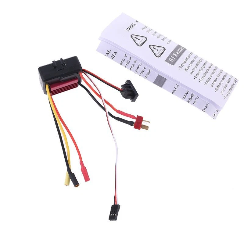 Features: 1. Water- proof and for all-weather races; (Note: please uninstall the cooling fan before using this in water and dry it soon after the use for avoiding the connectors get rusty.) 2. Specially designed for car with excellent start-up, acceleration and linearity features. 3. for sensorless brushless motor. 4. The strong current capability, excellent heat dissipation. 5. Multiple for features: Low cut-off for for litium or /Over-heat protectionThrote loss for / Motor blocked for 6. Easily programmed and for pocket-sized program card. Specification: Name: 35A Cont.Current/Burst Current: 35A/120A Motor Type: Sensorless Brushless Motor for 2S Lipo or 6 cells NiMH 1. on-road: 28XX-Size or smaller motor with the KV<6000KV 2. off-road Monster 28XX-size or smaller motor with the KV <4000KV for 3S Lipo or 9 cells NiMH 1. on-road: 28XX-Size or smaller motor with the KV<4000KV 2. off-road Monster 28XX-size or smaller motor with the KV <3000KV Suitable Car: 1/16 1/14 Car Resistance: 0.0004ohm 2-3S Lipo/4-9Cells NiMH BEC Output: 5.0V/2A(analog Dimensions/Weight: 40x31x17mm/44g Package Included: 1 x 35A 1 x English Manual This is Electronic Speed Controller for car. High power system for model is very so please read this manual carefully. Since we can'for t control over the correct use, installation, application, or maintenance of our products, we'veno liability shall be assumed nor accepted for any damages, losses or costs resulting from the use of the product. Any claimsarising from the operating, failure of malfunctioning will be denied. We assume no liability for injury,consequential damages resulting from our product or our workmanship.