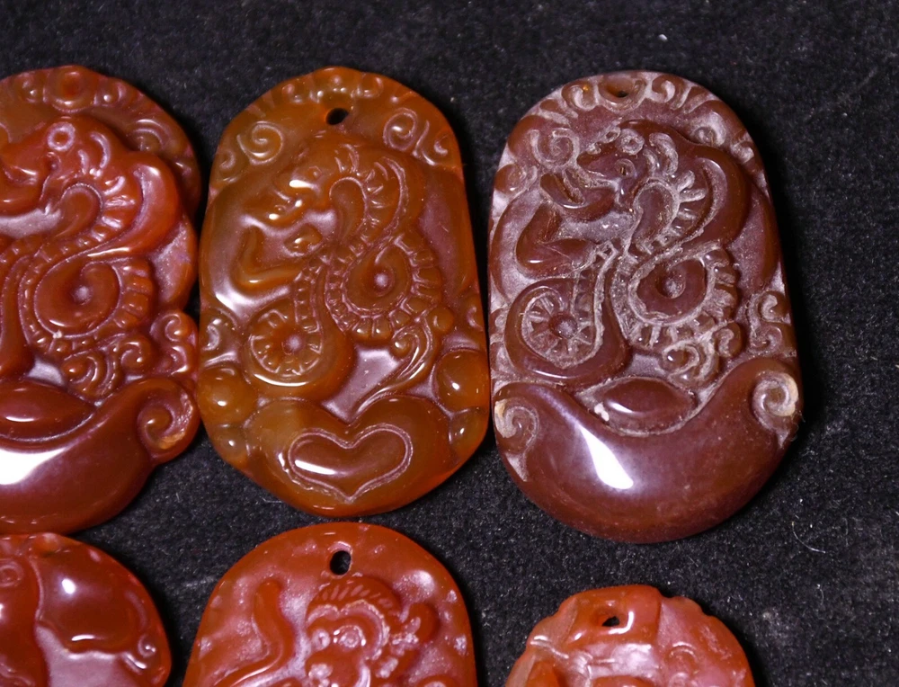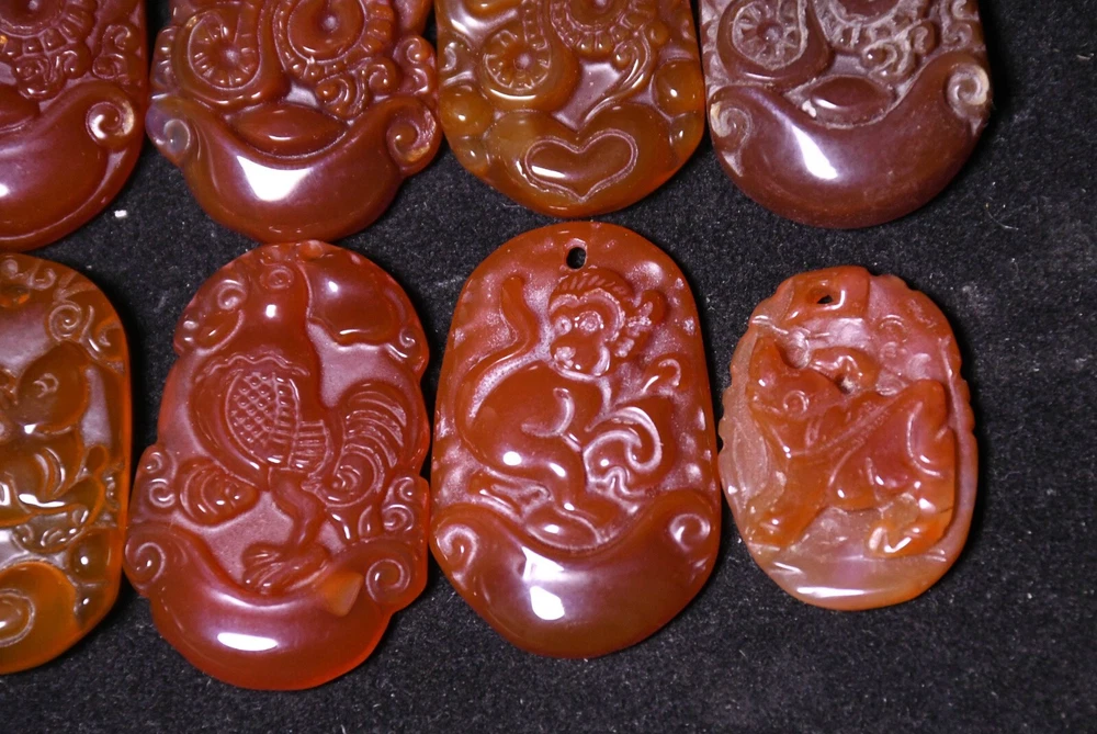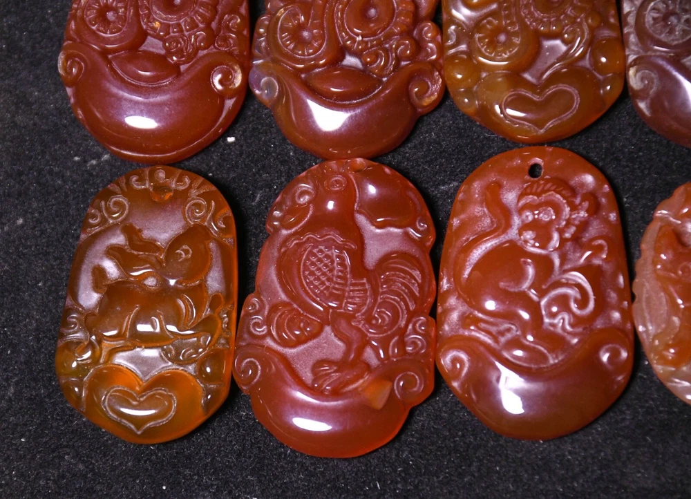 Primary Material: Agate Onyx Maker: Size: Height 3.5 CM.Long 2.5 CM. breadth 0.5 CM Region of Origin: China Seller Notes: “3.5CM China Agate Onyx Dragon Rabbit Chicken Monkey Pig Beast Amulet Pendant Set”