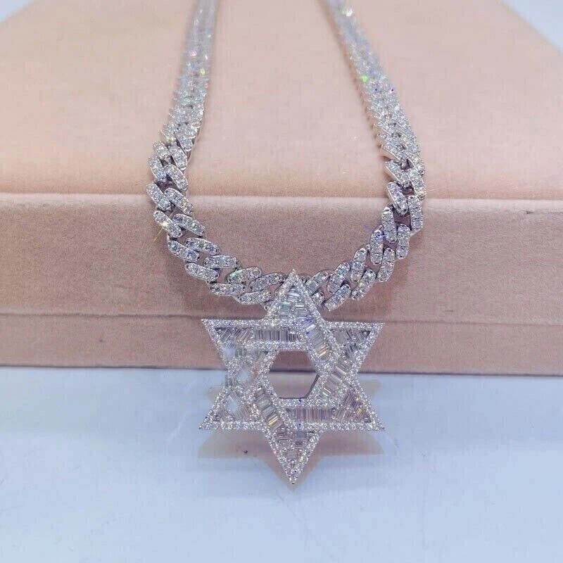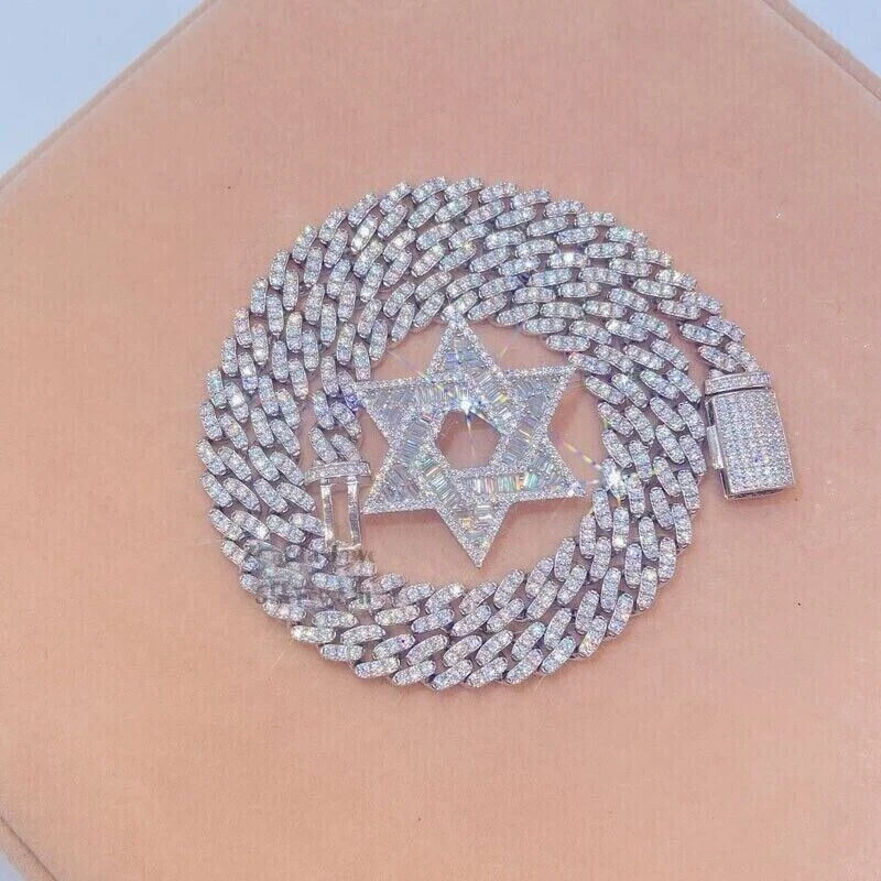 Main Stone Treatment: Clarity Enhanced Base Metal: Fine Silver Department: Men Pendant/Locket Type: Charm Certification: N/A Metal Purity: 925 Customized: Yes Country/Region of Manufacture: India Number of Diamonds: N/A Main Stone: Diamond Type: Necklace Style: Chain, Choker Wholesale: Yes Handmade: Yes Material: Metal Main Stone Color: White Pendant Shape: Cuban Signed: Yes Personalization Instructions: We offer lengths ranging from 14 to 26 inches, including all middle sizes. Brand: horizonstarjewel Diamond Clarity Grade: Very, Very Slightly Included (VVS1) Theme: Angels, Art, Awareness, Beach, Beauty, Biker, Birds, Colleges & Universities, Fairytale & Fantasy, Family & Friends, Fashion & Costumes, Hip Hop, Love, Luck, Magic, Music & Dance, Nature, Sea Life, Sports, Travel & Places Number of Gemstones: Multi Chain Type: Cuban Link Main Stone Shape: Round & Bagguate Color: White Metal: Sterling Silver Necklace Length: 22 in Occasion: Anniversary, Birthday, Christening, Christmas, Confirmation/Communion, Engagement, Father's Day, Graduation, Mother's Day, Valentine's Day, Wedding Closure: Box Diamond Color Grade: D Country of Origin: India Total Carat Weight: 35Ctw Secondary Stone: N/A Cut Grade: Excellent Main Stone Creation: Lab Created Personalize: Yes Setting Style: Prong Colored Diamond Intensity: Fancy Intense