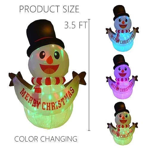 30 Days Return Policy Fast Delivery Trusted seller 3.5Ft Christmas Outdoor Decoration, Christmas Inflatables Blow Up Snowman Broke Out from Window with Built-in LED Lights, for Indoor Outside Holiday Garden Lawn Home Xmas Decor Product Description 3.5 FT CUTE INFLATABLE SNOWMAN BROKE OUT FROM WINDOW: Distinctive Christmas Snowman design featuring a cute hat and a red scarf, holding a flag :” MERRY CHRISTMAS ”. Included Christmas inflatable, screw sucker, fastened tether, a plug and built-in fan. BUILT-IN LED LIGHTS: The Christmas inflatable adornments feature built-in, ultra-bright LED lights, providing a stunning night-time display that draws the attention of neighbors and visitors.Use it on your front yard, it lights up pretty brightly at night for your Christmas party. EXCELLENT QUALITY: The Christmas inflatable Santa Snowman is composed of top-grade, waterproof polyester, with superior stitching adding to its longevity. The 3.5 FT Christmas Santa Snowman inflatable is a suitable and convenient size for your yard. EASY TO SET UP:The Christmas inflatable Santa Snowman will self inflates within minutes after plugging in. The bottom zipper helps deflate, and convenient to fold for storage. EXCELLENT CHRISTMAS ORNAMENTS: Good for decorating windows, haunted houses, Christmas parties, and outdoor yards. These decorations further enhance the eerie and chilling aura of your home. Shipping Returns Payment Shipping Shipping is FREE to all addresses other than APO/PO boxes in the lower 48 states. All our stock ships from US-based warehouses. Shipped via USPS or UPS (depending on location and package weight) Unless stated otherwise, all orders will ship within 24-72 hours of your payment being processed. Check our feedback to see the great reviews of FAST shipping we offer. Returns As our valued customer, we will do our best to make sure the product you receive arrives to you on time and as expected. If you are not satisfied with your purchase, please contact us within 30 days of receiving your order to process a return. Payment We currently accept payment via eBay managed payments only. Once payment is cleared, we will dispatch your shipment within 1-3 business days. Please refer to the "Shipping" tab for more information regarding shipping speed to your destination.
