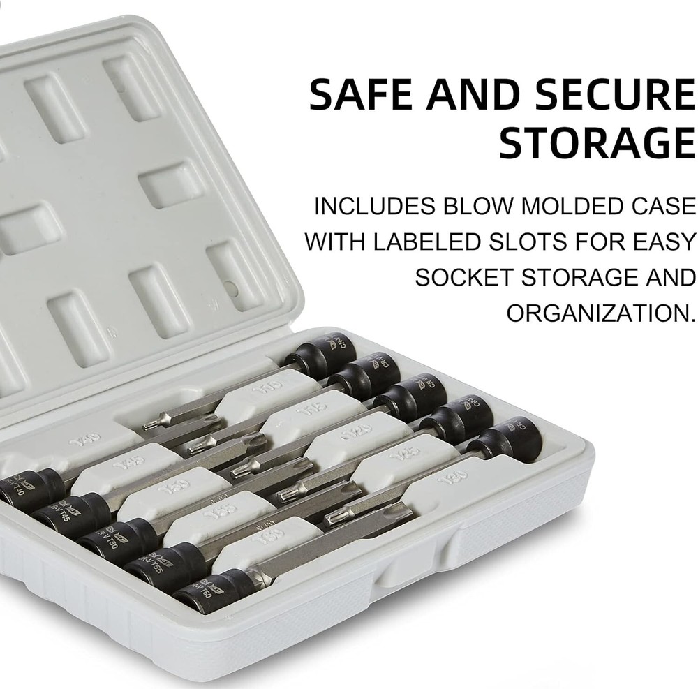 3.5-Inch Extra Long 3/8-Inch Drive Torx Bit Socket Set (10-Pack) T10