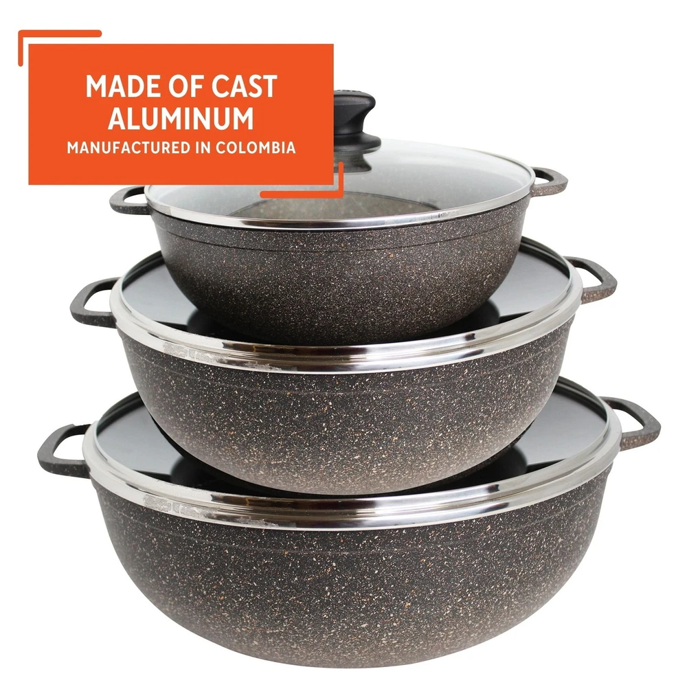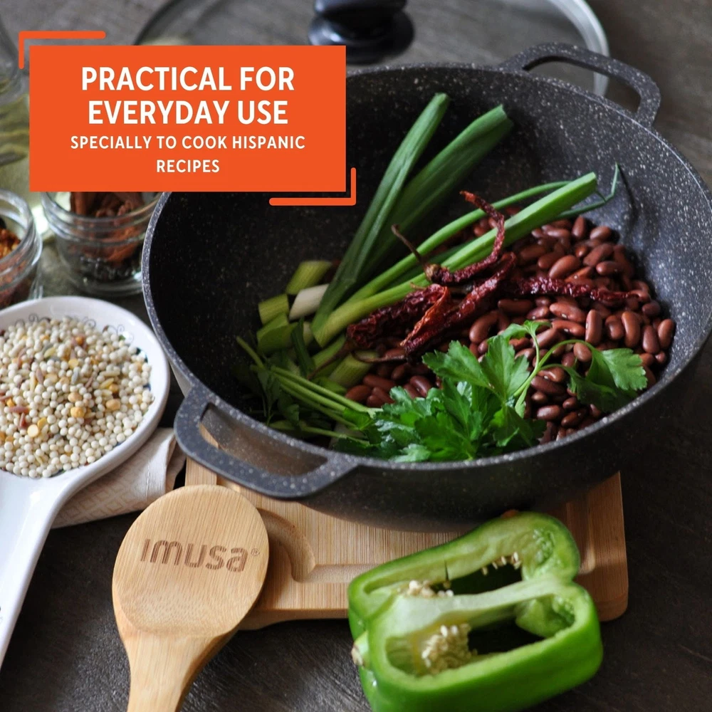 You may also like 27.5Qt Aluminum Steamer Pot W/ Removable Tray Lid Seafood Rice Tamales 40.3 USD 42.42 USD Free shipping 5% off Nonstick Saucepan Pot W/ Swiss Granite Coating Induction Comptable PFOA Free 39.74 USD 41.83 USD Free shipping 5% off 3 Count 6 QT Covered Stock Pot Saucepan Lock-N-Drain Stainless Steel W/ Strainer 49.59 USD 52.2 USD Free shipping 5% off Non-Stick 5QT Stock Pot W/ Glass Lid Induction Safe Heavy Gauge Construction New 41.31 USD 43.48 USD Free shipping 5% off 6 Quart Lock Drain Pasta Pot Nonstick Easy Clean Ergonomic Handles Quick Heating 41.17 USD 43.34 USD Free shipping 5% off 27.5Qt Aluminum Steamer Pot W/ Removable Tray Lid Seafood Tamales Rice 40.3 USD 42.42 USD Free shipping 5% off Nonstick Enamel Steel Steamer Pot W/ Lid Trivet Dishwasher Safe Durable Design 46.25 USD 48.68 USD Free shipping 5% off 34Qt Enamel Steel Steamer Pot Lid Trivet Nonstick Durable Dishwasher Safe Home 46.25 USD 48.68 USD Free shipping 5% off Large Stainless Steel Stock Pot W/ Lid Induction Gas Cooktops 12Qt Cookware New 54.62 USD 57.49 USD Free shipping 5% off 32Qt Aluminum Steamer Pot W/ 21Qt Basket Glass Lid Cooking Kitchen Tool Newly 53.4 USD 56.21 USD Free shipping 5% off Stainless Steel 3Qt Induction Saucepan W/ Lid Dishwasher Safe Cooking Pan New 25.94 USD 27.3 USD Free shipping 5% off 8 Quart Stainless Steel Lock & Drain Stock Pot Durable Cookware Soup & Stockpots 56.92 USD 59.92 USD Free shipping 5% off 3.5Qt Dutch Oven Stockpot W/ Glass Lid Handle Nonstick Oven-Safe Cooking Baking The IMUSA 3.5 Quart Nonstick Fuzion Dutch Oven with Tempered Glass and Bronze Speckled Interior & Exterior is the workhorse of any Hispanic kitchen due to its versatility and unique design. The Dutch Oven (or cauldron in English) has rounded sides, a tight-fitting lid, and superior heat distribution. Dutch Ovens are used to cook rice, beans, braise meat, and simmer stews and soups. Made in Colombia these traditional Dutch Ovens will be part of your kitchen for many years to come. The rounded side heats up evenly and quickly allowing you to cook a variety of different foods. The Glass lid is ideal to lock in flavor while cooking and the Dutch Oven can be used as a serving dish after cooking. The nonstick is ideal for healthy cooking since it requires little oil. Start making home-cooked meals the traditional way. It is ideal for making just about any meal you can create. Made of cast aluminum The IMUSA caldero has a Capacity: of 3.5 Quart Coated with a nonstick, bronzed speckled finish Even heat distribution and oven-safe without the lid Easy grip handles and tight-fitting glass lid with steam vent Used for cooking rice, simmering soups, beans, sauces, stews, baking and more Ideal for everyday use, especially for Hispanic recipes You may also like Beef Choice Cuts in Gravy Adult Wet Dog Food 12 Pack Canned Variety 13.2 Oz New 24.78 USD 26.08 USD Free shipping 5% off 40pcs Metric Tap & Die Set HRC55-62 Durable Tools Precision Cutting Wrench New 31.33 USD 32.98 USD Free shipping 5% off Stroller Snack Tray W/ Removable Cup Convenient Child Feeding Accessory New 47.4 USD 49.89 USD Free shipping 5% off Savory Saffron Green 2PC Stoneware Bakeware Set Oven to Table Microwave Safe New 43.79 USD 46.1 USD Free shipping 5% off Baby Bath Kneeler Elbow Saver Foam Padding Adjustable Suction Cups W/ Pockets US 47.4 USD 49.89 USD Free shipping 5% off 4-Slice Belgian Waffle Maker Nonstick Plates Adjustable Temperature Big Batch US 48.96 USD 51.54 USD Free shipping 5% off Advanced True HEPA Air Purifier Filter Allergens Bacteria Viruses & Smoke New 32.01 USD 33.69 USD Free shipping 5% off Breast Milk Storage Solution Set 50 Pieces BPA Free Breastfeeding Containers New 33.23 USD 34.98 USD Free shipping 5% off Mountable Paper Towel Holder Portable Design Easy Install Space Saving RV Home 16.98 USD 17.87 USD Free shipping 5% off LED Clip Light W/ Flexible Gooseneck Adjustable Desk Lamp Reading All Ages New 21.12 USD 22.23 USD Free shipping 5% off Heavy Duty Plastic Hangers 4 Notches 25 Pack Space Saving Closet Organizer New 28.4 USD 29.9 USD Free shipping 5% off Airtight Plastic Storage Container Clear Ribbed 15.8 Cup Pantry Organizer New 11.48 USD 12.08 USD Free shipping 5% off