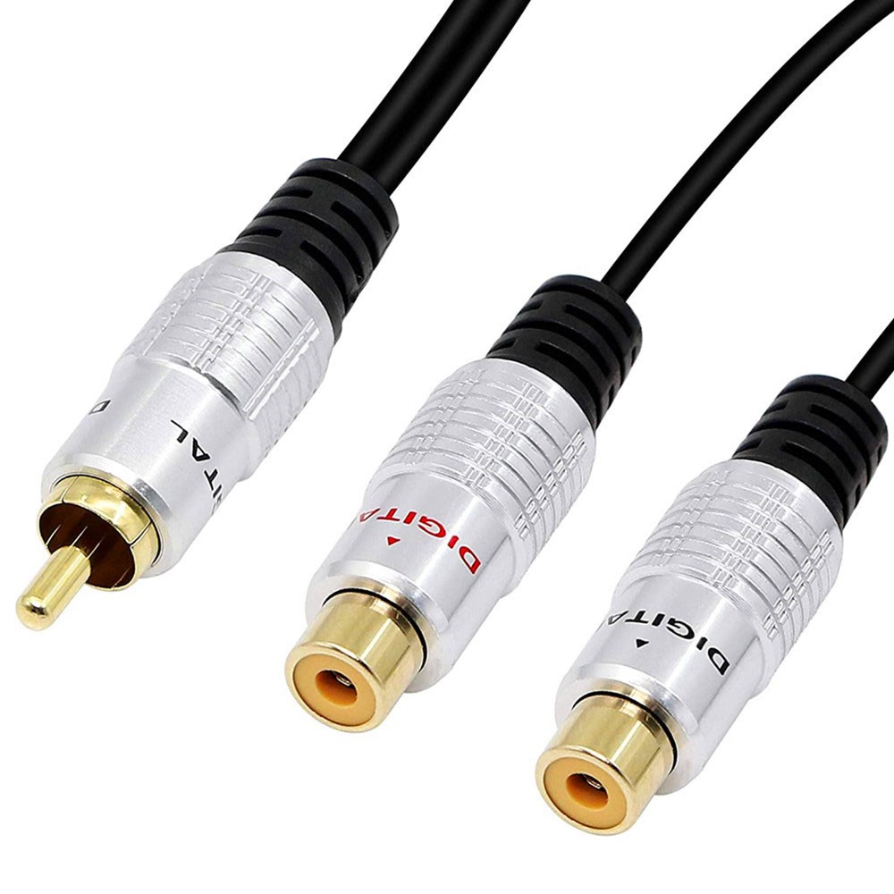 3.5mm Aux Male to Dual Female RCA Audio A/V Adapter Cable 10" Headphones Cord RCA adapter length is 10Inch (Appr:25CM), 3.5mm mini-jack to 2-RCA stereo audio Y adapter cable RCA Female Stereo Plug is perfect to plug a portable CD player, MP3 player, iPod, smartphone, tablet, PC sound card, and other devices with an aux connector into the existing RCA connections RCA (M) to 2 RCA (F) stereo audio Y adapter subwoofer cable will send your music from an MP3 player to a stereo system. Plugs audio cable is designed to split a stereo signal, high-quality polished connectors, and corrosion-resistant 3.5mm connectors; prevent radio frequency interference (RFI) and electromagnetic interference (EMI). 2-RCA stereo audio Y adapter cable one end has two color-coded female 3.5mm stereo mini jacks (left and right audio channels).and the other end has one male RCA plugs