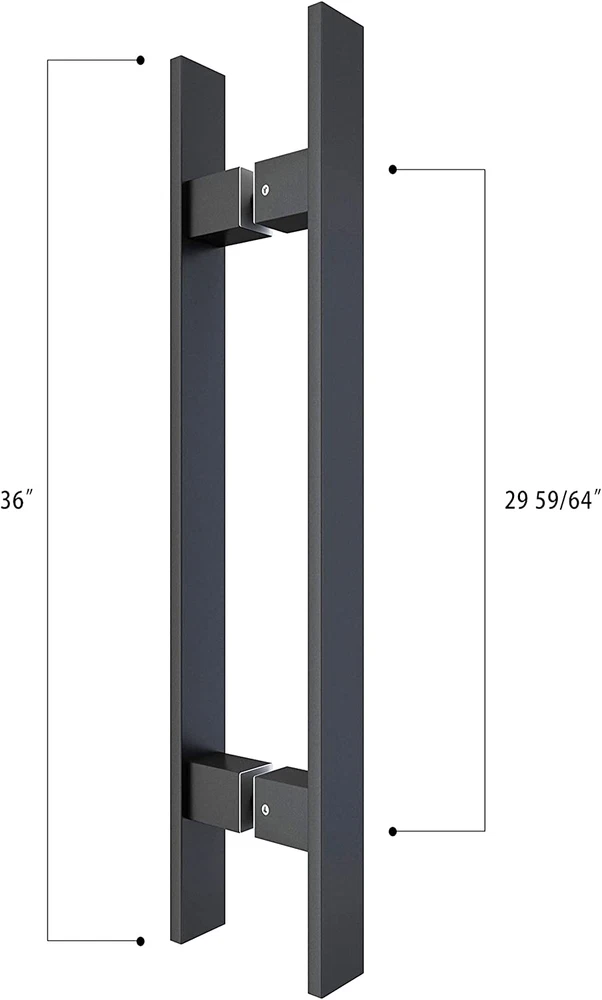 Menu Other Items Feedbacks About Us Contact Us Add To Favorites 36" Barn Door Push Pull Handle,Heavy Duty Grade-304 Stainless Steel Square Commercial Door Handle,Entrance Entry Front Door Handle Office Handle Pull Set for Wood Door Glass Door,Black High Quality: Made of grade-304 stainless steel with 1.2mm wall thickness,matte black finish,anti-rust and anti-corrosion,ensures year of use. Pull Handle Size: 36 L ; 1 3/5 " W . The distance of two holes is 29 59/64"; .Fits for wood door panel thickness from 1-3/4" to 2 3/4'',fits for glass door panel thickness from 8/25'' to 12/25'' (If you want to use for a thicker door panel, you could buy some longer screws to match your door.) Widely Application:This double-side design handle can be used for wooden or glass door pulls, commercial doors,office door,barn doors,interior/exterior,entrance/entry door pull handles to coordinate all modern decorations. Package Includes:2 x pull handles;6xscrews;1xAllan key.All other necessary hardware is included as you see in the pictures.(The two handles cannot be installed separately) Perfect After-sales Service:We have a professional customer service team 24 hours online to serve you,if there is any problem about our products,please let us know ,we will try our best to solve your problem. Product Description BARNSMITH specializes in developing and manufacturing metal glass sliding barn doors, commercial door pull handles and hardware sets for years.We remain committed to delivering design innovations that enhance beauty and functionality. No sharp edge To avoid hand injury by smoothing and polishing the sharp cutting edge. Smooth operation without being slippy Solid Construction Made of premium stainless steel,matte black fininsh.This solid and heavy duty handle set can resist to rust, corrosion and deformation for years.It's a good choice for your lovely doors. Easy to Install We provide a professional installation manual as your reference,it's super easy to install,just drill two holes in your door to combine the two side handles with screws. 36" Black Commercial Door Handle Heavy Duty Grade-304 Stainless Steel Push Pull Handle Package Includes:1 x pull handle set.(DOOR NOT INCLUDED) Kindly Reminder: All hardware is included as you can see in the picture. This two-side handle does not include a lock set,only handle is for sale.This listing is for 1 pair 2 handles for a single door. If you want to use in double doors,please purchase 2 pairs 4 handles. Tips:If you want to use this two-side handle on glass doors or metal frame doors,please make sure the distance of handle holes are match,the distance of two holes is11 29 59/64". Item Specification Style Heavy Duty,Modern Number of Items 1 Style Heavy Duty,Modern Handle Type Pull Handle Theme Modern Finish Types Matte Black Unit Count 1 Count Product Dimensions 36"L x 1.6"W Material Stainless Steel Center To Center Spacing 29.96 Inches Package Type Flat Free Package Metal Type Stainless Steel Specific Uses For Product Door Included Components Screw, Key Shape Square Finish Type Matte Black Item Weight 4 Pounds Lock Type Key Lock Special Features Easy to Install Exterior Finish Matte Black Item Dimensions L x W 36"L x 1.6"W Color Black Handle Type Pull Handle Handle Material Glass, Stainless Steel, Wood Shape Square Size 36 Inch Dimensions Shipping Returns Additional Info Product Dimensions: 1.6 "w x 36.0 "w. Weight: 4.0 lb Fast shipping is very important for us. Our standard shipping service is FREE. Your order will be shipped within 1-3 business days upon full payment received. Most items are delivered within 3-5 business days, however, please allow 3-10 business days. We are shipping only to USA. We only ship to the confirmed Paypal address. We reserve the right to cancel any order for any reason at any time. We are not responsible for undeliverable addresses. We offer a 30 day return policy from checkout winning date. Your satisfaction is guaranteed! If for any reason you are unhappy with your item, just return it within 30 days for a full refund, minus shipping cost. Please contact us prior to initiating a return so that we can issue you a refund authorization. Items defective upon receipt must be packaged in their retail packaging as if new and returned with a detailed description of the problem. Return shipping fees are not refundable. We reserve the right to decline any returns if the above guidelines are not followed. All of our items, unless otherwise stated, will only run on 120 volts. Please check to make sure your country complies with these specifications. If you have a problem or question regarding your transaction please contact us before leaving any type of feedback. We will work with you to resolve any problem you may have.