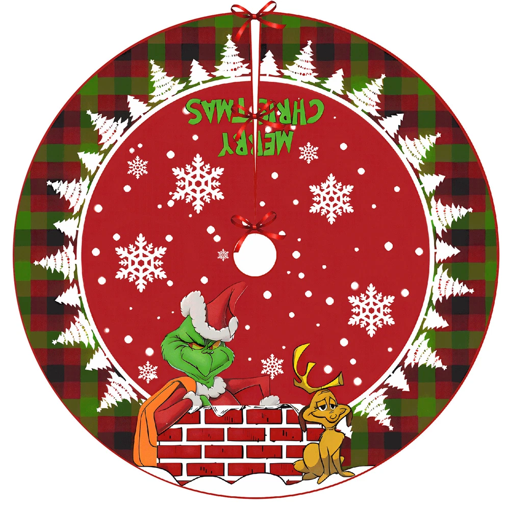 36" GRINCH Christmas Tree Skirt Green Trimmed Tree Skirt Christmas Decorations