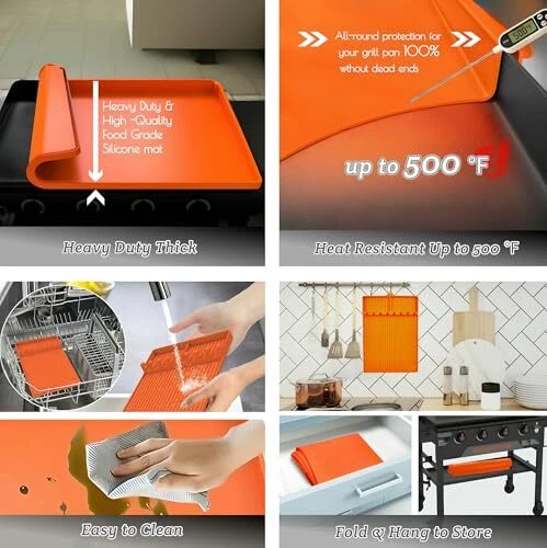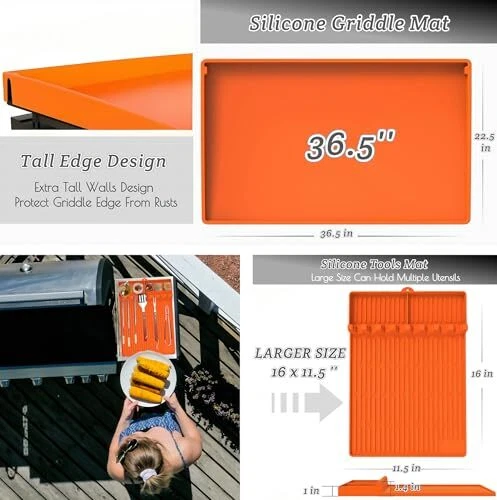 Menu 1. We require immediate payment. 2. We currently accept payment via eBay managed payments only. 3. Once payment is cleared, we will dispatch your shipment within 1-3 business days. Please refer to the "Shipping" tab for more information regarding shipping speed to your destination. 36 Inch Blackstone Griddle Cover - Full Wrap-Around Edge - Heavy Duty Food Grade Blackstone Griddle Accessories for Protecting from Rust, Insects, Rodents, Debris - Include 16 Inch Silicone Tools Mat Product description [PERFECT FIT FOR BLACKSTONE GRIDDLE 36 INCH] Custom-designed to fit perfectly 36 inch griddle without any trimming, our blackstone 36 inch griddle cover won't wobble or slide, ensuring maximum protection for your griddle. [UPGRADED FULL COVERAGE DESIGN] Compared with the original blackstone cover, our blackstone silicone griddle cover features full-edge design that effectively protects your griddle from rodents, insects, dust, debris, and rust damage, ensuring that your grill stays clean at all times. [EXTRA 16'' SILICONE TOOLS MAT] The package comes with a silicone mat on which you can place tongs, forks, brush, or oil dispenser to keep your kitchen, countertop and barbecue grill side shelf clean and tidy effortlessly. [HEAVY DUTY FOOD GRADE SILICONE] These blackstone accessories are made from heavy-duty food grade silicone, ensuring durability and safety for your outdoor cooking needs. Cleaning is a breeze with their non-stick surface. Simply clean with soap and water or in a dishwasher. [MUST-HAVE FOR BBQ ENTHUSIAST] Enhance your cooking experience with our silicone mat for blackstone and enjoy a cozy grilling time with your family and friends. It's a must-have accessory for Blackstone grill owners. PLEASE MESSAGE US IF YOU HAVE ANY OTHER QUESTIONS, AND MANY THANKS FOR READING ALL OF THIS. Copyright ©#. All Rights Reserved.