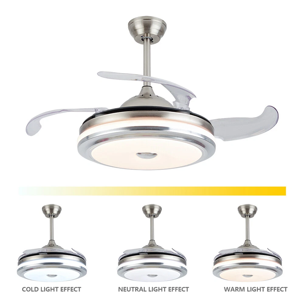 【Remote Control】Integrating turn on light with 3 color changes (white, warm white, neutral white)you can use the remote control to choose the color you like. 【2 in 1 Fandelier】: Retractable ceiling fan and chandelier 2-in-1. The modern design concept provides beauty and convenience for your life. Usually as an ordinary fan, it promotes air circulation very well. When closed, the blade retracts invisibly, leaving only a beautiful led chandelier. 【Ceiling Fan】With ABS blades, It can be used as an electric fan, and it can also be used for lighting 【Applications】Ideal for living room, dining room, foyer, villa, bedroom, restaurant, study room, and other places to decorate lighting fixtures. ❤❤❤Welcome to royalfeatured ❤❤❤ Description This Chandelier-type Ceiling Fan Consists of a Retractable Fan and a 3-Color Light. It Allows You to Enjoy the Coolness and Stay Away from Air Conditioning Disease. Unlike Other Fans, This Product Is Stable and Has Low Noise. the 360-Degree Circulating Airflow Fills the Room and Makes You Feel Cool All the Time. Key Features Remote Control : This Item Is Equipped with Remote Control, so You Don't Have to Stand up to Change the Three Lights, Three Wind Speeds, or Timer Settings at Will. This Will Bring a Lot of Convenience to Your Life. Wide Range: the Item's Lights and Fans Can Serve a Wide-range Area. so Even If Your Room Is Big Enough, You Don't Have to Worry About the Lights Being Too Dim or Not Blowing the Wind. Diverse Functions: with Abs Blades and 2 in 1 Chandelier, This Crystal Ceiling Fan with Light Can Be Used As an Electric Fan and Also for Lighting. It Can Be Multi-purpose and Has Superb Cost Performance. Simple and Generous Appearance : It Has No Complicated Decoration and a Rich Color Scheme. the Overall Feeling of Simplicity and Comfort. Timing Device: This Chandelier-type Ceiling Fan Can Be Timed for 1 Hour, 3 Hours, or 6 Hours with a Single Button. If You Often Forget to Turn off the Power, You Don't Have to Worry About Wasting Power. High-quiet Mode: This Chandelier-type Ceiling Fan Is Equipped with a High-quiet Motor. It Is Made of Electronic Material. Steel and Copper Wire Material to Effectively Avoid Noise. Strong Durability: This Chandelier-type Ceiling Fan Is Made of Copper Wire and Steel Material. It Is More Durable and Long-lasting Compared to Normal Lights and Fans. Quality Service: If You Have Any Questions, Inquiries, or Need Help, Please Feel Free to Contact Us and We Will Try Our Best to Help You. Details Abs Blades: This Material Features High Strength and the Abs Fluid Resistance Is Low, Which Makes a Low Energy Consumption. It Is Beautiful, Thin, Light, and Durable to Use. Fans and Lights in One : This Design Is a Great Space Saver While Highlighting a Sense of Sophistication. Application This Chandelier-type Ceiling Fan Is Ideal for the Living Room, Dining Room, Foyer, Cottage, Bedroom, Dining Room, Study, and Other Places As a Decorative Lighting Fixture. Its Illuminated Area Is About 8-25㎡. Specifications Led Color: 3 Color(White, Warm White, Neutral White ) Power: 36 W Voltage: 110v Diameter:36in /90cm(Blades Unfolded) Long Downrod Length: 9.8" (25 Cm) Short Downrod Length: 3.9" (10 Cm) Total Height: 15" (38cm)/ 21" (53cm) Illuminated Area: 8-25㎡/86.11-269.1ft2 Fan Blade: 4 Leaf Plastic Fan Blade Material: Metal+Abs Fan Motor: High-quiet Motor Color: Chrome Bulb: Led Blades: Acrylic+Metal Electronic Materials: Steel+ Copper Wire Lampshade: Acrylic Package Included 1*Light 1*Rc Control All Accessories for Assembly Notes This Fan Requires Basic Assembly and the Use of a Professional Is Highly Recommended. Floor Height Is Greater than 110 Inches/279.4cm and Ceiling Load Is Greater than 55.12lbs/25kg. Please Allow a Slight Color Difference Due to Shooting Light, and 1-3cm Error Due to Manual Measurement, Please Make Sure You Don't Mind Before Ordering. Payment Delivery details Terms of sales About us Contact us Payment We accept ebay payment 。 Fees such as import duties, taxes are not included in the item price or shipping costs. These charges are the buyer's responsibility. Delivery details Shipping: 2-9 working days to: USA Terms of sales We maintain high standards of excellence and strive for hundred percent customer satisfaction. Feedback is very important to us. We hope that you contact us immediately before you give neutral or negative feedback, so that we can address your concerns. It is impossible to address issues if we do not know about them! About us Your satis faction is our ultimate goal. We work hard to earn your trust and future business. Our certified technicians have tested each item before shipping. The unit comes with 1 year limited warranty on all manufacturing defects. a) If you receive a defective item, you may return it or ask for a discount. Please contact us within 14 days after you receive the package. b) What you returned must be intact and in its original packaging as re? u. Customer is responsible for shipping costs of the returned item. c) We will cover the cost of shipping back t with the shipping rate indicated in the registration page. We will send you a new unit or refund the full payment you paid. Thank you. Contact us Business Hour Business Hour: Monday To Friday: 8:30 AM to 5:00 PM (Beijing China time) Due to time zones, our reply to your questions may not be immediately. But within above working time, we will reply your email within 24 hours. If it's non-workdays, please kindly be patient and wait till Monday. Please contact us with ebay message. Please feel free to contact us if you have any questions. Monday To Friday: 8:30 AM to 5:00 PM (Beijing China time) Due to time zones, our reply to your questions may not be immediately. But within above working time, we will reply your email within 24 hours. If it's non-workdays, please kindly be patient and wait till Monday. Please contact us with ebay message. Please feel free to contact us if you have any questi