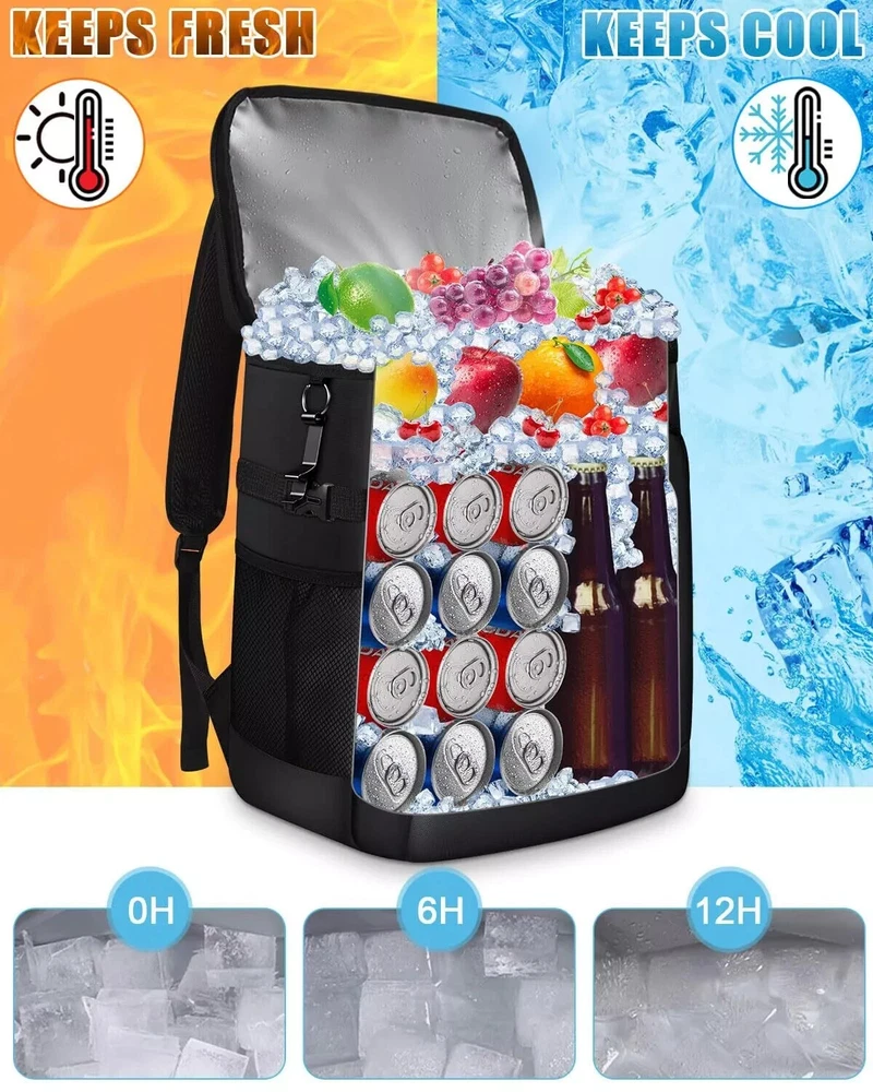 ABOUT THIS ITEM: Upgrade Insulated & Leak-proof & Sweat-Free Material:Upgrade 4 layers(others 3) of material to effectively lock temperature.The inner layer uses a silver PEVA seal and adopts a seamless hot pressing process for leak-proof .210D waterproof wear-resistant lining lowers the risk of tearing or coming apart. Thickened 8mm (others 5mm) foam Insulation helps to prevent heat transfer. Waterproof nylon outer adds abrasion protection. (The zipper isn't leakproof, kindly take care to avoid tipping over) 36 Cans Large Capacity & 4 Compartments: Capolo soft cooler with 4 compartments offers convenient organization options, and helps you keep your item neat and organized, eliminating the need to search the entire bag.36 Cans Main Compartment, perfect for keeping your food and drinks chilled on the go. The top compartment offers a separate dry storage space, ideal for snacks or personal items. Plus, 2 additional pockets with 2 mesh slots for utensils, napkins, or any small travel essentials. Lightweight & Ergonomic Design: Tailored with adjustable shoulder straps and thickened 10mm back foam(others 8MM), it offers personalized support, ensuring your load is evenly distributed for maximum comfort during any adventure. The generous foam thickness is a barrier, blocking cold air from contacting your back and further enhancing your comfort. Bid farewell to cumbersome traditional soft coolers, upgrade your journey experience today, and invest in a Capolo cooler bag! Experience Unmatched Convenience and Detail: The Capolo beach cooler bag stands out with its meticulously crafted details. Adjustable side buckle designed to hold tall bottles adjusts for optimal bag shape retention and serves as a makeshift handle for easy two-person carry. We provide an opener ensuring you can enjoy your favorite beverages hassle-free anytime. Reflective strips on the shoulder straps increase visibility during low-light conditions, ensuring your adventures are safe at any hour. Water-resistant Outer: Water-resistant Outer to protect your items from raindrops, sweat, and moisture, Be well suited as a backpack lunchbox, travel cooler, camping cooler, insulated backpack, etc.
