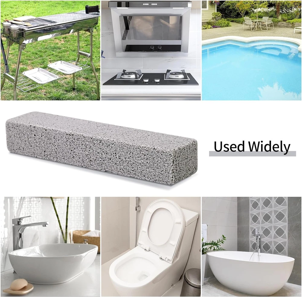 High-quality: Our pumice is made of high-quality substance, fine and strong, with high density, no irritating smell and very safe; it will not scratch your tiles and metal; Help you solve stains and troubles. Perfect size: Each pumice is about 5.9 x 1.4 x 0.9 Inches, perfect for your palm, making it easier and more comfortable to clean.Perfect size to help you clean edges and gaps for easy access, no more dead ends. Multiple functions: Our pumice can help you quickly and easily clean grease, stains, residues and dirt without scratching surfaces. Applicable occasions: Pumice stone is used in toilets to clean calcium deposits, limescale and hard water rings on toilets, sinks, bathroom tiles and other ceramic surfaces. It can also be used to remove rust and grease from grills and ovens. Precautions: Soak the area to be cleaned and the gray pumice before cleaning, so that the pumice has a more powerful cleaning function. Product Description The size fits perfectly in the palm of your hand. Made of natural pumice stone,safe efficient and sturdy. Transparent packaging.