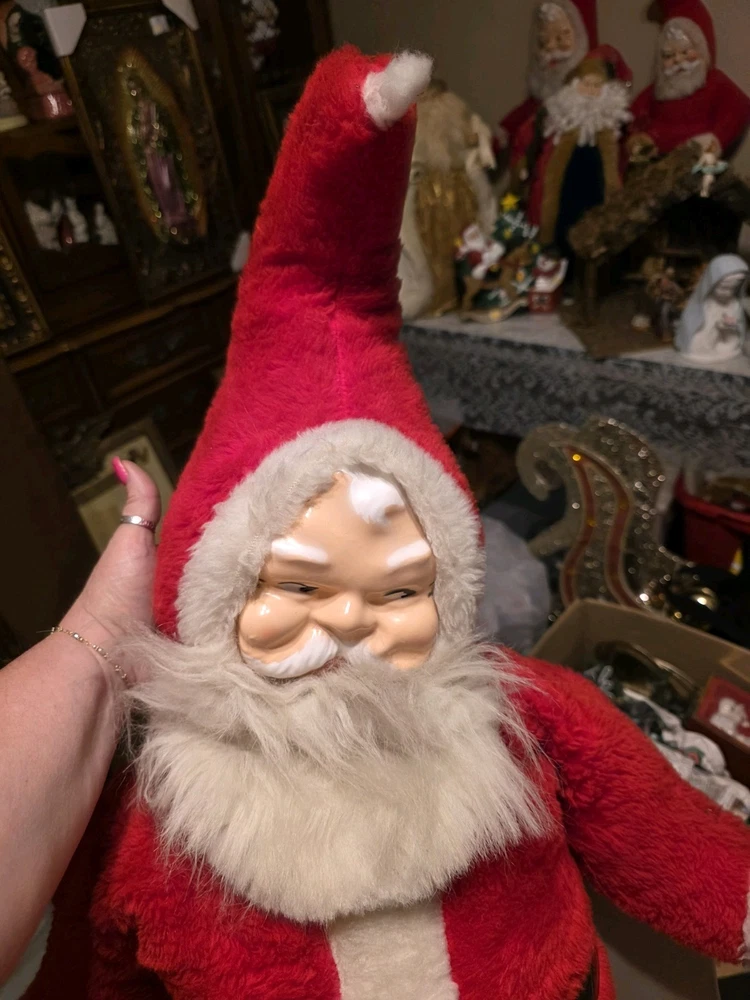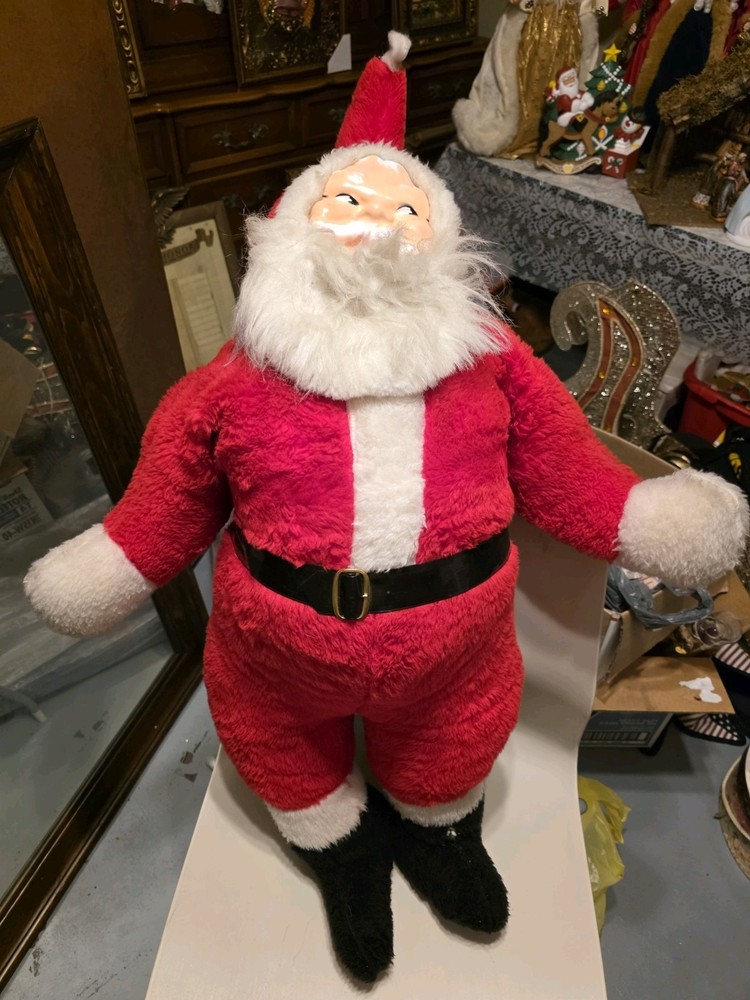 He is in great condition. The only issue is his one boot needs to be sewn up. The seam is apart. I've included it in the picture, so please look closely at each picture. Because what you see is what you get if you have to enhance the picture by making it larger, please do so. Thank you for looking. This vintage 1960s Santa Claus figure doll features a plush body and a hard plastic rubber face, standing at 36 inches tall. Signed by Parisi, this large Christmas figure is part of the Classic Collection and is perfect for collectors or kids during the holiday season. With its traditional style and red and white color scheme, this collectible Santa doll embodies the classic Christmas theme and is a nostalgic piece from the 1960s. Made in the United States, this unique and signed Santa figure is a must-have for any collector looking to add a touch of vintage charm to their holiday decor. **Please understand that all items sold at this shop are either used vintage items or new old stock items. They may have crackled glaze or factory flaws or very minor damage. Anything significant, I will point out, so kindly look at the pictures carefully as they are part of my description, and I don't want you to miss anything and be unhappy with your purchase. If you want more pictures please contact me. **I ship USPS *I package all my items up securely to ensure they get to your house in the condition they left mine. *The pictures that you see are of the actual item. *Please inspect each picture by enhancing them or enlarging them to see and imperfections *Any imperfections or concerns of this item I highlight in each picture. *Thank you for stopping by my shop *Items are shipped from a smoke free home
