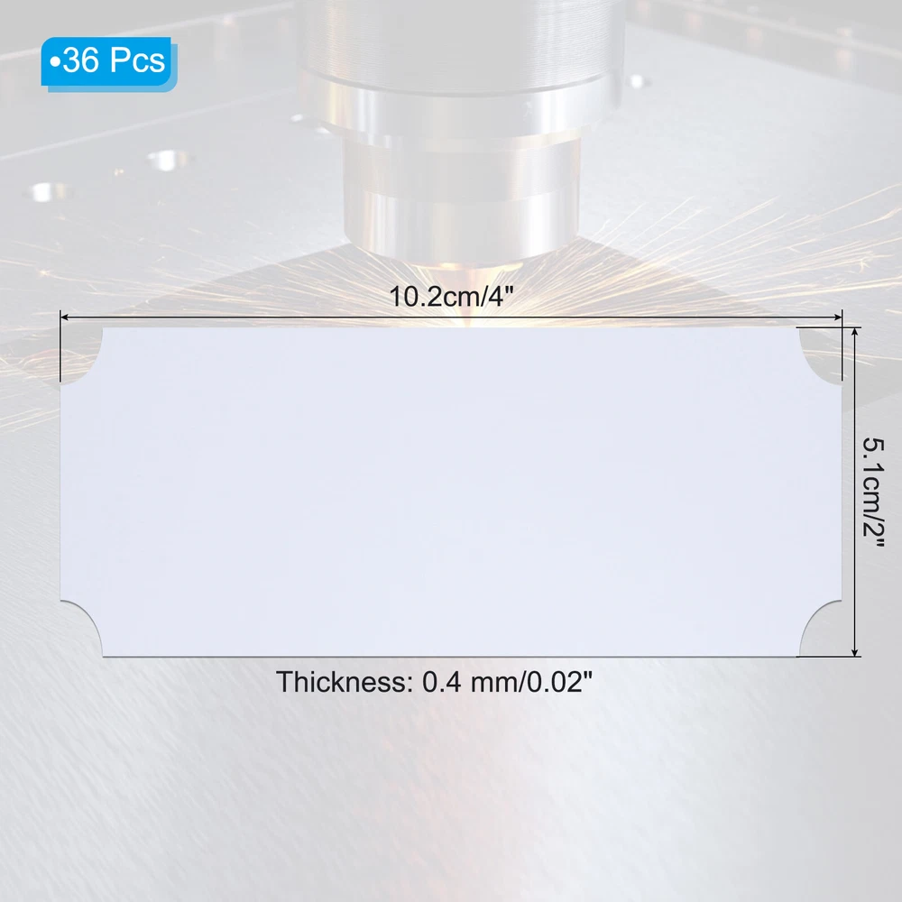 Document Our engraved nameplates are perfect for mounting on plaques, picture frames, sweaters, trophies, bags, display boxes, flag cases, and anything else.SpecificationMaterial: Stainless SteelColor: WhiteSize: 10.2 x 5.1 cm/4 x 2 Inch(L*W)Thickness: 0.4 mm/0.02 InchPacking List: 36 Pcs x Engraved NameplateAdvantageOur engraved nameplates are made of brushed stainless steel which is durable, stable, not easy to fade, rust, or break, and can be used for a long time. With a smooth surface, it will not scratch your skin.The right thickness makes the plate stronger and allows for deeper engraving. These elegant nameplates have a beautiful luster and a simple design. Suitable for various crafts to add brilliance.The protective film design can effectively prevent scratches. The adhesive backing design allows you to stick this nameplate anywhere without any tools and it can be firmly on the objects.InstructionPlace a metal workbench block underneath the blank stamping tags for better stamping.NOTE:1. There may be light scratches and blemishes due to shipping, but they can be polished.2. Only for laser engraving, not suitable for mechanical engraving.3. Please remove the protective film before use. 36 Pcs 4" x 2" Engraved Name Plate Picture Frame Label Art Tag, White Our engraved nameplates are perfect for mounting on plaques, picture frames, sweaters, trophies, bags, display boxes, flag cases, and anything else. Specification Material: Stainless Steel Color: White Size: 10.2 x 5.1 cm/4 x 2 Inch(L*W) Thickness: 0.4 mm/0.02 Inch Packing List: 36 Pcs x Engraved Nameplate Advantage Our engraved nameplates are made of brushed stainless steel which is durable, stable, not easy to fade, rust, or break, and can be used for a long time. With a smooth surface, it will not scratch your skin. The right thickness makes the plate stronger and allows for deeper engraving. These elegant nameplates have a beautiful luster and a simple design. Suitable for various crafts to add brilliance. The protective film design can effectively prevent scratches. The adhesive backing design allows you to stick this nameplate anywhere without any tools and it can be firmly on the objects. Instruction Place a metal workbench block underneath the blank stamping tags for better stamping. NOTE: 1. There may be light scratches and blemishes due to shipping, but they can be polished. 2. Only for laser engraving, not suitable for mechanical engraving. 3. Please remove the protective film before use. Hot Item Payment 1.We accept eBay payment . 2.Payment must be received within 7 business days of auction closing. Shipping 1.We ship to your eBay or Paypal address. Please make sure your eBay and Paypal address is correct before you pay. 2.Items will be shipped within 1-3 business day when we received payment. 3.Delivery time depends on destination and other factors. Description Policy 36 Pcs 4" x 2" Engraved Name Plate Picture Frame Label Art Tag, White Our engraved nameplates are perfect for mounting on plaques, picture frames, sweaters, trophies, bags, display boxes, flag cases, and anything else. Specification Material: Stainless Steel Color: White Size: 10.2 x 5.1 cm/4 x 2 Inch(L*W) Thickness: 0.4 mm/0.02 Inch Packing List: 36 Pcs x Engraved Nameplate Advantage Our engraved nameplates are made of brushed stainless steel which is durable, stable, not easy to fade, rust, or break, and can be used for a long time. With a smooth surface, it will not scratch your skin. The right thickness makes the plate stronger and allows for deeper engraving. These elegant nameplates have a beautiful luster and a simple design. Suitable for various crafts to add brilliance. The protective film design can effectively prevent scratches. The adhesive backing design allows you to stick this nameplate anywhere without any tools and it can be firmly on the objects. Instruction Place a metal workbench block underneath the blank stamping tags for better stamping. NOTE: 1. There may be light scratches and blemishes due to shipping, but they can be polished. 2. Only for laser engraving, not suitable for mechanical engraving. 3. Please remove the protective film before use. Hot Item Payment 1.We accept eBay payment . 2.Payment must be received within 7 business days of auction closing. Shipping 1.We ship to your eBay or Paypal address. Please make sure your eBay and Paypal address is correct before you pay. 2.Items will be shipped within 1-3 business day when we received payment. 3.Delivery time depends on destination and other factors.