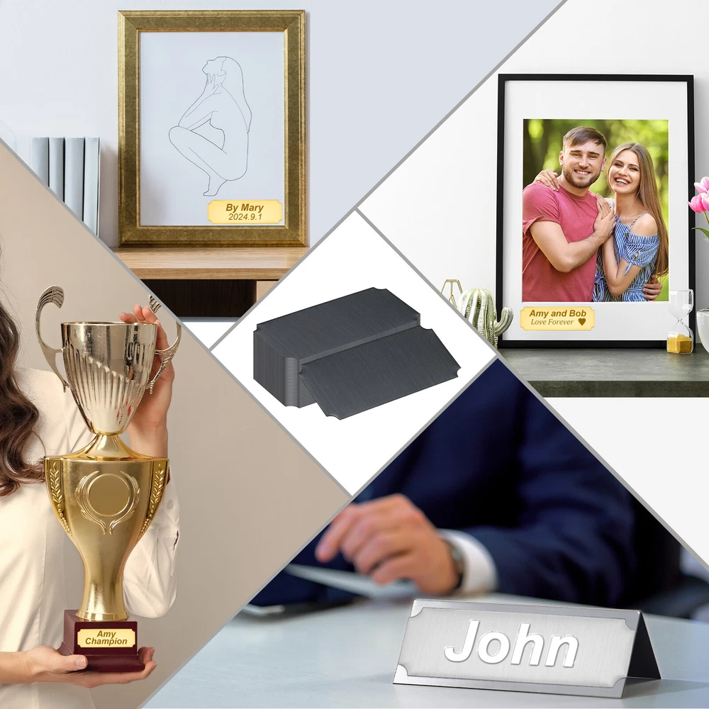 Document Our engraved nameplates are perfect for mounting on plaques, picture frames, sweaters, trophies, bags, display boxes, flag cases, and anything else.SpecificationMaterial: Stainless SteelColor: BlackSize: 15.2 x 6.3 cm/6 x 2.5 Inch(L*W)Thickness: 0.4 mm/0.02 InchPacking List: 36 Pcs x Engraved NameplateAdvantageOur engraved nameplates are made of brushed stainless steel which is durable, stable, not easy to fade, rust, or break, and can be used for a long time. With a smooth surface, it will not scratch your skin.The right thickness makes the plate stronger and allows for deeper engraving. These elegant nameplates have a beautiful luster and a simple design. Suitable for various crafts to add brilliance.The protective film design can effectively prevent scratches. The adhesive backing design allows you to stick this nameplate anywhere without any tools and it can be firmly on the objects.InstructionPlace a metal workbench block underneath the blank stamping tags for better stamping.NOTE:1. There may be light scratches and blemishes due to shipping, but they can be polished.2. Only for laser engraving, not suitable for mechanical engraving.3. Please remove the protective film before use. 36 Pcs 6" x 2.5" Engraved Name Plate Picture Frame Label Art Tag, Black Our engraved nameplates are perfect for mounting on plaques, picture frames, sweaters, trophies, bags, display boxes, flag cases, and anything else. Specification Material: Stainless Steel Color: Black Size: 15.2 x 6.3 cm/6 x 2.5 Inch(L*W) Thickness: 0.4 mm/0.02 Inch Packing List: 36 Pcs x Engraved Nameplate Advantage Our engraved nameplates are made of brushed stainless steel which is durable, stable, not easy to fade, rust, or break, and can be used for a long time. With a smooth surface, it will not scratch your skin. The right thickness makes the plate stronger and allows for deeper engraving. These elegant nameplates have a beautiful luster and a simple design. Suitable for various crafts to add brilliance. The protective film design can effectively prevent scratches. The adhesive backing design allows you to stick this nameplate anywhere without any tools and it can be firmly on the objects. Instruction Place a metal workbench block underneath the blank stamping tags for better stamping. NOTE: 1. There may be light scratches and blemishes due to shipping, but they can be polished. 2. Only for laser engraving, not suitable for mechanical engraving. 3. Please remove the protective film before use. Hot Item Payment 1.We accept eBay payment . 2.Payment must be received within 7 business days of auction closing. Shipping 1.We ship to your eBay or Paypal address. Please make sure your eBay and Paypal address is correct before you pay. 2.Items will be shipped within 1-3 business day when we received payment. 3.Delivery time depends on destination and other factors. Description Policy 36 Pcs 6" x 2.5" Engraved Name Plate Picture Frame Label Art Tag, Black Our engraved nameplates are perfect for mounting on plaques, picture frames, sweaters, trophies, bags, display boxes, flag cases, and anything else. Specification Material: Stainless Steel Color: Black Size: 15.2 x 6.3 cm/6 x 2.5 Inch(L*W) Thickness: 0.4 mm/0.02 Inch Packing List: 36 Pcs x Engraved Nameplate Advantage Our engraved nameplates are made of brushed stainless steel which is durable, stable, not easy to fade, rust, or break, and can be used for a long time. With a smooth surface, it will not scratch your skin. The right thickness makes the plate stronger and allows for deeper engraving. These elegant nameplates have a beautiful luster and a simple design. Suitable for various crafts to add brilliance. The protective film design can effectively prevent scratches. The adhesive backing design allows you to stick this nameplate anywhere without any tools and it can be firmly on the objects. Instruction Place a metal workbench block underneath the blank stamping tags for better stamping. NOTE: 1. There may be light scratches and blemishes due to shipping, but they can be polished. 2. Only for laser engraving, not suitable for mechanical engraving. 3. Please remove the protective film before use. Hot Item Payment 1.We accept eBay payment . 2.Payment must be received within 7 business days of auction closing. Shipping 1.We ship to your eBay or Paypal address. Please make sure your eBay and Paypal address is correct before you pay. 2.Items will be shipped within 1-3 business day when we received payment. 3.Delivery time depends on destination and other factors.