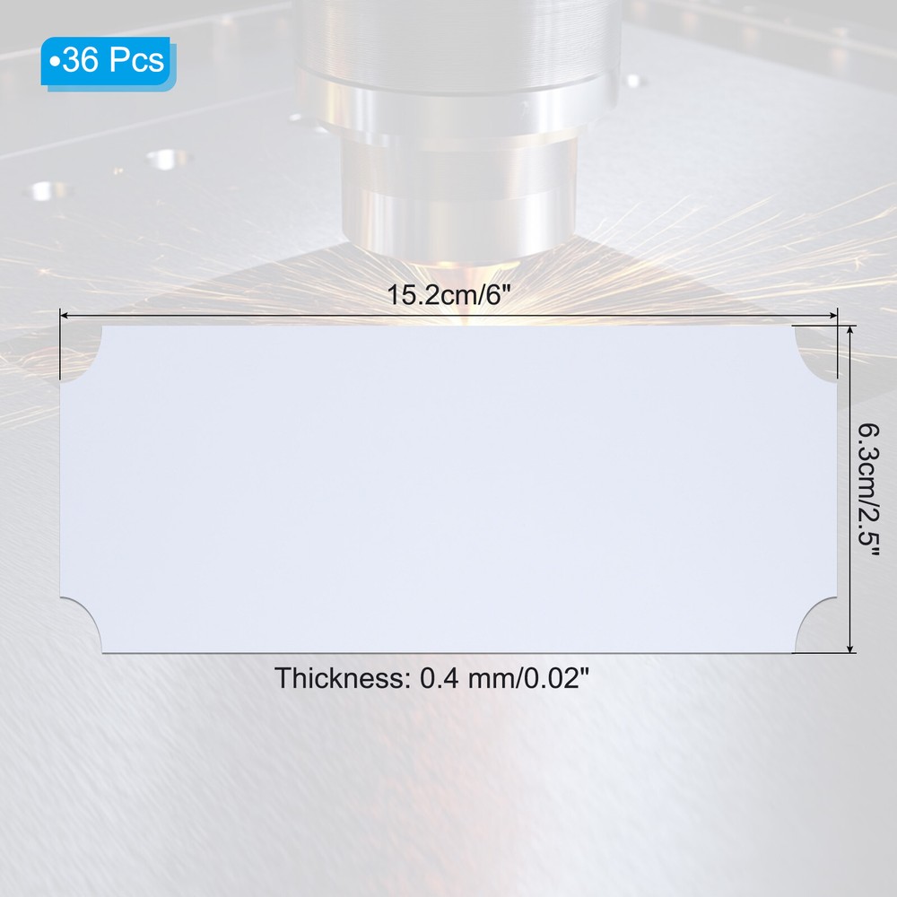 Document Our engraved nameplates are perfect for mounting on plaques, picture frames, sweaters, trophies, bags, display boxes, flag cases, and anything else.SpecificationMaterial: Stainless SteelColor: WhiteSize: 15.2 x 6.3 cm/6 x 2.5 Inch(L*W)Thickness: 0.4 mm/0.02 InchPacking List: 36 Pcs x Engraved NameplateAdvantageOur engraved nameplates are made of brushed stainless steel which is durable, stable, not easy to fade, rust, or break, and can be used for a long time. With a smooth surface, it will not scratch your skin.The right thickness makes the plate stronger and allows for deeper engraving. These elegant nameplates have a beautiful luster and a simple design. Suitable for various crafts to add brilliance.The protective film design can effectively prevent scratches. The adhesive backing design allows you to stick this nameplate anywhere without any tools and it can be firmly on the objects.InstructionPlace a metal workbench block underneath the blank stamping tags for better stamping.NOTE:1. There may be light scratches and blemishes due to shipping, but they can be polished.2. Only for laser engraving, not suitable for mechanical engraving.3. Please remove the protective film before use. 36 Pcs 6" x 2.5" Engraved Name Plate Picture Frame Label Art Tag, White Our engraved nameplates are perfect for mounting on plaques, picture frames, sweaters, trophies, bags, display boxes, flag cases, and anything else. Specification Material: Stainless Steel Color: White Size: 15.2 x 6.3 cm/6 x 2.5 Inch(L*W) Thickness: 0.4 mm/0.02 Inch Packing List: 36 Pcs x Engraved Nameplate Advantage Our engraved nameplates are made of brushed stainless steel which is durable, stable, not easy to fade, rust, or break, and can be used for a long time. With a smooth surface, it will not scratch your skin. The right thickness makes the plate stronger and allows for deeper engraving. These elegant nameplates have a beautiful luster and a simple design. Suitable for various crafts to add brilliance. The protective film design can effectively prevent scratches. The adhesive backing design allows you to stick this nameplate anywhere without any tools and it can be firmly on the objects. Instruction Place a metal workbench block underneath the blank stamping tags for better stamping. NOTE: 1. There may be light scratches and blemishes due to shipping, but they can be polished. 2. Only for laser engraving, not suitable for mechanical engraving. 3. Please remove the protective film before use. Hot Item Payment 1.We accept eBay payment . 2.Payment must be received within 7 business days of auction closing. Shipping 1.We ship to your eBay or Paypal address. Please make sure your eBay and Paypal address is correct before you pay. 2.Items will be shipped within 1-3 business day when we received payment. 3.Delivery time depends on destination and other factors. Description Policy 36 Pcs 6" x 2.5" Engraved Name Plate Picture Frame Label Art Tag, White Our engraved nameplates are perfect for mounting on plaques, picture frames, sweaters, trophies, bags, display boxes, flag cases, and anything else. Specification Material: Stainless Steel Color: White Size: 15.2 x 6.3 cm/6 x 2.5 Inch(L*W) Thickness: 0.4 mm/0.02 Inch Packing List: 36 Pcs x Engraved Nameplate Advantage Our engraved nameplates are made of brushed stainless steel which is durable, stable, not easy to fade, rust, or break, and can be used for a long time. With a smooth surface, it will not scratch your skin. The right thickness makes the plate stronger and allows for deeper engraving. These elegant nameplates have a beautiful luster and a simple design. Suitable for various crafts to add brilliance. The protective film design can effectively prevent scratches. The adhesive backing design allows you to stick this nameplate anywhere without any tools and it can be firmly on the objects. Instruction Place a metal workbench block underneath the blank stamping tags for better stamping. NOTE: 1. There may be light scratches and blemishes due to shipping, but they can be polished. 2. Only for laser engraving, not suitable for mechanical engraving. 3. Please remove the protective film before use. Hot Item Payment 1.We accept eBay payment . 2.Payment must be received within 7 business days of auction closing. Shipping 1.We ship to your eBay or Paypal address. Please make sure your eBay and Paypal address is correct before you pay. 2.Items will be shipped within 1-3 business day when we received payment. 3.Delivery time depends on destination and other factors.