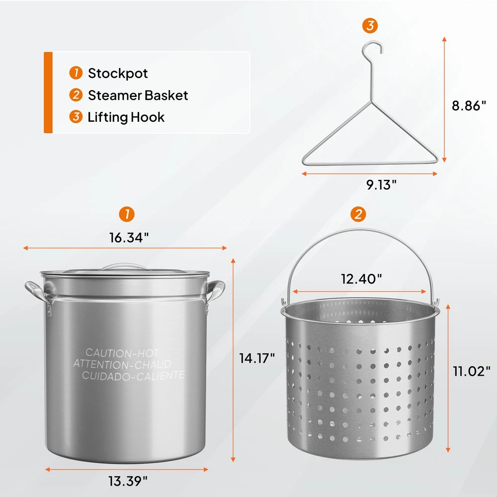 listing template VISIT OUR STORE SIGH UP FOR EMAIL 36 Qt. Turkey Deep Fryer Pot with Lid & Basket Stainless Steel Seafood Boil Pot Features: 1. Premium Aluminum Construction: Made from durable aluminum, our pot offers excellent heat conductivity and is lightweight for easy handling. The material ensures quick and even heating, perfect for various cooking methods. 2. Large 36QT Capacity: Our pot boasts a generous 36-quart capacity, perfect for cooking large quantities of food. Ideal for family gatherings, parties, and commercial use, it easily accommodates seafood boils, whole turkeys for frying, or multiple portions of soups and stews. 3. Comprehensive Accessory Set: Includes pot, tight-fitting lid, perforated strainer basket, steamer plate, and safety lift hook. This versatile set enhances your cooking options, allowing for boiling, frying, and steaming. 4. Safe & Considerate Designs: Features sturdy handles for secure handling and a heat-resistant hook for safely lifting the hot strainer basket. The strainer basket features raised points on the bottom, preventing direct contact with the pot and reducing the risk of food sticking. This thoughtful design ensures easier cooking and cleaning. 5. Outdoor Cooking Essential: Designed for use with gas stoves and outdoor burners. Perfect for camping, beach parties, backyard barbecues, and all your outdoor cooking adventures. (Note: Not compatible with electric induction cooktops). Specification: Brand ROVSUN Color Silver Material Stainless Steel Item Weight 9 lb. Pot Dimension (includes handles) 16.34” Dia. x 14.17”H Pot Iner Dimension 13.39” Dia. x 14.17”H Basket Dimension 12.4” Dia. x 11.02”H What You Get: 1 x 36QT Pot 1 x Basket 1 x Lid 1 x Steaming Tray 1 x Lifting Hook Shipping Policy 1. Ship worldwide from New Jersey by reliable shipping companies -- USPS, UPS, FEDEX, DHL, etc., and only to VERIFIED PAYPAL ADDRESS. Transport Delivery ETA. Package handling only takes 1 business day at our warehouse, so please make sure entering correct payment and shipping information before checking out. Once your payment is completed, we are not going to accept any more changes to your order. 2. International Buyers – Please Note: a. Import duties, taxes and charges are not included in the item price or shipping charges. These charges are the buyer's responsibility. b. Please check with your country's customs office to determine what these additional costs will be prior to bidding/buying. 3. Please check your shipping address carefully before checkout, it can't be changed if order completed. 4. Orders placed on weekend will be shipped within 2 days.Notification of shipment with tracking number will be sent to buyers. 5. Standard shipping: 2-7 business days Expedited Shipping: 2-3 business days One-day Shipping: 1 business day International shipping: Varies 6.Ship within 1 business day once payment completed. Notification of shipment with tracking No. will be sent to buyer. 7.We offer discounts for combine shipping. Please contact us first if you need combine shipping, and an invoice with discount will be sent to you. 8.Please allow 5 business days for delivery to US destinations on any eBay orders and 14 business days for delivery to any International destinations. We highly recommend our buyer choose priority/expess mail for international delivery which is much more stable. Return Policies 1. Refunds given only if item DOA and cannot be replaced via PAYPAL . If so, Please contact us with 5 days since you receive the item and and return to us within 30 days from the delivery date for exchange or refund. 2. If you need return, please contact our customer service representative, let us know the detailed problem and send us some pictures for confirmation. Payment Payment should be sent within 8(EIGHT) days of auction closing. Feedback If you are dissatisfied for any reason, please do not be quick to leave negative/neutral feedback. We work hard to make sure EVERY CUSTOMER 100% SATISFIED and resolve any problem for you. Work Time Work Time: Monday to Saturday About Us | Newsletter| Feedback| Contact Us Copyright © 2022 LikeDeal. All rights reserved. 无标题文档 36 Qt. Turkey Deep Fryer Pot with Lid & Basket Stainless Steel Seafood Boil Pot Features: 1. Premium Aluminum Construction: Made from durable aluminum, our pot offers excellent heat conductivity and is lightweight for easy handling. The material ensures quick and even heating, perfect for various cooking methods. 2. Large 36QT Capacity: Our pot boasts a generous 36-quart capacity, perfect for cooking large quantities of food. Ideal for family gatherings, parties, and commercial use, it easily accommodates seafood boils, whole turkeys for frying, or multiple portions of soups and stews. 3. Comprehensive Accessory Set: Includes pot, tight-fitting lid, perforated strainer basket, steamer plate, and safety lift hook. This versatile set enhances your cooking options, allowing for boiling, frying, and steaming. 4. Safe & Considerate Designs: Features sturdy handles for secure handling and a heat-resistant hook for safely lifting the hot strainer basket. The strainer basket features raised points on the bottom, preventing direct contact with the pot and reducing the risk of food sticking. This thoughtful design ensures easier cooking and cleaning. 5. Outdoor Cooking Essential: Designed for use with gas stoves and outdoor burners. Perfect for camping, beach parties, backyard barbecues, and all your outdoor cooking adventures. (Note: Not compatible with electric induction cooktops). Specification: Brand ROVSUN Color Silver Material Stainless Steel Item Weight 9 lb. Pot Dimension (includes handles) 16.34” Dia. x 14.17”H Pot Iner Dimension 13.39” Dia. x 14.17”H Basket Dimension 12.4” Dia. x 11.02”H What You Get: 1 x 36QT Pot 1 x Basket 1 x Lid 1 x Steaming Tray 1 x Lifting Hook Shipping + 1. Ship worldwide from New Jersey by reliable shipping companies -- USPS, UPS, FEDEX, DHL, etc